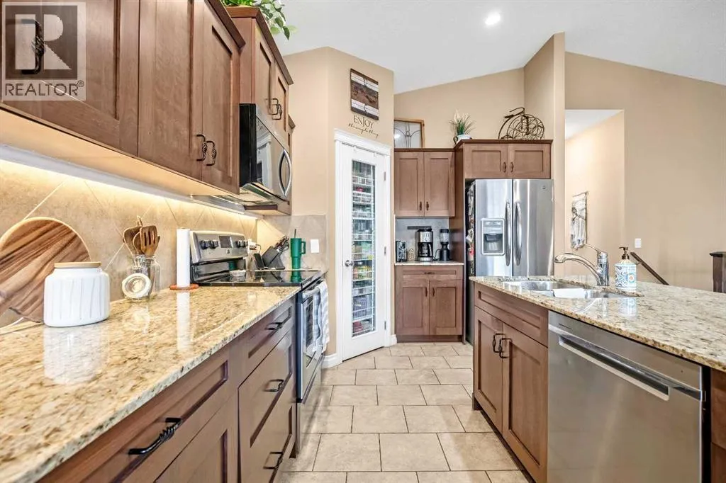 Welcome to this well-maintained and spacious home. Perfect for families or anyone seeking comfort and convenience. Featuring 5 bedrooms and 3 full bathrooms. This property offers an open-concept layout, with neutral decor. A modern kitchen with updated appliances, Granite counter tops, under counter lighting and corner pantry. A cozy living area ideal for entertaining. The basement has in floor heating, a huge family room which holds a massive sectional couch, great for family movie nights. Built in cabinetry for storage and TV placement. 2 spare bedrooms for the grand children or company. A Jack and Jill 4 pce bathroom . The garage is oversized 24'5 x 25'6 and 10 foot ceilings. The back deck is a little bit of heaven as they have added curtains for privacy and there are 2 gas bar b q hookups. Sellers added Central air conditioning for those hot summer days, new microwave and dishwasher, new water tank 2024, furnace was rebuilt by GM Mechanical, new motor for garage door and Gemstone lighting ! . Call NOW to book your private viewing! This home is move in ready and awaiting its new family to call it home. (id:27476)