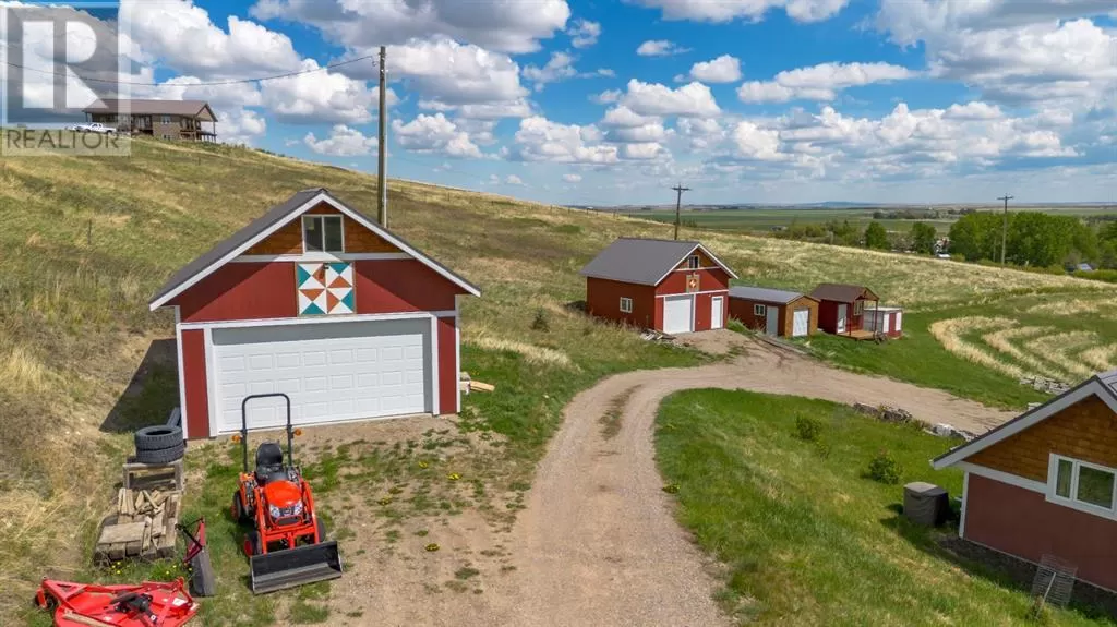 Perched at the top of an exclusive hill with only five other acreages, this stunning 4.47-acre property offers the perfect blend of privacy, comfort, and breathtaking mountain views that truly live up to the million-dollar description. Built in 2017, this custom built 3-bedroom, 3-bathroom home was thoughtfully designed to take full advantage of its elevated setting. Wake up to panoramic mountain views from nearly every room, and enjoy them year-round from the expansive wraparound second-level deck. In addition to the main home, there are two garages on the property, each with a loft space above, offering incredible flexibility for storage, workshops, or turning them into a BnB. Great business opportunity to turn these garages into BnB's. They were originally made and designed with that purpose in mind. Three additional sheds provide ample room for tools and equipment. Nestled in the front yard is a gazebo with a built-in fire pit, ideal for evening gatherings under the stars. This property is a rare opportunity to own a piece of paradise with unmatched views, modern comforts, and a setting that feels like a private escape. Great hunting and fishing in the area. If you like to boat or fish then Waterton Reservoir is 5 minutes away and Waterton National Park is a 30 minute drive. There is also a nice Ski Hill about an hour away. Donât miss your chance to experience hilltop living at its finest! (id:27476)