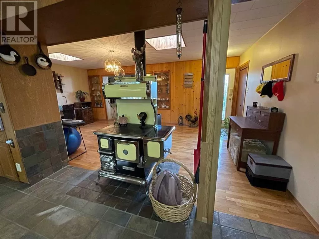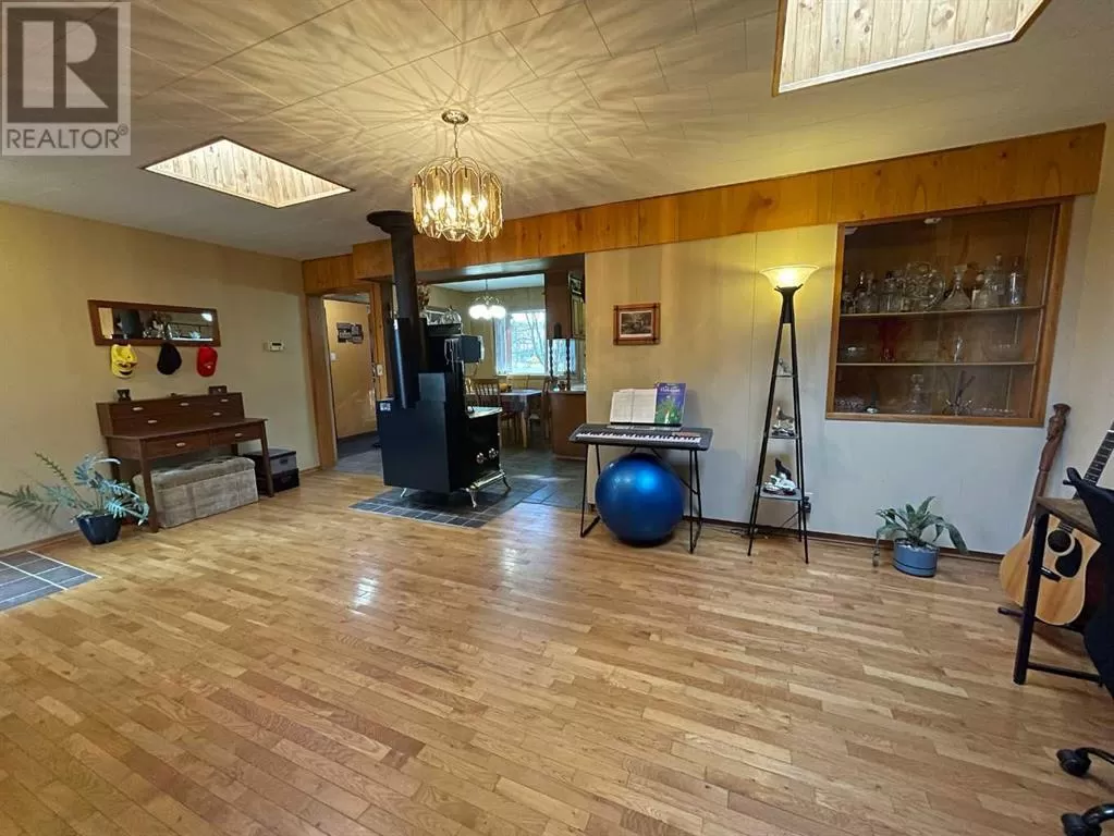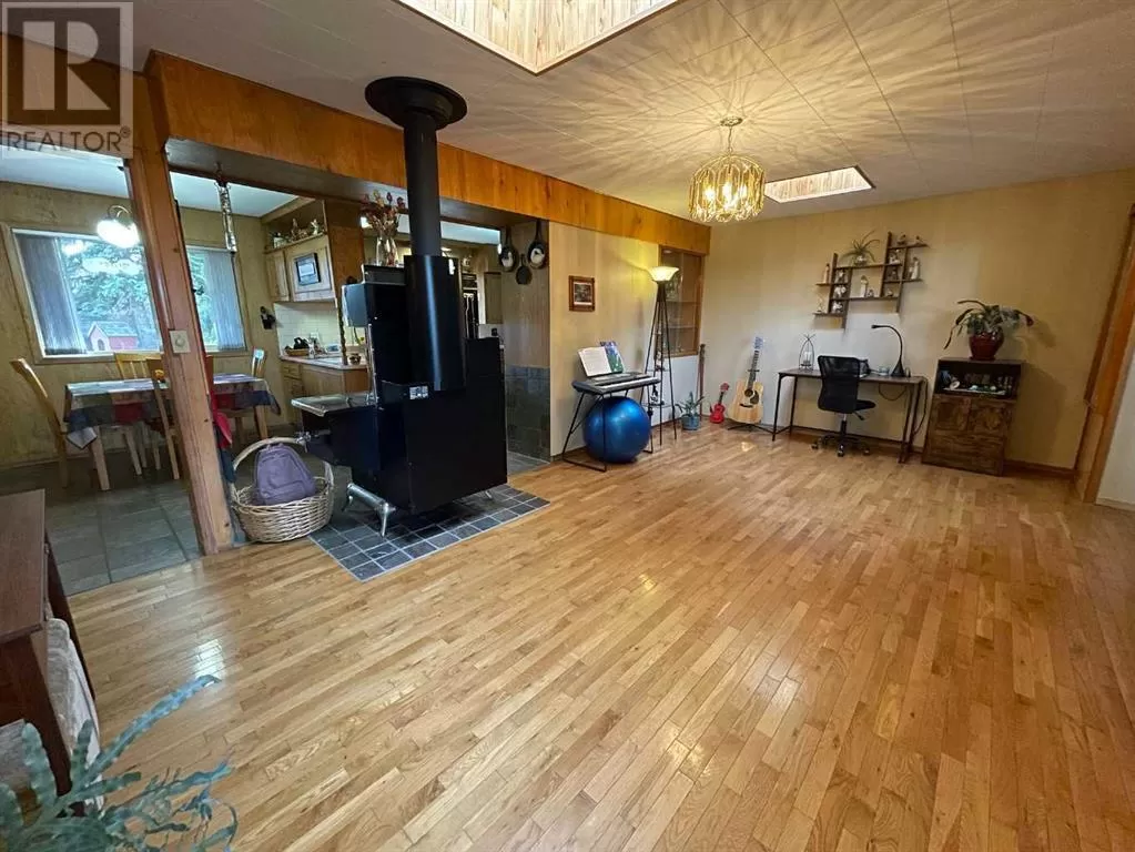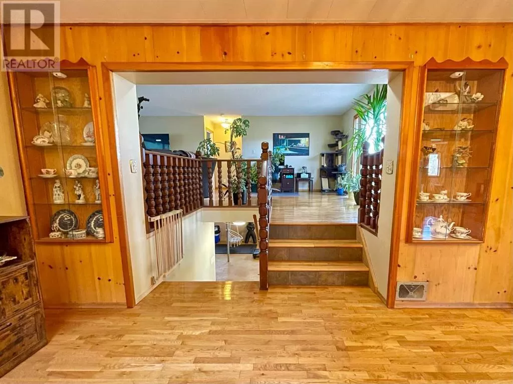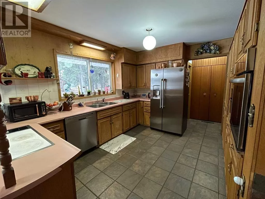 This 5 bedroom, split-level acreage home, with a 36â x 46â shop, sits on over 2 acres of fenced land right in town! Many updates have been done over the years including some flooring, windows & paint inside & out. The kitchen has brand-new, stainless-steel appliances & plenty of oak cabinets for storage. A functional wood fired cook stove, sits just off the kitchen & breakfast nook, providing turn of the century, rustic warmth & style. There is multi function space off the kitchen that can be used as a formal dining room or family entertaining. The master bedroom features attractive hardwood flooring & a convenient 2 pc ensuite. 2 additional bedrooms, a 4 piece bathroom & laundry with new washer & dryer complete the main level. The upper level offers a spacious living room that provides lots of natural light & access to the outside deck & patio area. 2 more bedrooms on the upper floor add extra space for the growing family. The lower level is partially finished with a large open area, utility room with high efficiency furnace & plenty of storage. Loads of parking for general vehicles & RV, an attached carport at the side of the house & a playground area for the kids are added bonuses for the family. The heated, insulated shop, with 12â x 10â garage door, has 220 wiring with 2 sub-panels, mezzanine, storage shelves & a 2pc bathroom. The property has option to be further sub-divided, subject to town review & approval. Situated within walking distance to all shopping, walking trails & Mary Reimer Park. (id:27476)