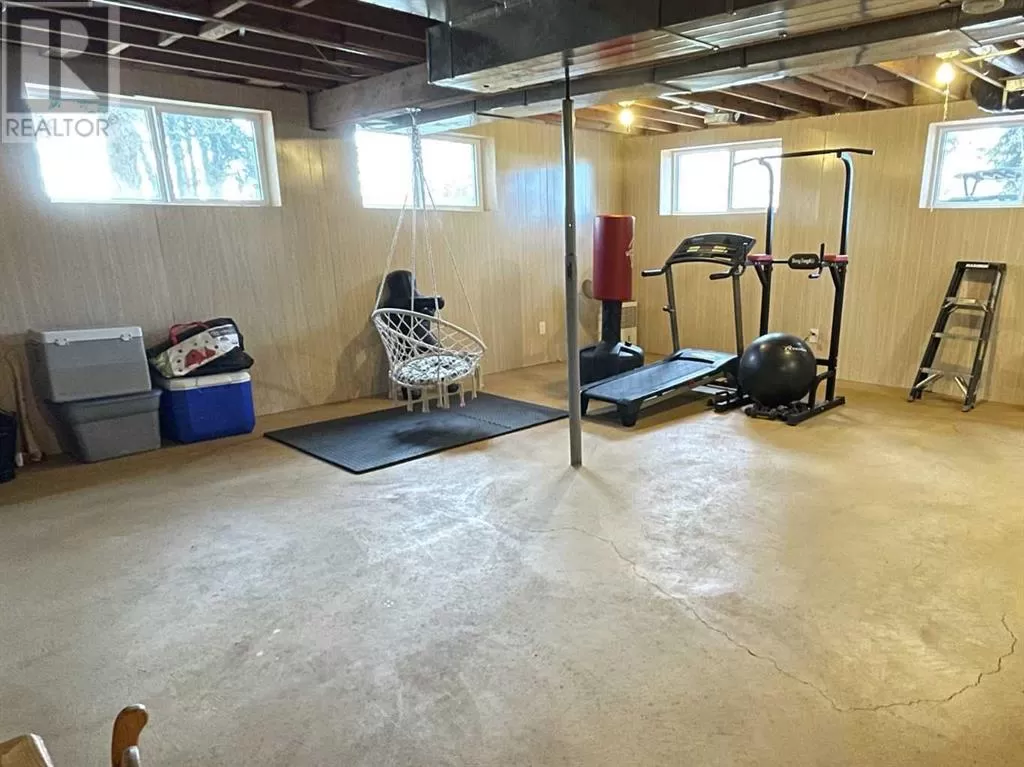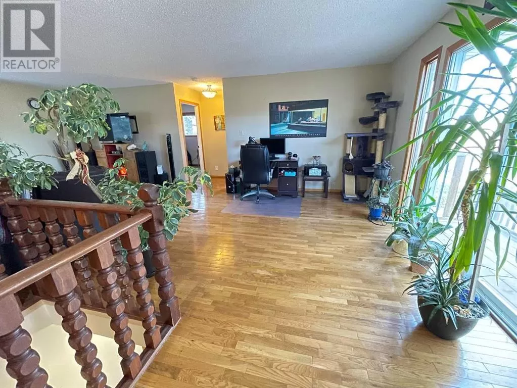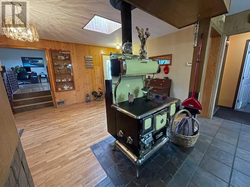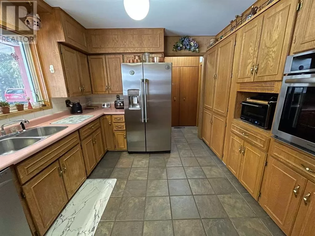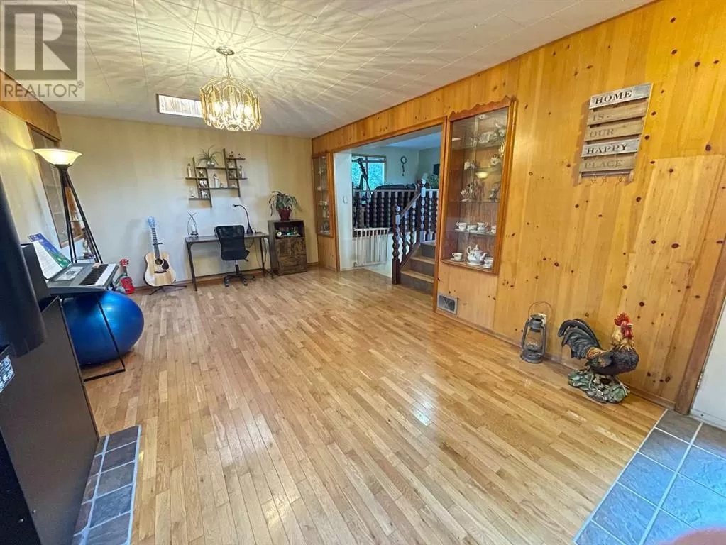 This 5 bedroom, split-level acreage home, with a 36â x 46â shop, sits on over 2 acres of fenced land right in town! Many updates have been done over the years including some flooring, windows & paint inside & out. The kitchen has brand-new, stainless-steel appliances & plenty of oak cabinets for storage. A functional wood fired cook stove, sits just off the kitchen & breakfast nook, providing turn of the century, rustic warmth & style. There is multi function space off the kitchen that can be used as a formal dining room or family entertaining. The master bedroom features attractive hardwood flooring & a convenient 2 pc ensuite. 2 additional bedrooms, a 4 piece bathroom & laundry with new washer & dryer complete the main level. The upper level offers a spacious living room that provides lots of natural light & access to the outside deck & patio area. 2 more bedrooms on the upper floor add extra space for the growing family. The lower level is partially finished with a large open area, utility room with high efficiency furnace & plenty of storage. Loads of parking for general vehicles & RV, an attached carport at the side of the house & a playground area for the kids are added bonuses for the family. The heated, insulated shop, with 12â x 10â garage door, has 220 wiring with 2 sub-panels, mezzanine, storage shelves & a 2pc bathroom. The property has option to be further sub-divided, subject to town review & approval. Situated within walking distance to all shopping, walking trails & Mary Reimer Park. (id:27476)
