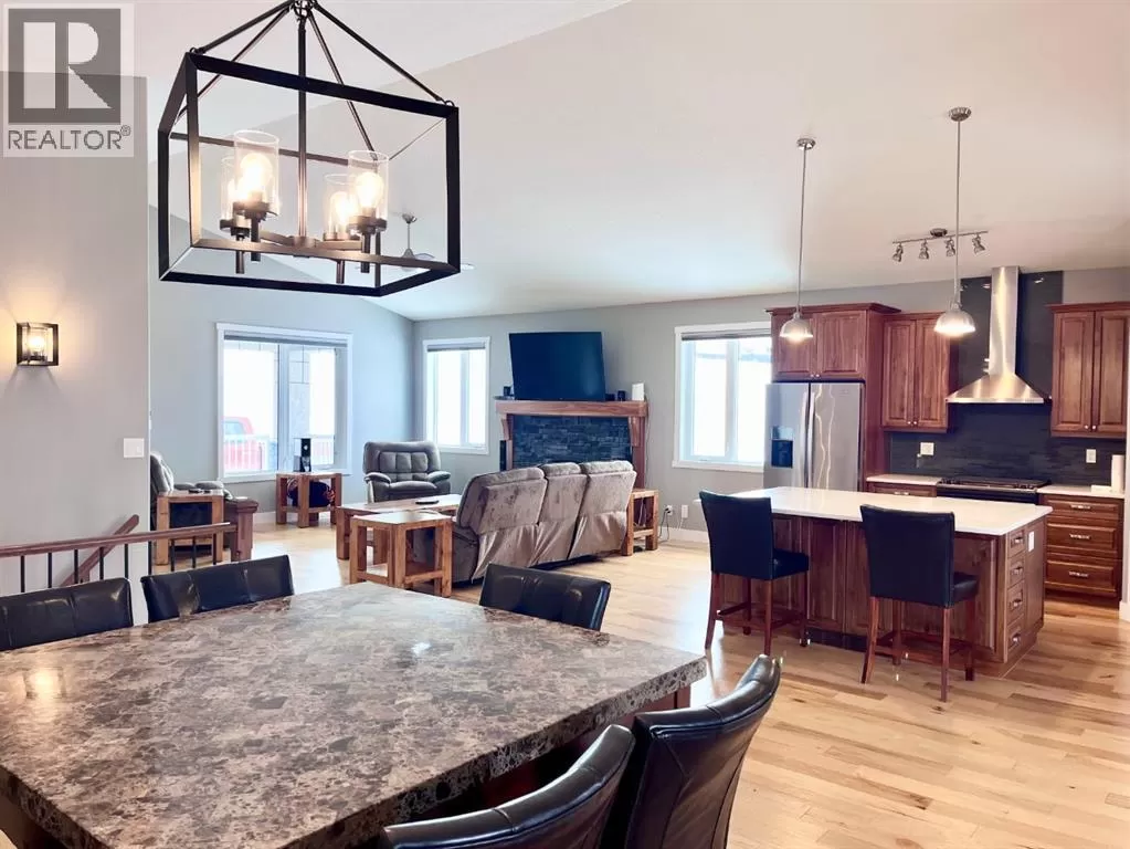 This stunning 2016 custom-built home sits on 9.88 acres with prime Trans-Canada Highway 16 frontage, making it the perfect blend of luxury living and investment opportunity. Designed with top-tier finishes and thoughtful upgrades, this property is a must-see!Inside, the 1,500+ sq. ft. main floor features an open-concept design with vaulted ceilings, a wood-burning fireplace, and high-end details like hardwood floors, granite countertops, and heated tile flooring. The gourmet kitchen flows seamlessly into the dining and living areas, creating a warm and inviting space. The primary suite is a private retreat, offering a walk-through closet, spa-like ensuite with double vanities, a custom glass shower, and a soaker tubâwith direct access to the saltwater hot tub on the side deck. A laundry room and half bath complete the main level.The fully developed walkout basement adds even more living space, featuring three large bedrooms, a full bathroom, an enormous family room, a wet bar, cozy carpeting, and a second wood-burning fireplaceâperfect for entertaining or relaxing.Outside, the possibilities are endless! The property includes a heated 29â x 40â attached garage and a 28â x 48â heated shop, ideal for storage, a home business, or hobby space. The property has been landscaped for RV storage, and the FUD zoning allows for a variety of opportunities, making this a smart investment with endless potential.Whether youâre looking for a dream home for your family or a property with income-generating possibilities, this one checks all the boxes. Donât miss out on this prime real estate opportunity! (id:27476)