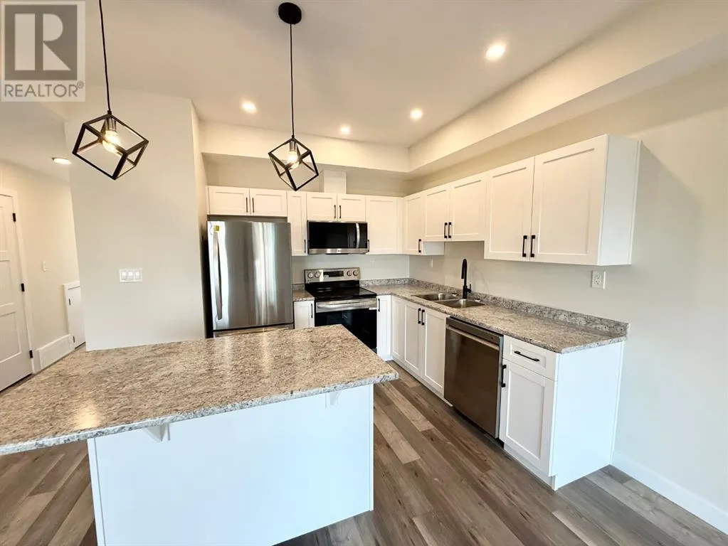 This brand new middle unit triplex, built in 2025, features a modern two-storey design with an attached heated garage! It boasts a fenced and landscaped yard, providing added privacy and outdoor space. Inside, you'll find durable vinyl plank flooring throughout the main, open concept with white cabinets, an island, stainless steel appliances, and a 2 piece bathroom. Upstairs, the large primary bedroom offers a walk in closet and a sitting area, along with a 4 piece ensuite. There are also two additional bedrooms, another full bathroom, and an upstairs laundry for added convenience. Also comes complete with a concrete driveway, new home warranty, and quick possession! (id:27476)