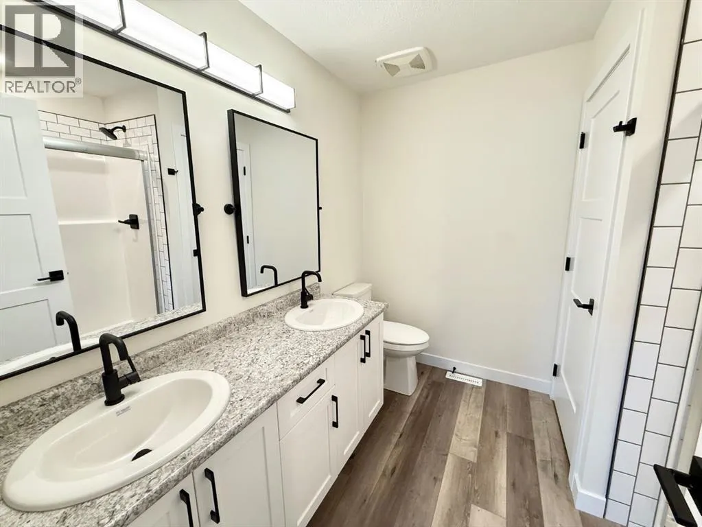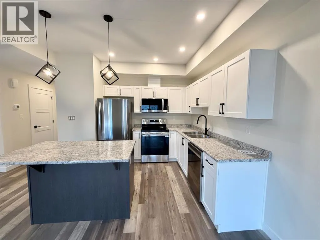 This brand new middle unit triplex, built in 2025, features modern two-storey design with an attached heated garage. It boasts a fenced, landscaped backyard, with a deck, providing added privacy and outdoor space. Inside, you'll find durable vinyl plank flooring throughout the main, open concept with bright white cabinetry that's beautifully contrasted by a rich dark island with an eating bar. Stainless steel appliances, and a 2 piece bathroom finish off the main floor. Upstairs, the large primary bedroom offers a walk in closet and a sitting area, along with a 4 piece ensuite. There are also 2 additional bedrooms, another full bathroom, and an upstairs laundry for added convenience. Also comes complete with a concrete driveway, 10 year new home warranty, and quick possession! (id:27476)
