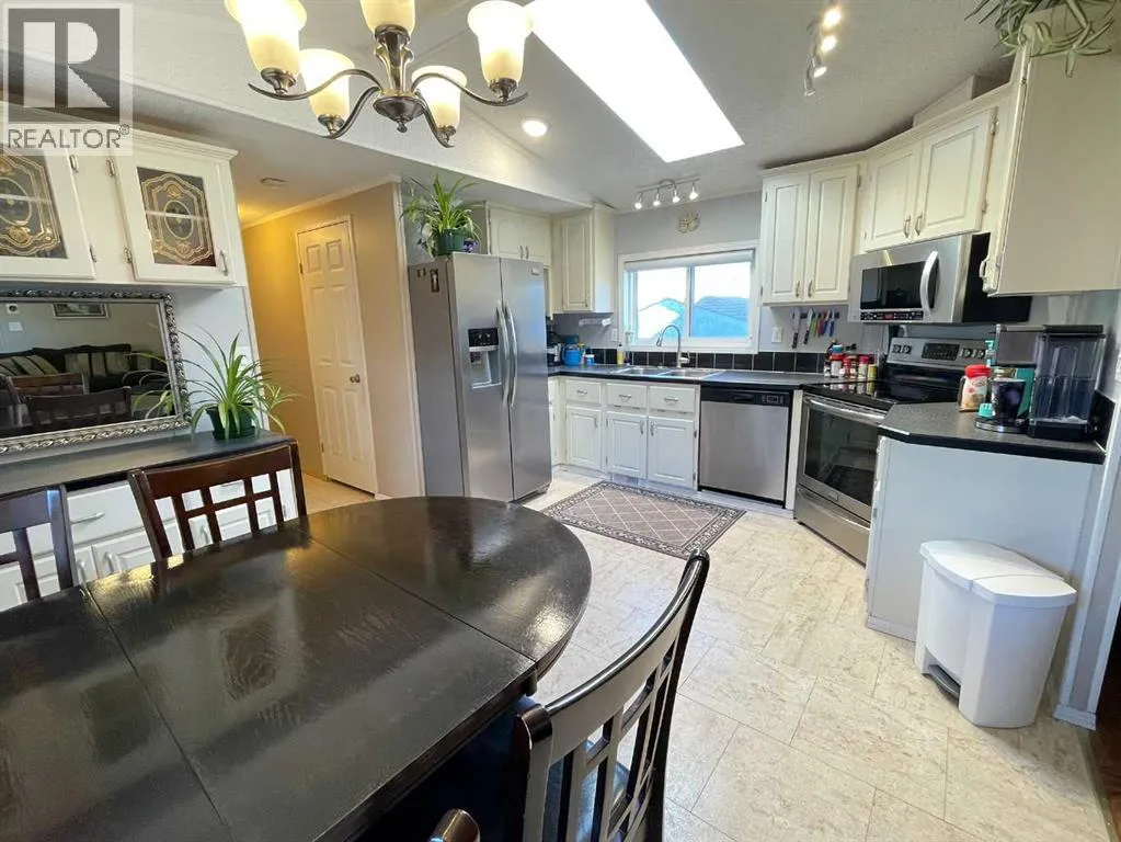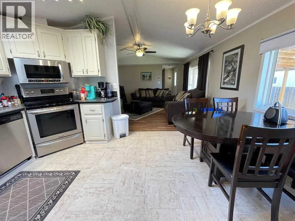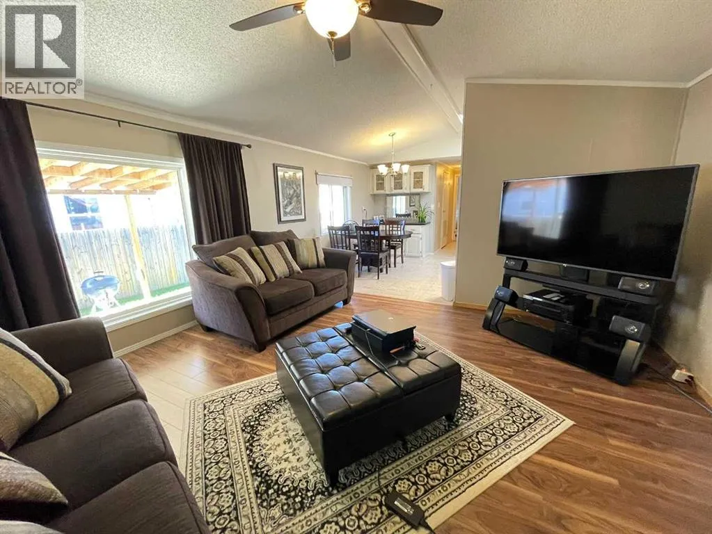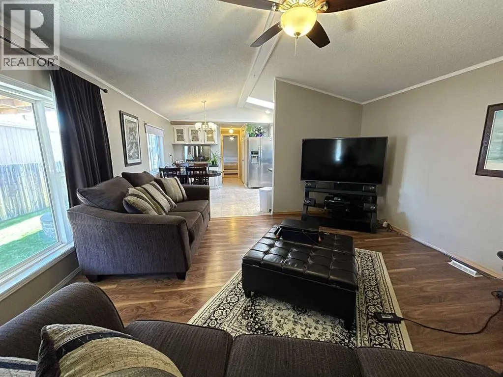 This well kept, 1994 manufactured home with 3 bedrooms & 2 bathrooms, could be just the right place for a new home buyer, established couple, investor, small or growing family. With just the 1 level, keeping it maintained should be trouble-free. The open floor plan & vaulted ceilings in the living room & kitchen make the home feel spacious. There is plenty of cabinet space in the kitchen with a separate pantry, updated stainless steel appliances & cabinet doors. The large primary bedroom features a 4 piece ensuite with soaker tub, plenty of closet space & is separate from the additional 2 bedrooms, adding to the comfort level. Some of the many upgrades over the years include new shingles in 2023, light fixtures & landscaping. The 2x6 walls & exterior window coverings bring peace of mind & relief in all seasons. Venturing outdoors will be enjoyable with the covered patio & separate deck, great for entertaining or a peaceful retreat. The yard is well maintained, landscaped, fully fenced & includes 2 storage sheds. Situated in a quiet neighbourhood, walking distance to trails, Mary Reimer Park, shopping & amenities. (id:27476)