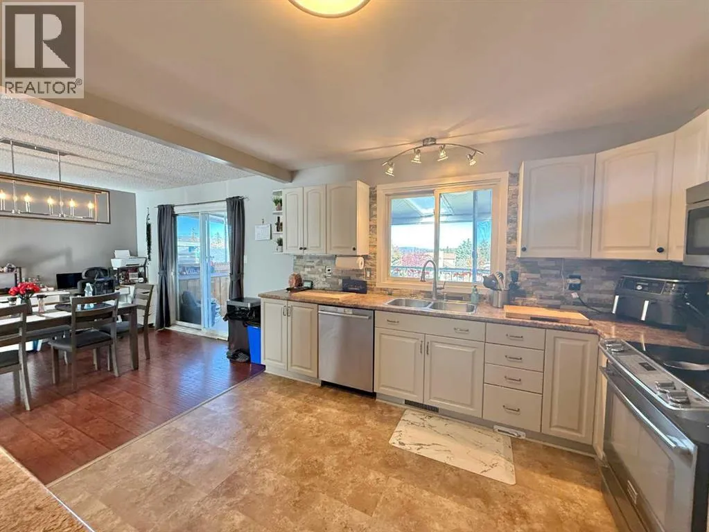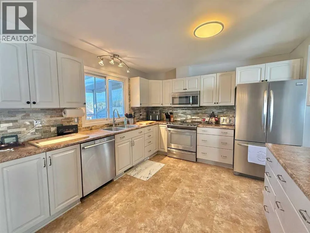 126 Maligne is a lovely family home in an delightful neighbourhood! The main floor is nicely updated featuring a glorious open floor plan. The kitchen is perfectly tailored to meet any cooking enthusiast needs with a ton of cabinets and counter space, finished with fine stone backsplash. The updated kitchen flows flawlessly into the large dining and living room area that has its own gas fireplace! From the dining area you can access the large covered deck. This space is ideal protection from the elements while still being outside. Back in the home, this floor also offers a nicely kept spacious 4pc common washroom, 2 bedrooms, plus a primary bedroom with its own 2pc ensuite. Moving to the basement you will find a fully finished family room featuring its own toasty warm pellet stove and a home theatre projection system for your entertainment. From here you can access the back yard. This space is also shielded from the rain or snow by the deck above! This basement houses its own large laundry room, 2 more bedrooms and a little bonus room that is ideal for crafts and hobbies or even storage. Outside you ill find a remarkably large back yard and enough space for 2 vehicles in the driveway. The shingles on this home are less than 5 years old. (id:27476)