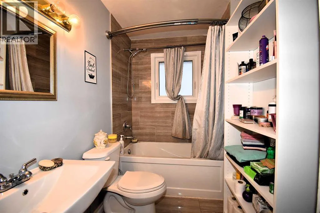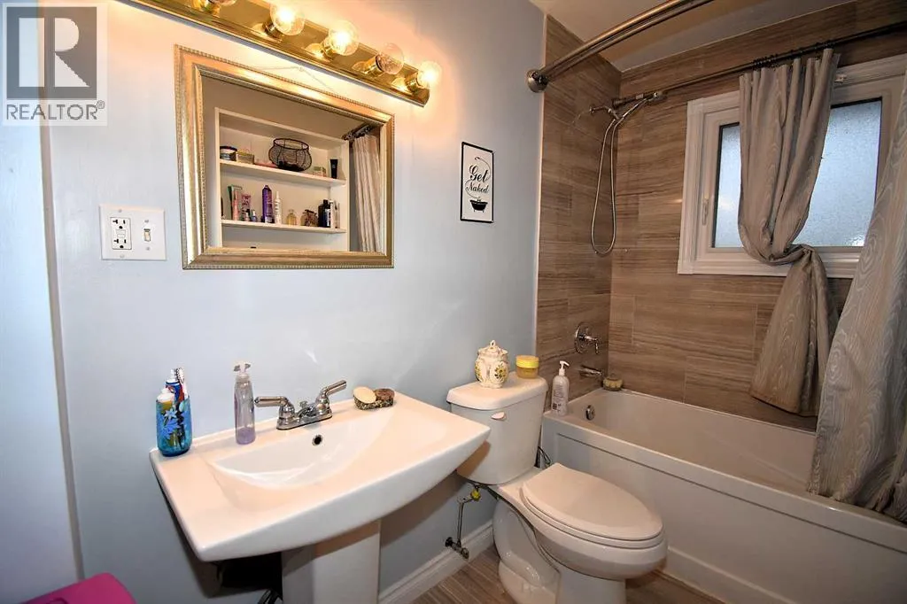 Well looked after home with 2 beds up, 1 down. There is a washer hook-up in the kitchen. Nice and clean, ready to move into. The basement is developed, has a big laundry (wooden clothes rack stays). It also has a big 3 pc bath, a family room & bedroom. The shingles on both the house & garage were redone in 2010, the windows all replaced in 2012. The exterior is carefree stucco. The garage has power & cabinets that stay. The yard is AWESOME! Nicely landscaped with a firepit area, fenced off spot with garden boxes. This home & yard are quaint & cozy. There is a ton of parking - big RV spot, parking in front of it, a second drive beside that, and a third drive leading to the garage. Tons of parking!!! This bungalow is a great starter home or perfect downsize home. (id:27476)
