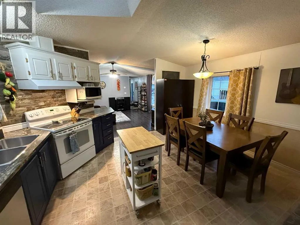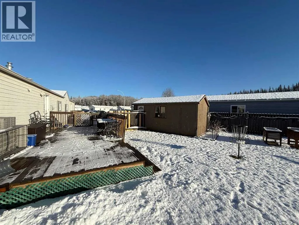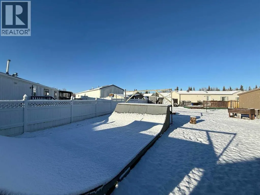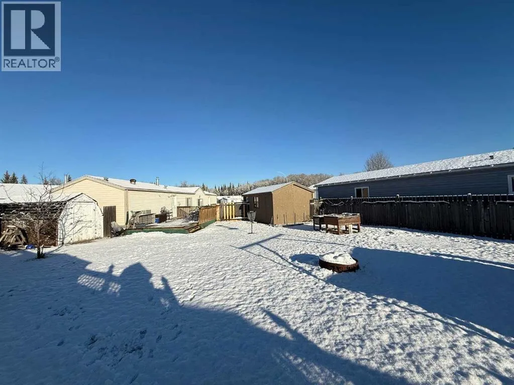 Located on a quiet cul-de-sac in East Hardisty, this home is a great fit for first-time buyers or anyone wanting to downsize without giving up space. Set on a large pie-shaped lot, youâll love the room it offersâperfect if youâve been dreaming about adding a garage.The yard is fully landscaped and fenced, with a spacious deck and two sheds, including a 12' x 20' insulated, powered, and electrically heated shed that works beautifully as a workshop or extra storage.Inside, the 1,216 sq ft layout is bright and comfortable with vaulted ceilings, neutral tones, and an open-concept kitchen and living room. The primary bedroom is tucked away at the back for privacy and features a walk-in closet plus a relaxing ensuite with a soaker tub. Two additional bedrooms and a full 4-piece bath complete the home. (id:27476)