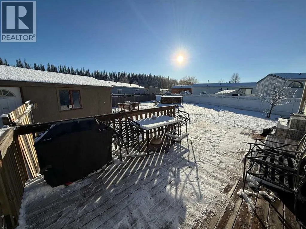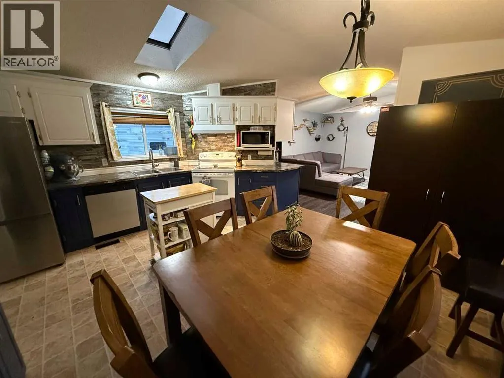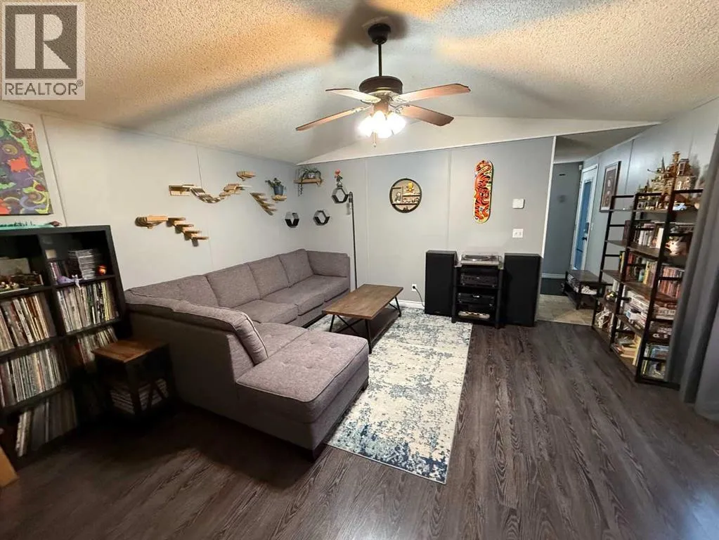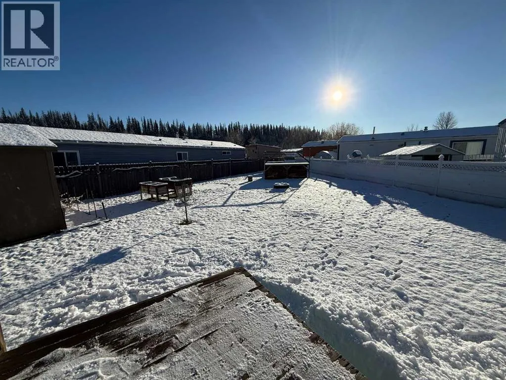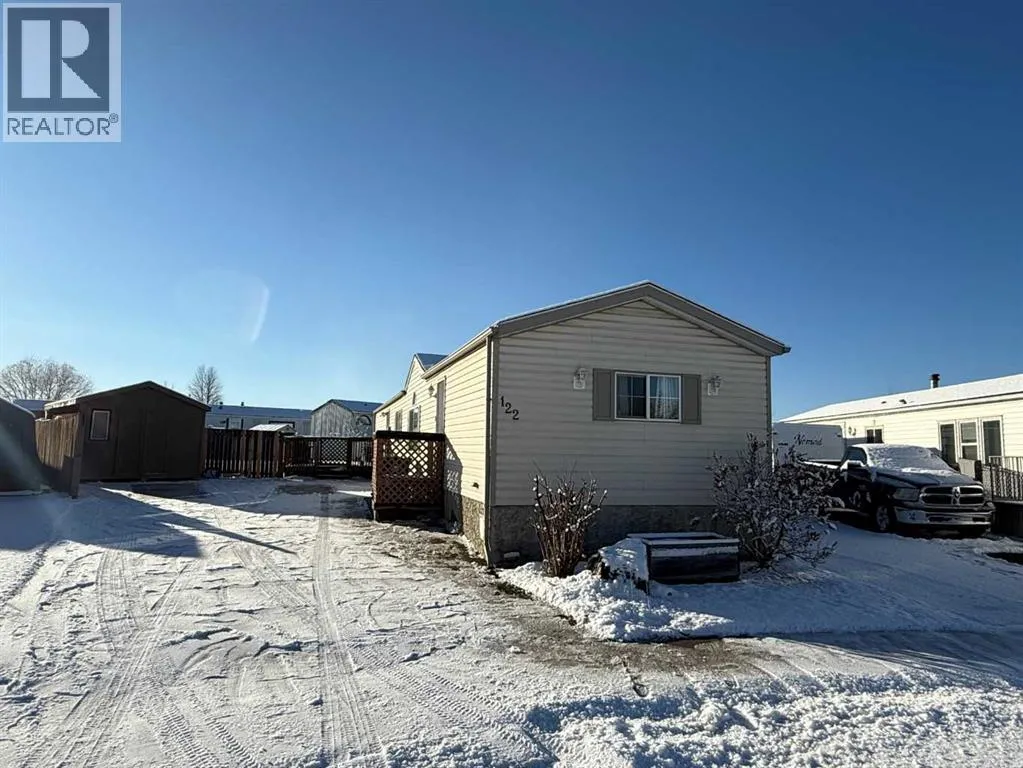 Located on a quiet cul-de-sac in East Hardisty, this home is a great fit for first-time buyers or anyone wanting to downsize without giving up space. Set on a large pie-shaped lot, youâll love the room it offersâperfect if youâve been dreaming about adding a garage.The yard is fully landscaped and fenced, with a spacious deck and two sheds, including a 12' x 20' insulated, powered, and electrically heated shed that works beautifully as a workshop or extra storage.Inside, the 1,216 sq ft layout is bright and comfortable with vaulted ceilings, neutral tones, and an open-concept kitchen and living room. The primary bedroom is tucked away at the back for privacy and features a walk-in closet plus a relaxing ensuite with a soaker tub. Two additional bedrooms and a full 4-piece bath complete the home. (id:27476)