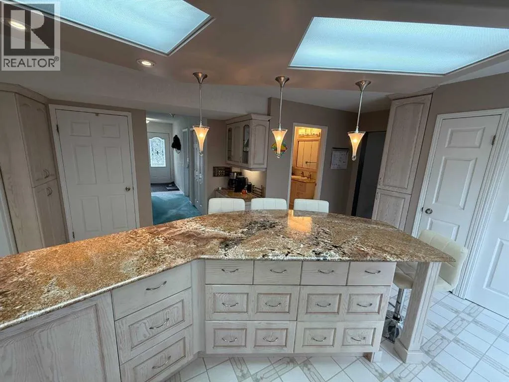 Welcome to 104 Mistaya Road, a hidden gem nestled on a cozy cul-de-sac in Hintonâs desirable Valley District. This charming and spacious home offers character, comfort, and versatility â perfect for families or those looking for income potential. The main floor features a bright and open layout with a large kitchen complete with a breakfast bar island, stone countertops, and ample cabinetry. The dining and living areas flow seamlessly together, divided only by a stunning three-sided gas fireplace that adds warmth and elegance. A sunken family room provides the perfect space for gatherings and offers direct access to the backyard oasis, which includes a covered gazebo-style deck, a patio, and beautifully landscaped grounds. This level also includes a bedroom (or office), a three-piece bathroom, and main-floor laundry for added convenience.Upstairs, the home offers a unique double-primary layout, creating flexible living options. The current owners have utilized one of the spacious bedrooms as a licensed Airbnb suite, featuring a private exterior entrance via an upper-level deck and stairs, a walk-in closet, den area, and a luxurious ensuite. The second bedroom on this level is equally generous in size and has access to a large four-piece bathroom.The partially developed basement includes multiple storage areas and a large open space currently used as a family room, with windows already in place offering the potential to add additional bedrooms or customize the space to suit your needs. Additional features include an attached double garage with main-level access, beautiful landscaping, and a peaceful cul-de-sac location. With its thoughtful design and income potential, this charming home in Hintonâs Valley District is truly a must-see. (id:27476)