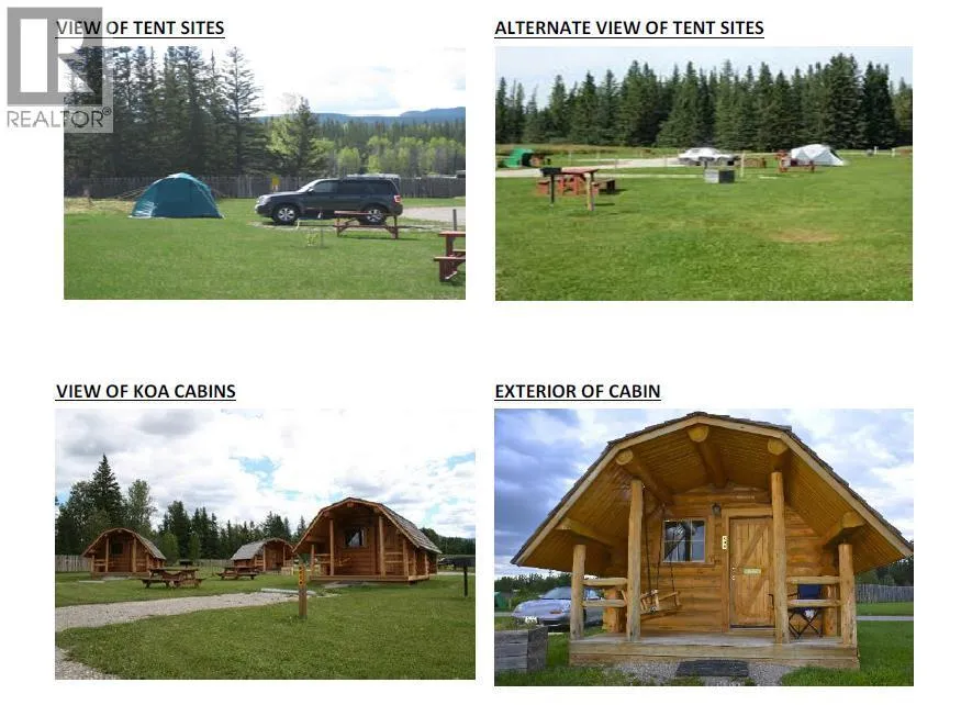 Hinton / Jasper KOA Holiday (RV Park / Campground) is a well-established, franchise-branded campground located just off Yellowhead Highway (Highway 16), approximately 10 minutes from the Town of Hinton and within convenient driving distance to Jasper National Park. Situated on a generous 29.63-acre parcel, the property features 120 total campsites, including 89 RV sites, 12 tent sites, and 19 cabins, comprised of 2 Deluxe Cabins, 6 Large Cabins, and 11 Camping Cabins. This diverse accommodation mix supports multiple revenue streams during the peak operating season from May through late September. The business operates approximately five months annually, offering an efficient seasonal income structure, with upside potential through a modest extension of the operating season by an additional month.The campground benefits from excellent highway exposure, easy access, and consistent demand driven by Jasper National Park tourism, highway travelers, repeat KOA guests, and seasonal worker and crew accommodations supporting regional industries. On-site improvements include a main office and retail store, laundry facilities, washroom and shower buildings, and well-maintained communal amenities. The expansive land base also provides future expansion or enhancement potential, subject to county approvals.While revenues were impacted in recent years by the COVID-19 pandemic and wildfire-related disruptions in the Jasper region, tourism recovery is actively underway. Provincial and local governments have prioritized destination marketing, infrastructure reinvestment, and visitor attraction initiatives to restore travel confidence and visitation levels. These efforts, combined with Jasperâs long-term status as a premier national park destination, support a positive outlook for demand recovery and long-term revenue growth in this established Alberta tourism corridor. (id:27476)