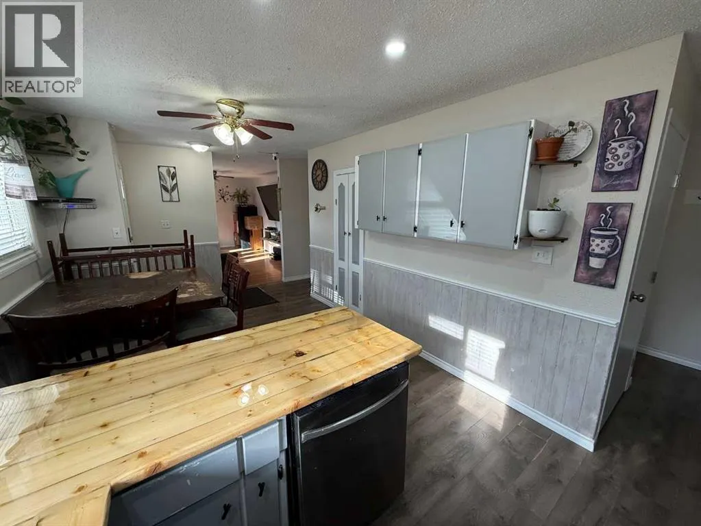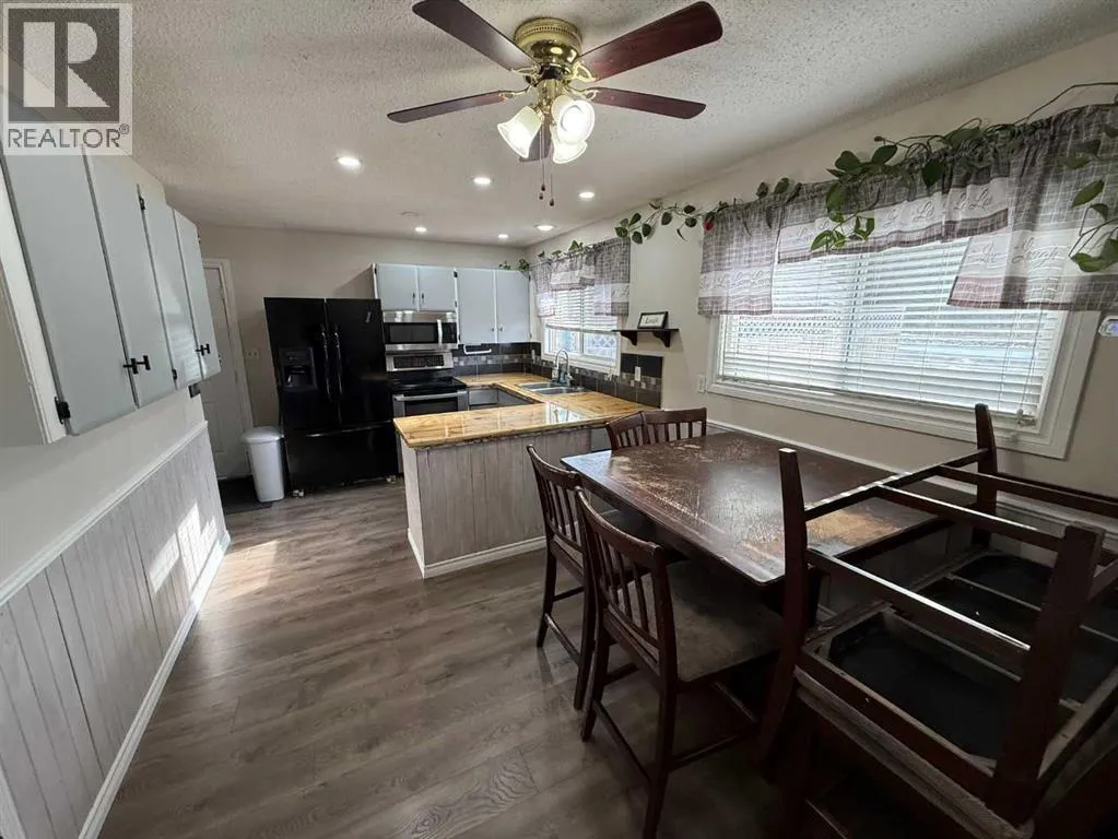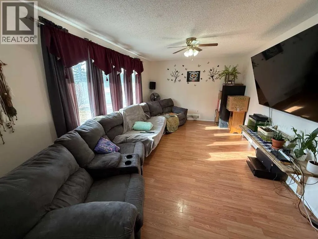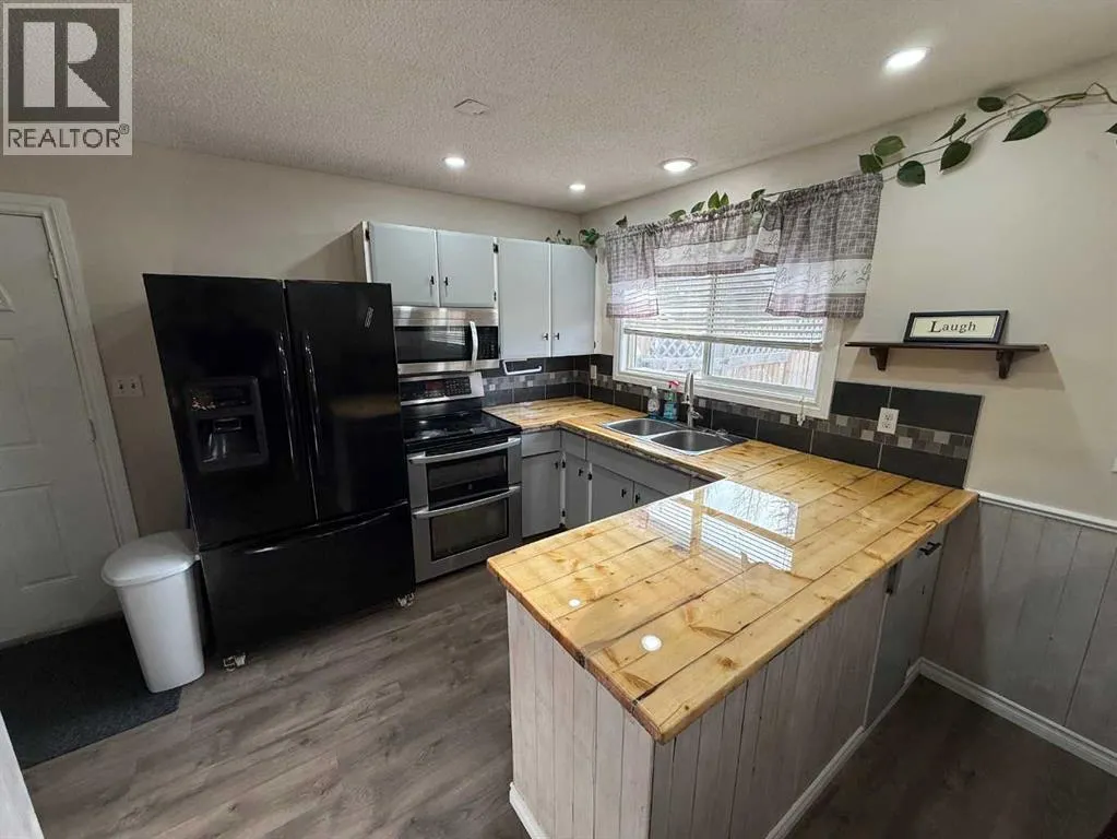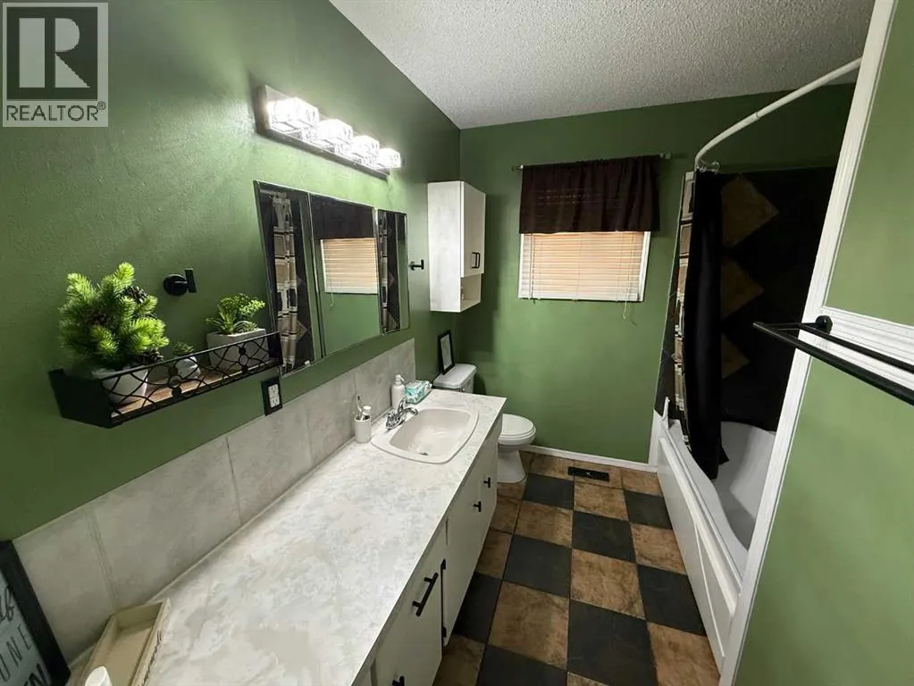 This Pleasant 4-bedroom bungalow is ideally located close to schools, playgrounds, and scenic Hardisty Creekâmaking it a fantastic option for families.The main floor features a spacious, sun-filled living room, a dedicated dining area, and a refreshed kitchen complete with an eating bar for casual meals or entertaining. Three comfortable bedrooms and an upgraded 4-piece bathroom complete the main level, offering a practical and functional layout.Downstairs, youâll find a fourth bedroom, a large open family room perfect for movie nights or a kidsâ play area, and a laundry room that includes a convenient 3-piece bathroom. There is also ample storage space to keep everything organized.Step outside to enjoy the beautifully maintained backyard, featuring a covered patio, a two-tier garden, fire pit area, and two storage sheds. The yard is fully fenced and includes a large gate for additional parking access if needed. Along the side of the home, a paved triple-car driveway provides plenty of off-street parking.To top it off, the home is finished with a brand-new tin roof, offering durability and peace of mind for years to come. (id:27476)