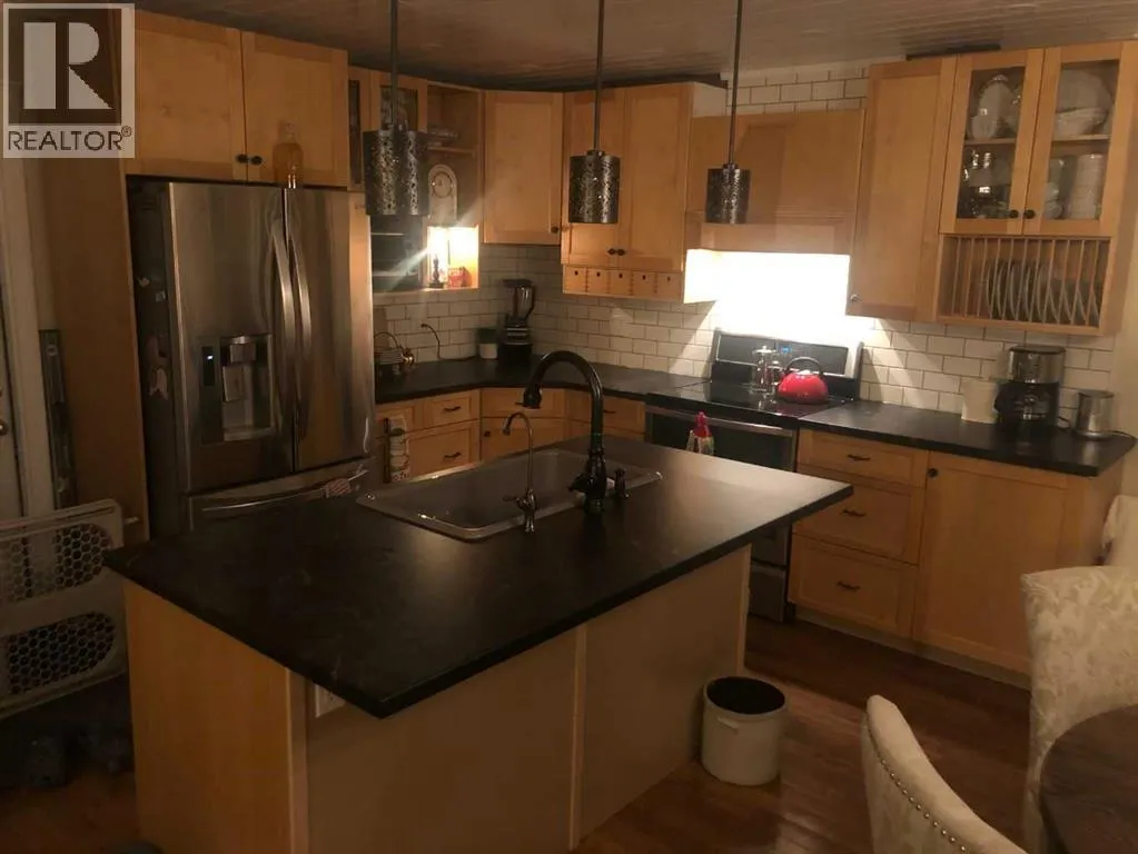 Very nice starter home located in Hythe. The home has been updated throughout the past 10 years. The main floor kitchen has maple cabinets, a pantry and an island. The main floor also includes a dining room, a sunken living room, 2 bedrooms and a large bathroom. The downstairs consists of a bedroom, an office (or 2nd bedroom), a 3-piece bathroom with a shower and a general recreation area with a pellet stove. Bathrooms have been redone and have in-floor heating. The windows (except 1) and all the doors have been replaced. The shingles and ease troughs are all new in 2024. The appliances include a fridge, stove (2 years old), new dishwasher and older washer and dryer. The home has a small deck off the front entrance and a larger deck in the back. The yard is fenced and has a brick walkway, a fire pit, a lean-to, and a few trees. There are also 3 sheds, a barn-style garden shed and 14 x 20 and a 12 x 8 dry storage shed. The owner has included all the sheds in the listing price. If you do not want the 2 storage sheds, the owner will keep them and remove them in the spring. Adjust your offer accordingly. (id:27476)