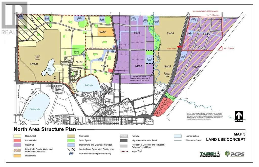13.04 acres well position between Hwy 2A & QE2, just NE of Innisfail, Alberta. 584m of prime 2A frontage along the west boundary for access & maximum exposure. Property is contained within the Town of Innisfail Area Structure Plan. Property is located across from the Discovery Wildlife Park & Campground, Innisfail. Invest into Central Alberta's future industrial needs. Neighbouring 141.16 acre parcel (A2115387) sold in Jan 2025. (id:27476)