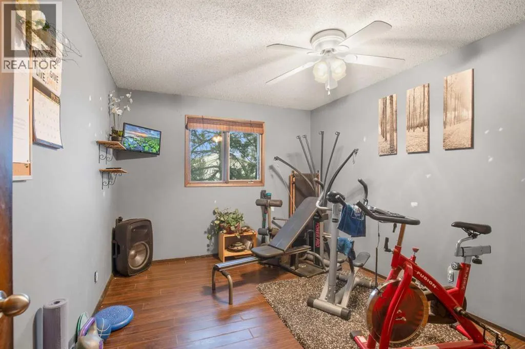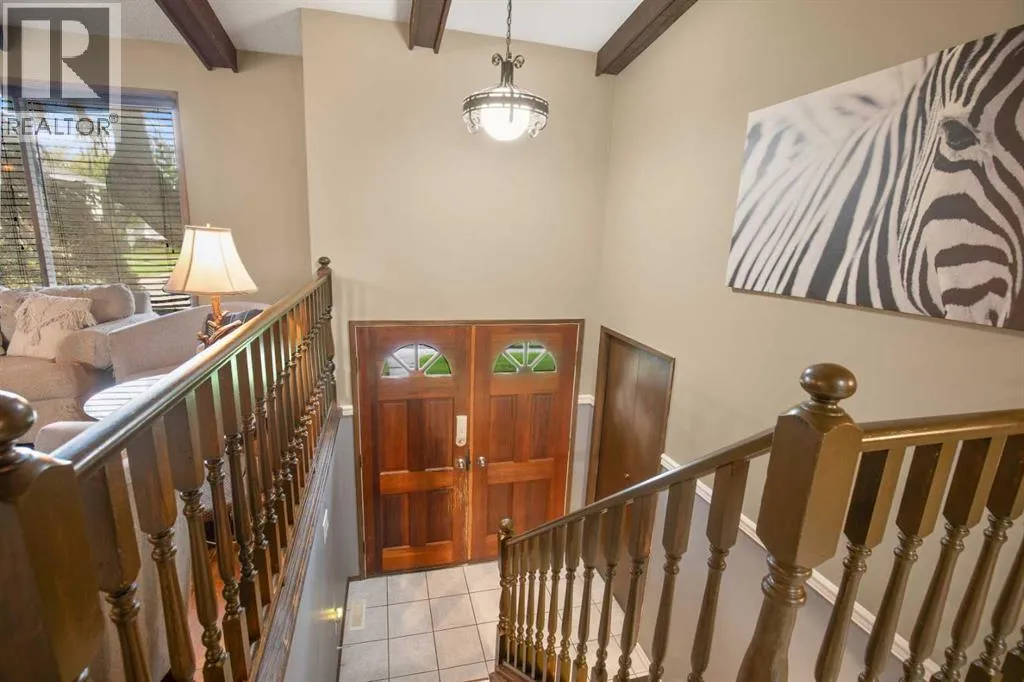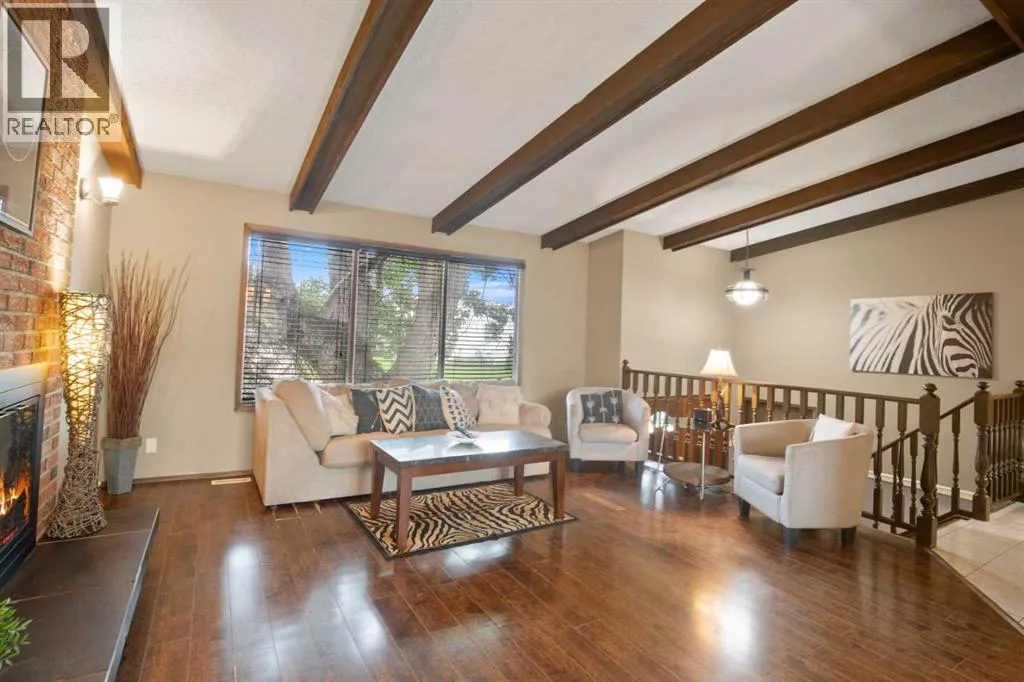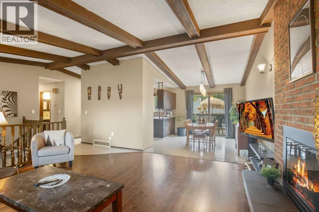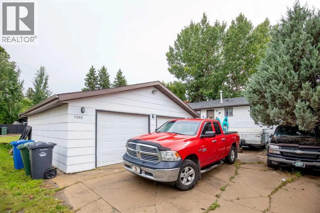 Great family home with lots of room. This character bi-level with vaulted ceiling with eye-catching exposed wood beams in the living room and dining area. The living room showcases beautiful brick fireplace with wood-burning stove. Functional U-shaped kitchen with built in oven, plenty of cupboard space, including a pantry that opens to the dining area. Just off the dining area you have direct access to the large deck, for seamless indoor/outdoor living. Down the hall you you will find the primary bedroom with 3 pc ensuite, 2 bedrooms and a 4 pc main bathroom. Down stairs through the sliding barn door, the partially finished basement offers an additional bedroom, family room/extra bedroom with an brick faced natural gas fireplace, laundry room, roughed in bathroom and additional space for future development, with room to make it your own. Double detached insulated garage with 220 volt wiring and lots of space for parking and storage. Back yard is low maintenance with it being concrete, great for entertaining, parking extra vehicles, or RV's. Shingles on garage are 3 years old and the house shingles are 4 years old. New deck 5 years ago. Hot water tank is 3 years old, and new furnace in 2008. (id:27476)