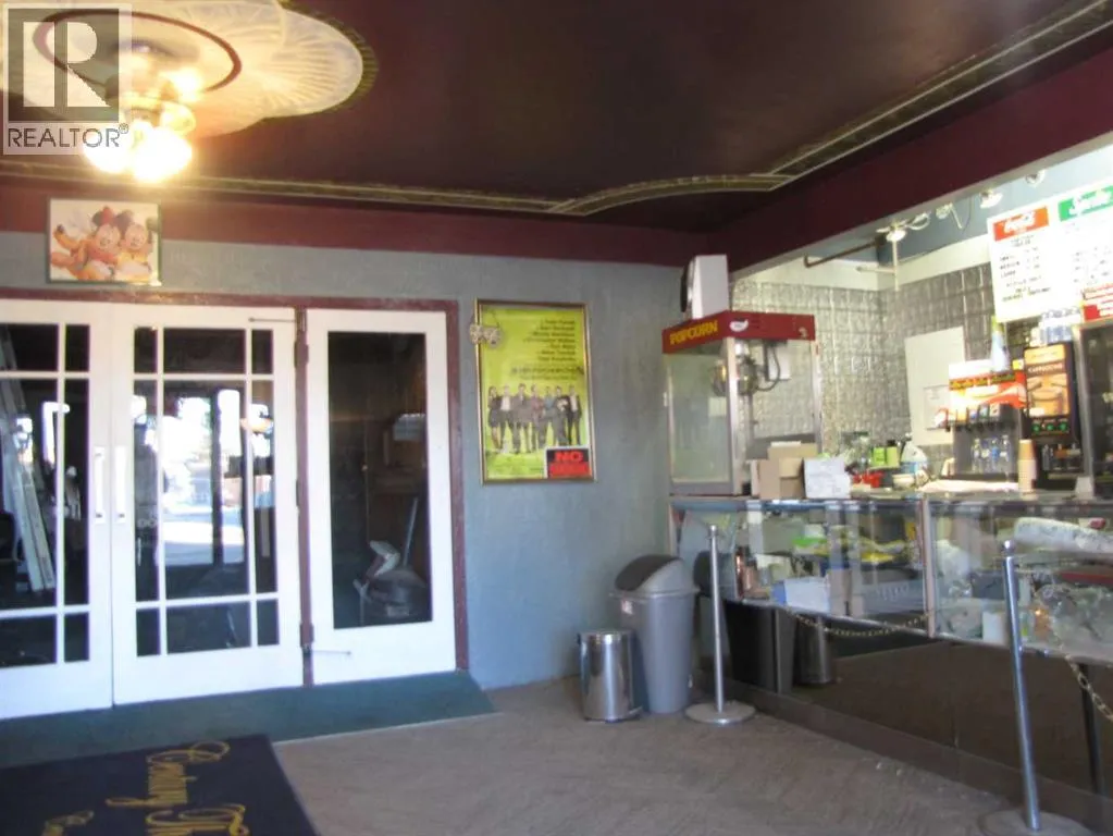 Historic Building downtown Innisfail (built in 1928 ) 9000 +/- sq ft building . Let your creativity flow. Operated for almost a Century as a Live Entertainment center and Movie Theatre ( digital equipment ). Known as Century Theatre . Presently 3 revenue streams with the Auditorium as a future 4th 1./Residential apartment, 2./Retail store, 3./Lobby area. Presently the Auditorium is not being operated. Main lobby has ticket counter, concession area with glass counters and display case plus stainless sink counter , all Equipment included. Also has office area , numerous windows , and storage room. Auditorium has EXCELLENT ACOUSTICS (ask Gord Bamford or Brett Kissell if you want an Artists opinion ) and is also set up for movies (2D and 3D )all Digital equipment as well as the Drop down Screen . Seating area is 60 ' by 36' 10 ", Ceiling is around 16 ft high and is hand painted tin , 60 Upgraded Seats with cup holders and 170 regular seats on a sloped floor plus space for handicapped patrons. 2 handicapped accessible bathrooms. Screen is 28'11"x 15' and lifts up for live shows on the 36' 10" x 16' stage. There is a back stage plus huge storage and work areas on both sides of the auditorium. There is also a Sound ,light control room plus concession storage room . Other events held in Theatre space include , birthdays, private rentals, company appreciation nights, power point presentations, group rentals, even weddings, capacity for 270+ people. It may be possible to have two movie screens. Upper Rental suite is around 1100 sq ft w/ 2 bedrooms, office , kitchen ,laundry , 4 pce bath and living room ( present tenant 8 yrs ) All windows replaced . COCO vap leases West unit Street level which is 900 +/- sq. ft , it has front retail area , two offices and large common area , 2 pce bathroom( lease in place) Lots of potential, I would say an Entrepreneurs dream . Historic designation for the building may be possible. Century Theatre Company has owned and operated the building for 25 yrs. GST is applicable. More information in supporting documents (also copies of original plans). Seller may consider financing. Note some upgrades in progress. (id:27476)