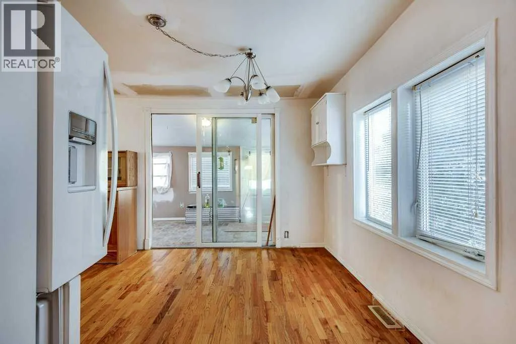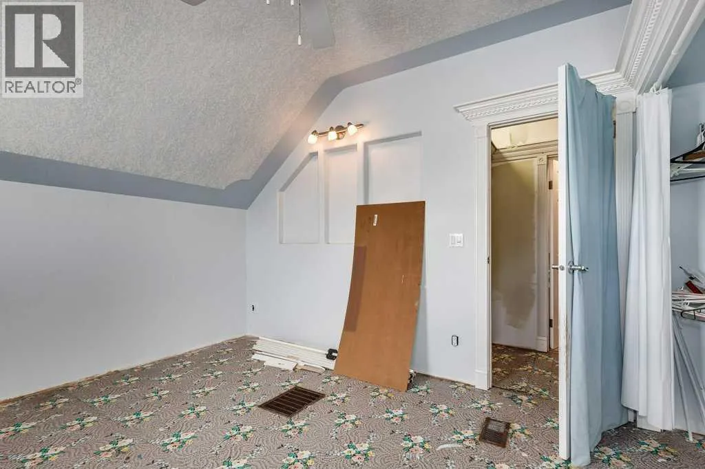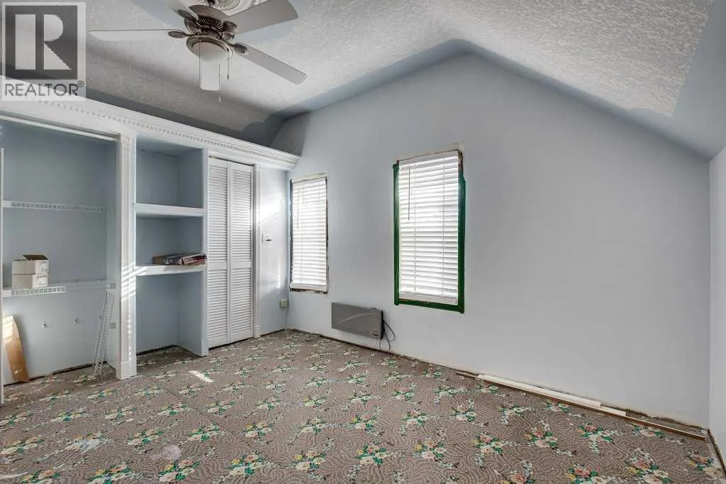 Welcome to a character-filled 1½-storey home in the heart of Innisfail! Bursting with charm and natural light, this 3-bedroom, 2-bath property blends functional living and a bright, open layout! Step inside through the inviting entry room- perfect for coats, shoes, and seasonal gear-featuring a garden door that leads into the cozy living room, where warm hardwood floors and large windows create a bright, welcoming space. The living area flows seamlessly into the kitchen, which offers generous cabinetry, excellent prep space, and a sunny dining area. Beyond the kitchen, a spacious laundry/mudroom provides convenient access to the back deck and yard-ideal for families, pets, and outdoor entertaining with multiple garden spaces and fruit trees. The main floor includes a comfortable bedroom and a 3-piece bath, offering flexibility for guests or main-level living. Upstairs, youâll find two additional bedrooms, including a large primary bedroom with custom built-in closets, accent lighting, and charming display nooks framed by elegant crown molding with integrated lighting-a truly unique feature that adds warmth and personality. A 3-piece bath with a classic clawfoot tub completes the upper level. Outside, youâll love the fenced yard with alley access to a detached single garage-ideal for parking, storage, or a workshop- along with additional space for RV or off-street parking. A partial basement offers extra storage and workspace options. Located steps from schools, parks, and Innisfailâs downtown core, this home delivers both charm and practicality and is perfect for first-time home buyer, investors, or anyone seeking a well-maintained home with character to add your personal touches! (id:27476)