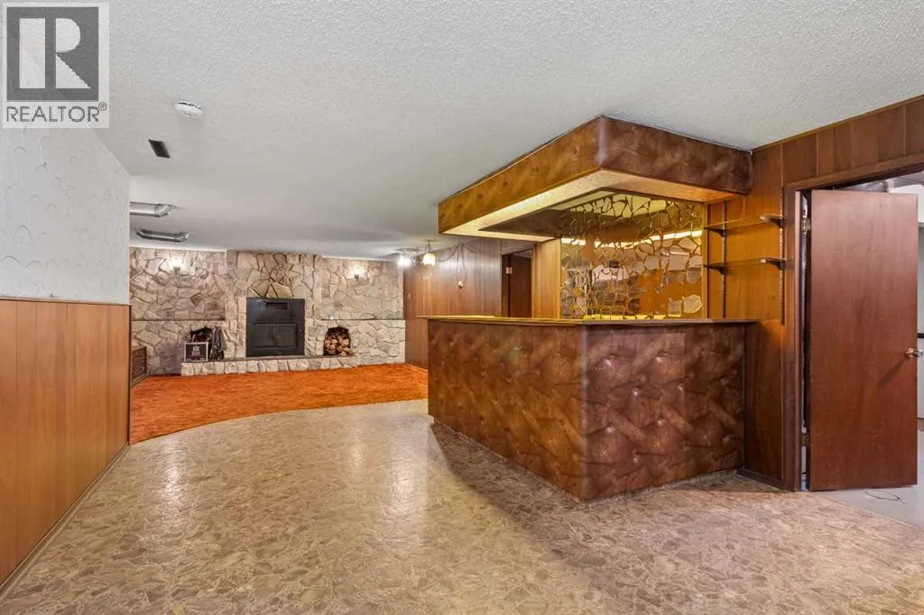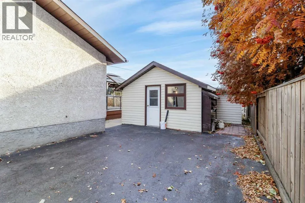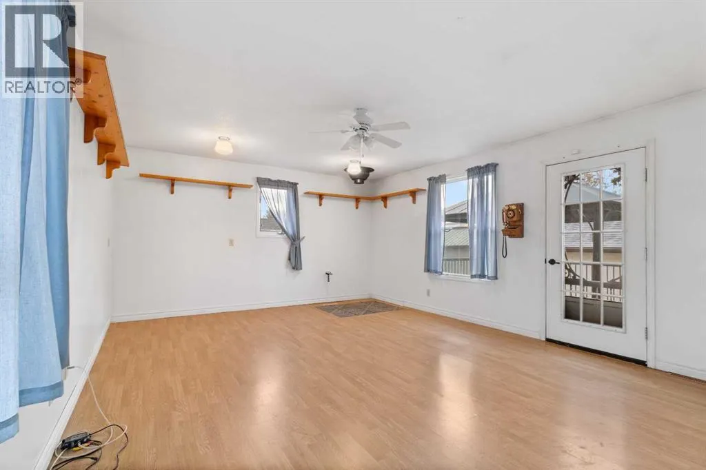 Welcome to 4044 50 Avenue â a beautifully maintained bungalow nestled on a large, mature lot in the heart of Innisfail. This home reflects true pride of ownership inside and out. Perfectly situated close to the hospital, schools, sporting facilities, the seniorsâ home, and walking trails, itâs also just a short stroll to downtown shopping and amenities. Step inside and immediately feel the warmth and charm of this inviting home. The main level offers two bedrooms, 1 bathroom, and a thoughtfully designed layout filled with natural light. The front living room features beautiful bay windows that frame the outdoor views, creating a bright and welcoming space to gather. The adjoining formal dining room provides an ideal setting for hosting family dinners or entertaining guests. The kitchen offers plenty of storage and functionality, finishing the main area is a sunny addition that expands the main living spaceâperfect for relaxing or enjoying morning coffee with a view of the backyard. Hardwood flooring and laminate adds timeless appeal, while convenient main-floor laundry and updates such as newer shingles and a newer hot water tank bring added comfort and peace of mind. Downstairs, the fully finished basement exudes vintage charm. The cozy family room features a classic wood-burning fireplace, wet bar, and warm wood finishes that create a nostalgic and comfortable retreat for evenings spent with family and friends. Lots of storage as well as an extra fridge and freezer finish it off. Outside, this property is a dream for gardening and outdoor enthusiasts. The expansive yard is beautifully landscaped with mature trees, garden boxes, and a greenhouse. A detached âman caveâ or workshop offers additional hobby space, while the heated double detached garage and oversized driveway provide ample parking and storage. Lovingly cared for and exceptionally clean, this home stands as a rare find in one of Innisfailâs most convenient and established areas. With its combina tion of character, updates, and unbeatable location, 4044 50 Avenue is truly one of a kind. If youâve been waiting for the right home, this could be the one. (id:27476)