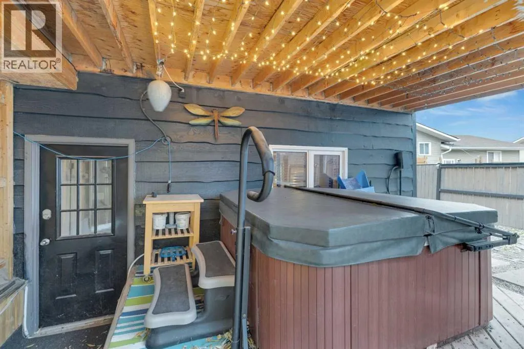 Location is key for this wonderful home. Perfectly positioned backing onto a tranquil green space, this property offers a wonderful blend of privacy, functionality, and family-friendly living. The spacious backyard is ideal for entertaining or relaxing, featuring a covered hot tub accessed from the third-level family room walk-up, an upper deck off the primary bedroom, and an impressive two-car detached shop with 220V power and 10â ceilings â perfect for hobbyists, trades, or extra storage. Inside, youâll find a bright, open layout that flows seamlessly between living areas â ideal for a growing family or those just starting out. The inviting living room centres around a cozy fireplace, while the kitchen offers plenty of counter space, solid cabinetry, and updated appliances for everyday convenience. The lower level includes a theatre room and additional space for family activities or guests. Set in a mature, quiet neighbourhood close to parks, schools, and walking trails, this home combines comfort, space, and location beautifully. It truly shows great and is ready for its next chapter! (id:27476)