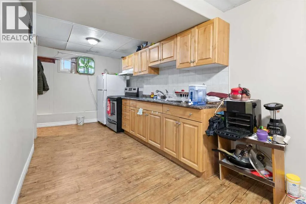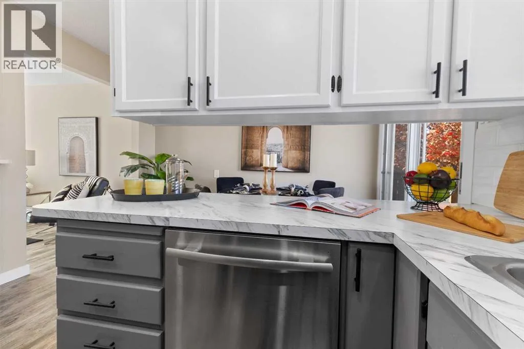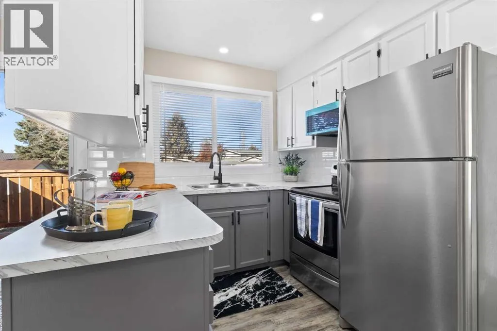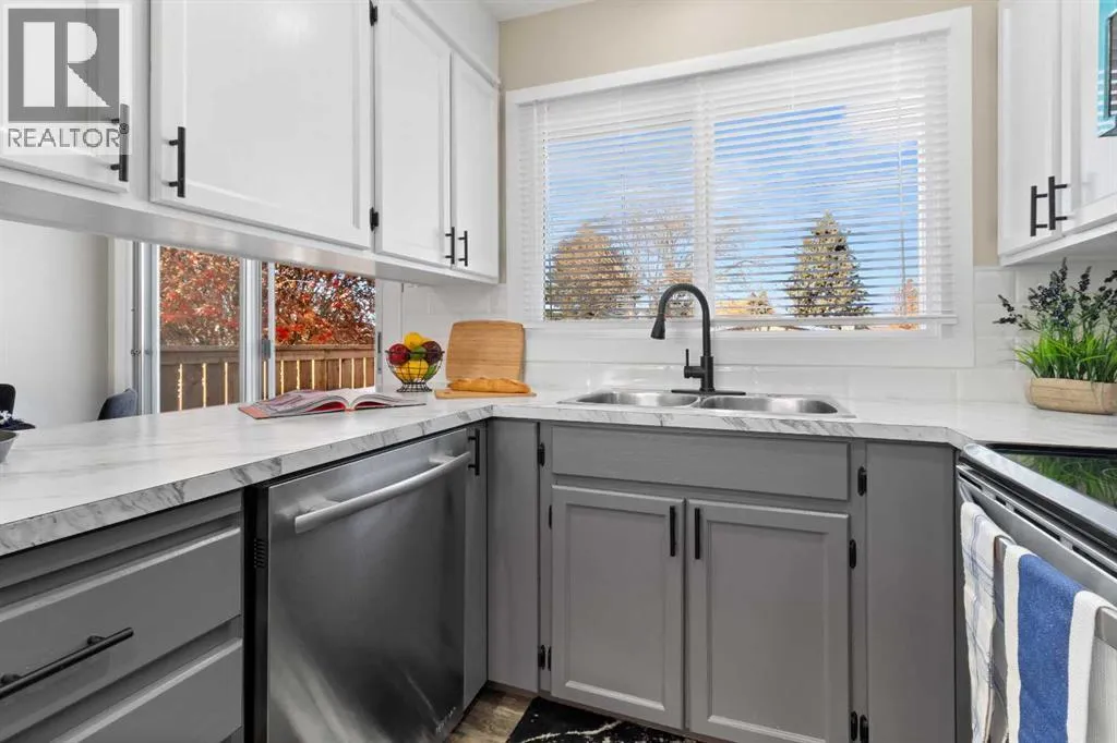 This newly renovated efficient bungalow is ready for a new owner. The main floor has just had extensive renovations. New vinyl flooring, new interior doors and trim , and new LED lighting. Kitchen countertops have been replaced , new microwave installed and cabinets repainted. Dishwasher is a Jenn Air and is whisper quiet. All bedroom windows and one window in the kitchen are new with new cordless blinds as well. The main floor bathroom has also just been renovated with new flooring back splash tile and new vanity. There is a separate laundry space just off the kitchen. This home has a large fully fenced yard with a double paved parking pad and rear laneway access. There is a good sized storage shed in the back yard with concrete ramp. The attached deck off the kitchen patio has been rebuilt with treated lumber. There is a separate door off the deck that gives private access to the basement .The basement is currently rented out for $985 a month with utilities included. The basement area has one bedroom one four piece bathroom a living and dining room space and a separate laundry and storage area. The shingles on the home were just replaced and facia as well. New eavestrough are scheduled to be installed. Seller is also bringing in new additional insulation to be blown in for the attic space. Furnace is newer and hot water tank is brand new as well. Pick your upstairs tenant and set your rent where you want it. This a great investment opportunity you could move into the upstairs space and keep the basement rented out. (id:27476)
