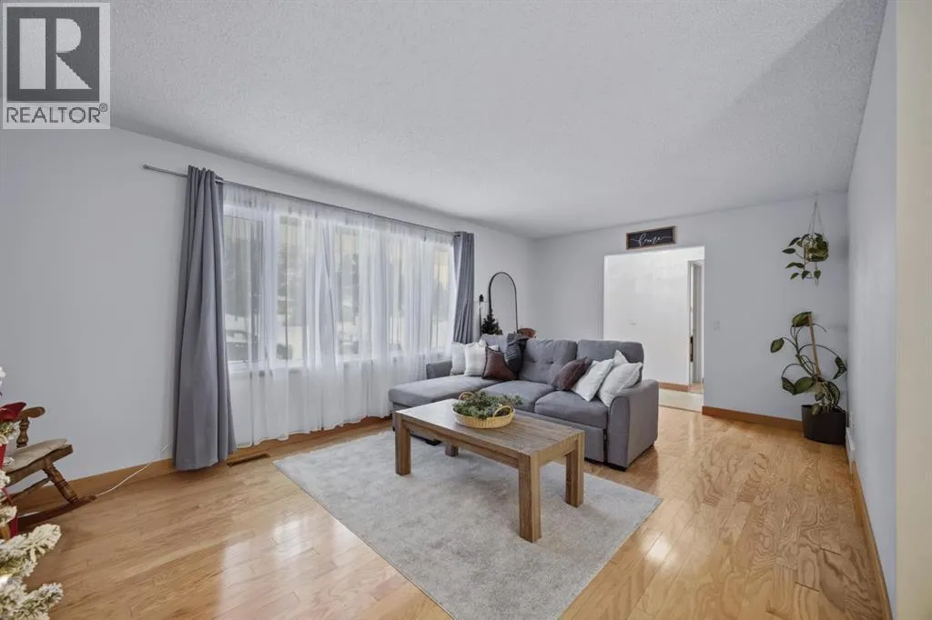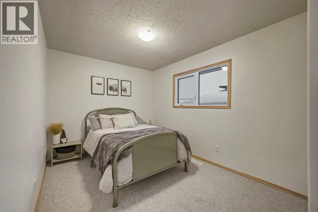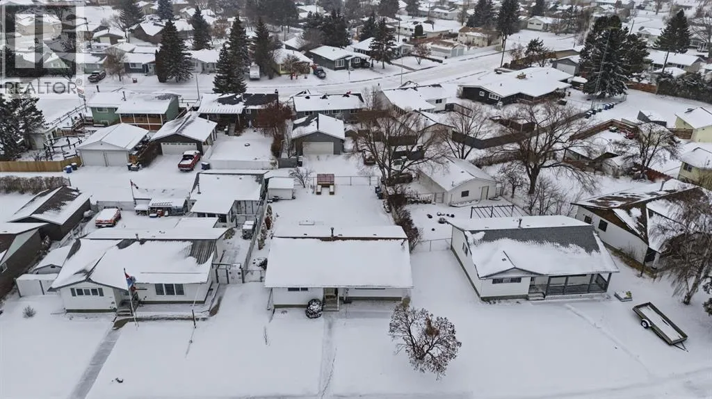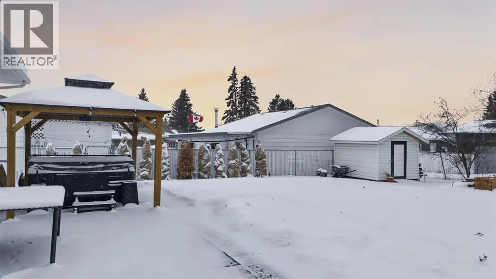 Beautifully maintained bungalow offering three bedrooms and one full bathroom, ideally situated in a great neighborhood with a large green space out front and close to the dog park, Centennial Park, schools, swimming pool, and baseball diamonds. This spacious 1,180 sq. ft. home features numerous upgrades over the years, including new shingles, windows, furnace, hot water tank, and updated kitchen and bathroom, providing peace of mind for the next owner. The main floor is filled with natural light and showcases beautiful hardwood flooring, with carpet in the bedrooms. A welcoming front entry opens into a large living room, offering plenty of space for comfortable furnishings and entertaining. Updated light fixtures add to the homeâs warm and modern feel. The updated kitchen features ample cabinetry, generous counter space for meal prep, and a sink overlooking the backyard. Three well-sized bedrooms complete the main level. The basement offers excellent potential, featuring a rough-in for future bathroom, a dedicated laundry area, and abundant storage, ready to be finished to suit your needs. Outside, enjoy a fully fenced, beautifully landscaped yard with cedar trees, flowerbeds, shed and thoughtful landscaping. Recent additions include a new patio, new gazebo and Dynasty hot tub. The yard also offers ample space for RV parking or the future addition of a garage. This home combines comfort, functionality, and location in a perfect starter home close to parks and amenities, offering long-term value in a sought-after community. (id:27476)