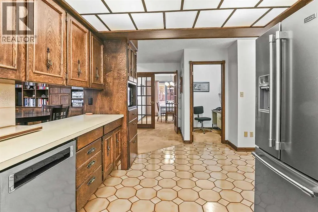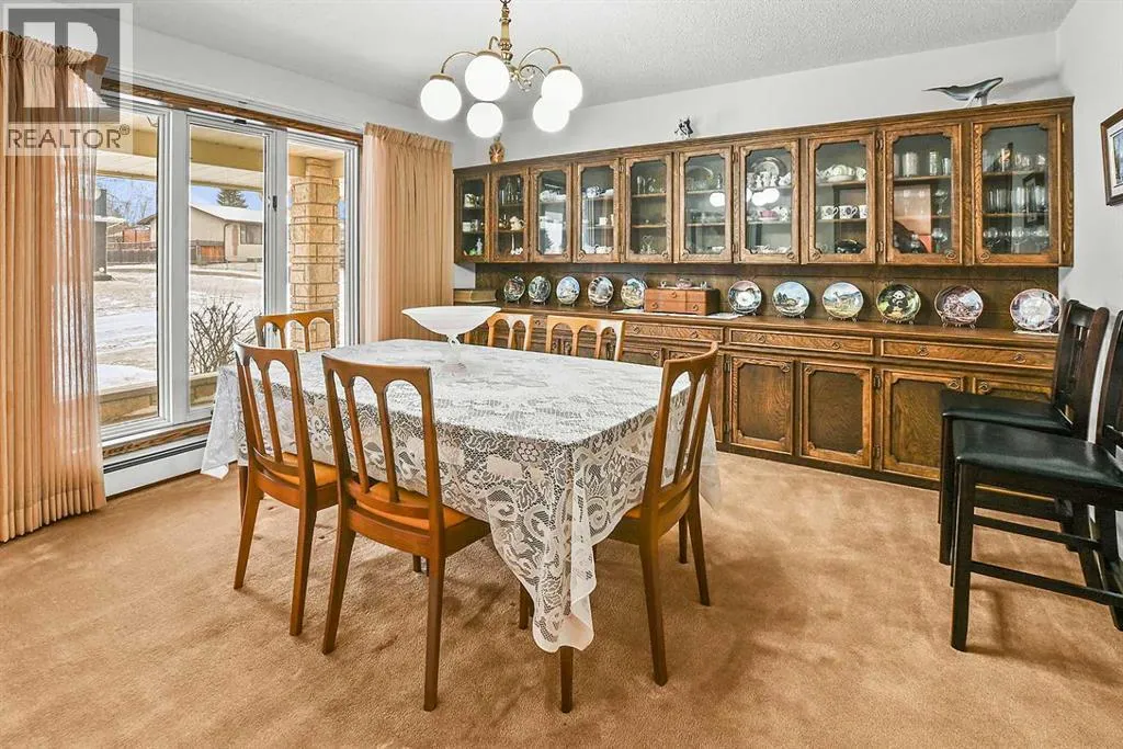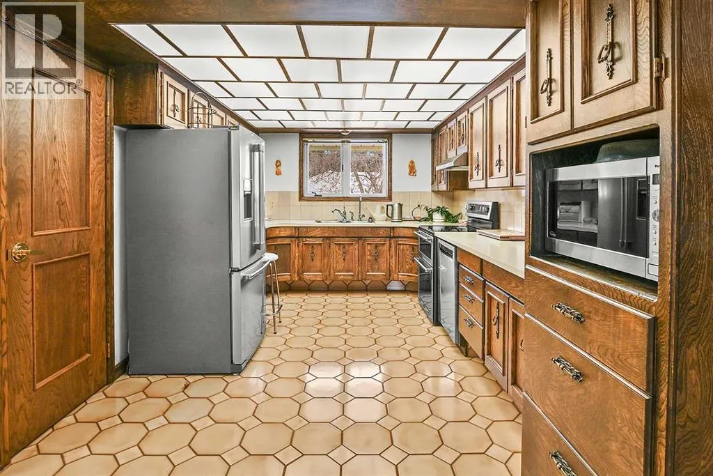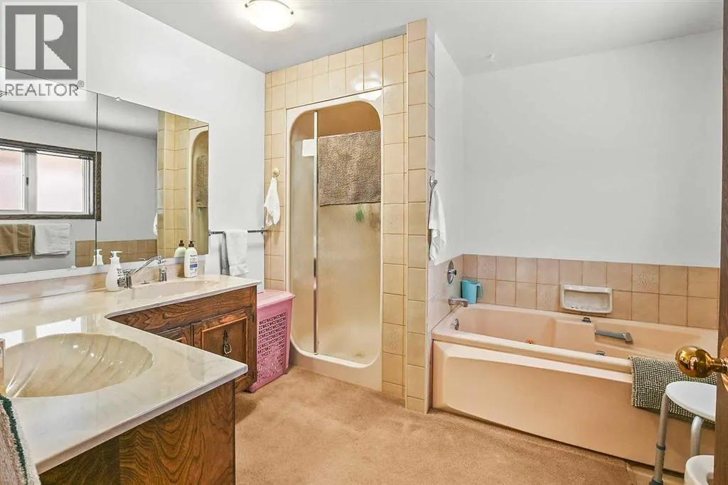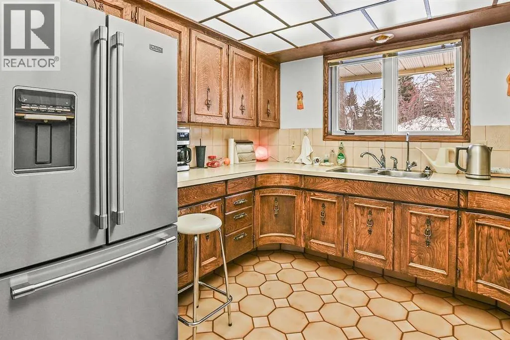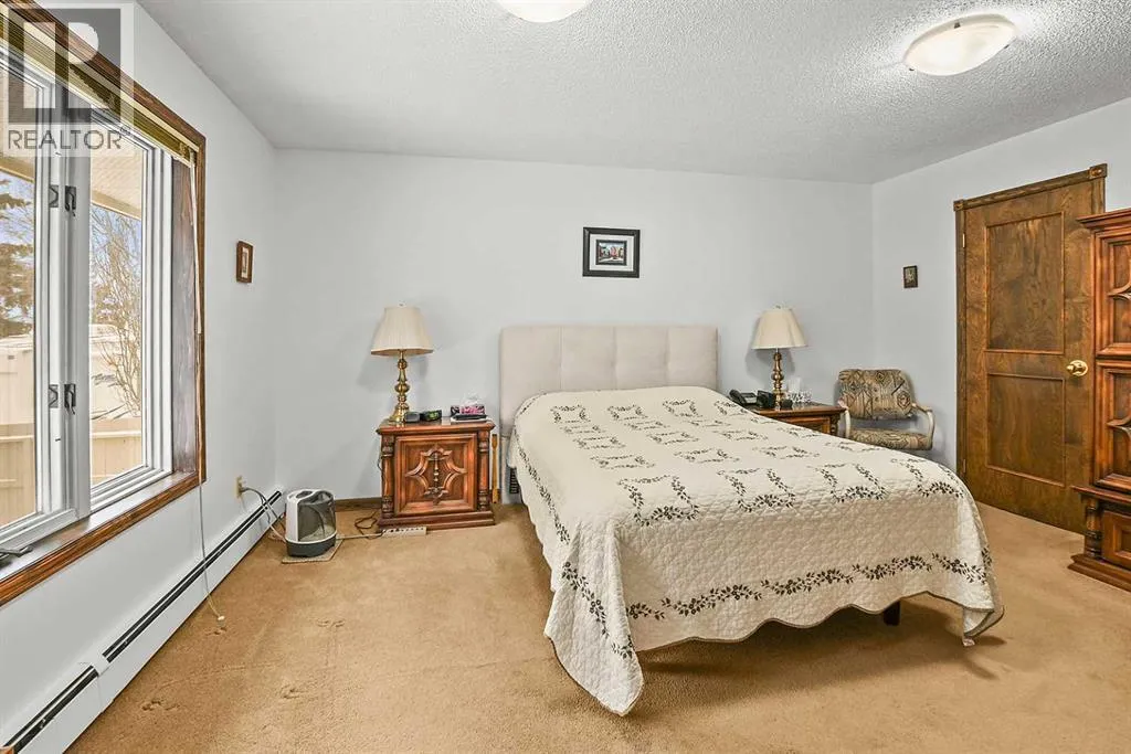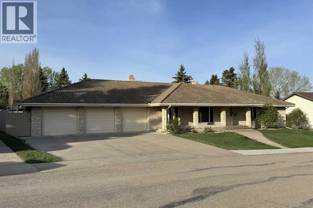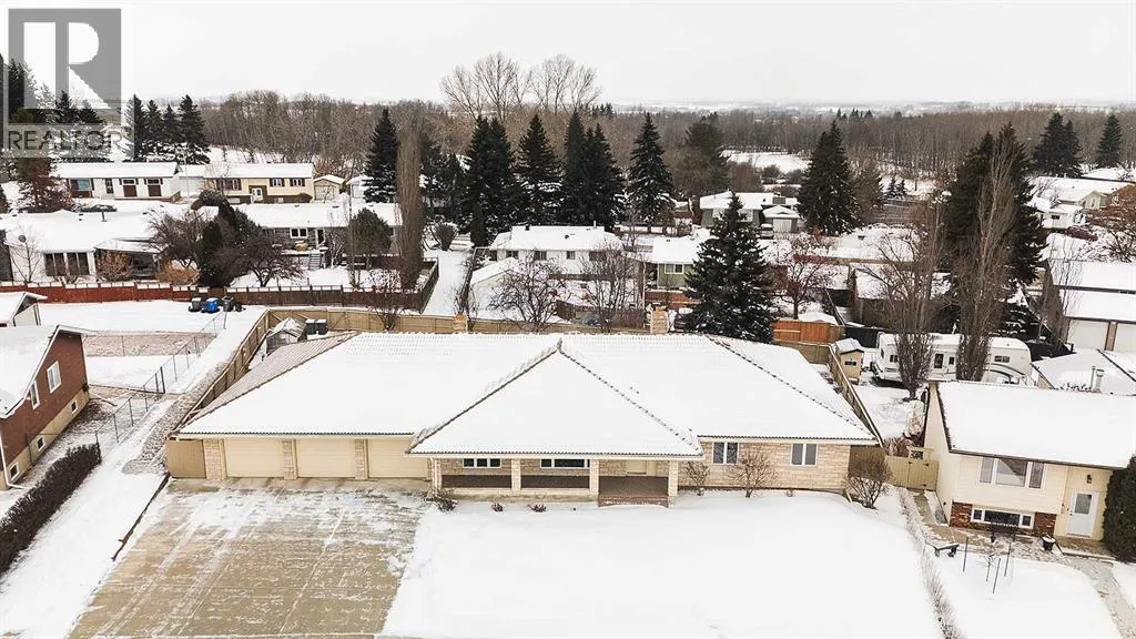 Back on Market and Priced to Sell. Nestled on an expansive 100â lot in Innisfail, this custom-built bungalow is a rare gem, meticulously maintained by its original owners. Situated on TWO standard-sized lots, the maturely landscaped property boasts a programmable irrigation system, two rear RV-sized parking pads, a greenhouse, and two storage sheds. Built with premium materials, the home features engineered roof trusses, a gorgeous concrete tile roof, and a stucco exterior with striking Tyndall Stone accents. Inside, the sprawling main floor showcases exquisite custom woodwork, all built on-site by a local second-generation craftsman, adding a level of detail and quality rarely found. The chefâs kitchen offers custom-built cabinetry, a walk-in pantry, and updated stainless steel appliances, flowing into a bright family room with skylights, built-in wood bookshelves, and a stunning European-style fireplace with stonework. The formal dining room features a built-in china cabinet and French doors leading to the living room. The primary suite is a retreat with a walk-in closet and a luxurious 6-piece ensuite with a jetted tub, dual sinks, separate shower, and bidet. Two additional bedrooms, a 4-piece bathroom, a home office, main-floor laundry with built-in cabinets, and a powder room complete this level. The fully finished basement offers a huge family room with a second European-style fireplace, two large bedrooms, a 3-piece bath, cold storage, and 2 storage rooms. With a separate entrance from the oversized heated 3-car garage, this basement is perfect for teenaged kids or extended family. Additional features include a commercial-grade 9-zone hot water boiler system, dual hot water tanks, a reverse osmosis system, water softener, central vacuum, and an impressive 4-season sunroom overlooking the beautifully landscaped backyard. A one-of-a-kind home that offers space, elegance, and timeless craftsmanship! (id:27476)