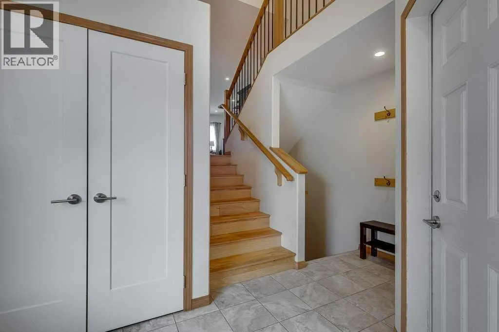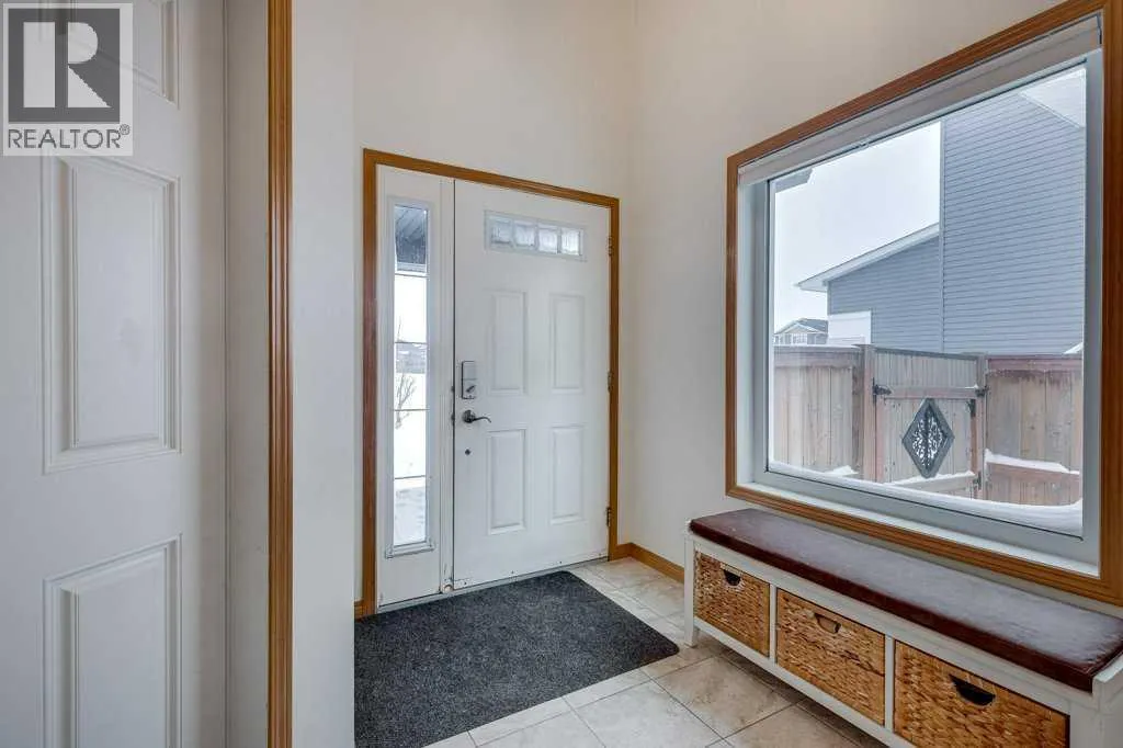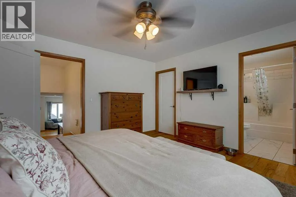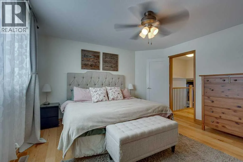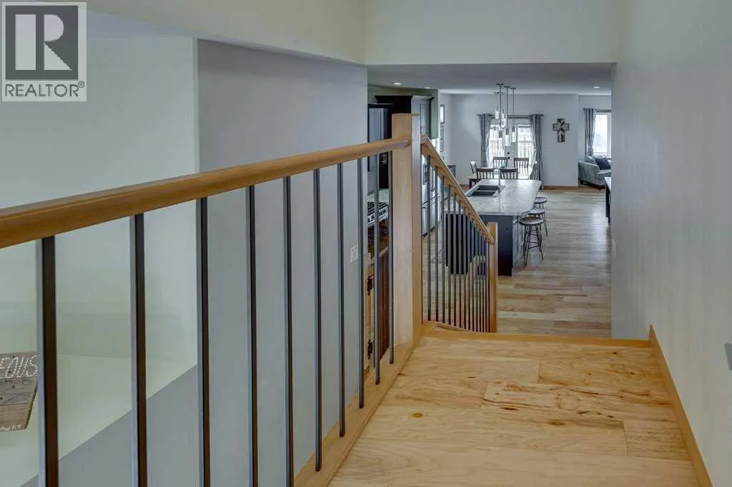 Beautifully maintained modified bi-level located in one of Innisfailâs most desirable neighborhoods, Napoleon Meadows Way! From the moment you arrive, the curb appeal stands out on this home. The modern exterior with stone accents and covered entry creates a welcoming first impression. Inside, the main level features engineered hardwood flooring and an open layout that flows seamlessly between the living, dining, and kitchen areas. The living room is enhanced by a cozy gas-burning fireplace that adds warmth and character. The kitchen offers rich cabinetry, generous counter space, a functional island, and a gas stove for cooking- a feature anyone who loves to cook will appreciate! Patio doors lead directly to the deck, making summer entertaining and BBQs effortless. Also located on the main floor are two well-sized bedrooms and a 4-piece bathroom- ideal for children, guests, or a home office setup. Upstairs, the primary bedroom truly feels like its own private suite. Set apart from the other bedrooms, this upper-level retreat offers excellent separation and privacy but is still located close enough to tend to small children. Complete with a walk-in closet and a 4-piece ensuite, itâs a comfortable and functional space designed for everyday living. The lower level offers substantial development already underway, including a developed bedroom, a two piece bathroom, some framed rooms and a large open area ready to be finished to your preference. In-floor heat keeps things nice and cozy! The mechanical systems are clean and well organized, including a high-efficiency furnace and hot water tank. The home is also equipped with air conditioning, providing year-round comfort. Step outside to enjoy the fully fenced yard and upper deck with decorative railing detail and neighborhood views. The double attached garage is oversized with excellent overhead storage and workspace potential- perfect for busy families, hobbies, or additional organization. Located in a quiet close and w ith popular Centennial park within walking distance, this is a solid, well-built home that offers comfort today and the flexibility to complete the basement development in the future! (id:27476)