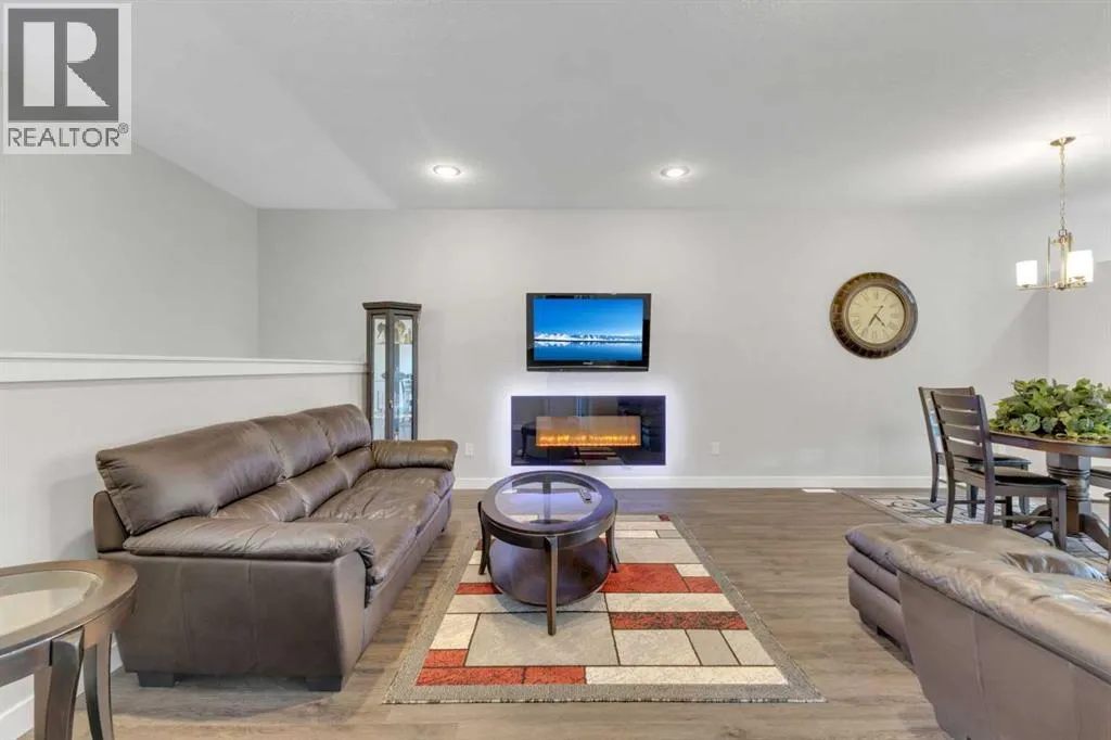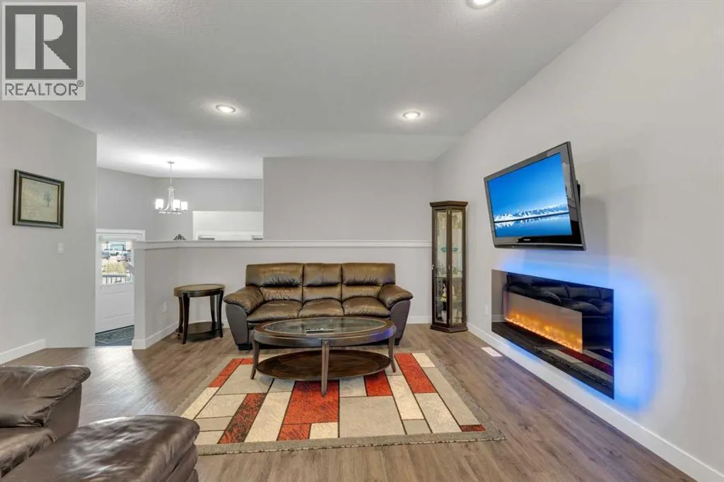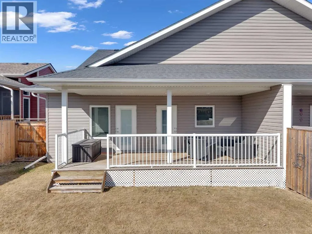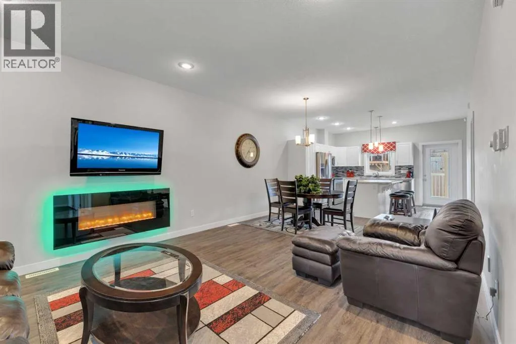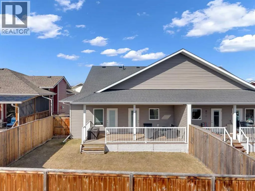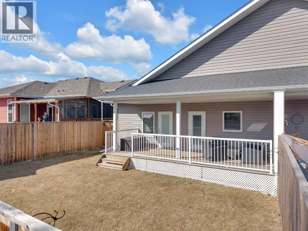 Welcome to this exceptional executive-style half duplex in the sought-after Hazelwood Estates neighbourhood of Innisfail â where quality construction, a fully finished layout, and an unbeatable location come together to offer truly turn-key living. With immediate possession available, this is the one you have been waiting for.From the moment you arrive, this beautifully maintained 2017-built bi-level impresses with strong curb appeal, a covered front porch, and a heated and insulated double attached garage. Step inside to discover a bright, open-concept main floor finished with durable vinyl plank flooring throughout. The kitchen is a standout, featuring stainless steel appliances and a layout designed for both everyday living and entertaining. Main floor laundry and closet organizers throughout add the practical touches that make daily life easy.The main floor offers two bedrooms and two full bathrooms, while the electric fireplace adds warmth and ambience to the living area. Step out through garden doors onto the covered deck overlooking a fully fenced backyard â a private outdoor retreat perfect for relaxing or entertaining.The fully developed basement is an exceptional space, offering two additional bedrooms, a full bathroom, a generous family room, and large storage and utility rooms. Whether you need room for a growing family, overnight guests, or a dedicated hobby space, this lower level delivers.Central air conditioning keeps the home comfortable all summer long, and the heated and insulated garage is a true Alberta luxury â your vehicles and workspace will thank you all winter.The location is second to none. A park sits directly across the street, Doddâs Lake is just steps away, and walking and biking trails wind throughout the neighbourhood. Golf enthusiasts will love the quick drive to the Innisfail Golf Club, and the ski hill is just minutes from your front door. Schools, shopping, and all essential services are close at hand.No projects. No waitin g. Just move in and enjoy everything this outstanding home and community have to offer. (id:27476)