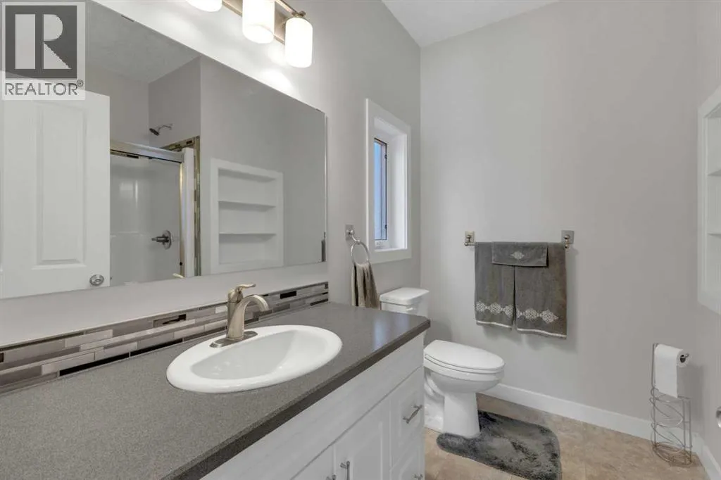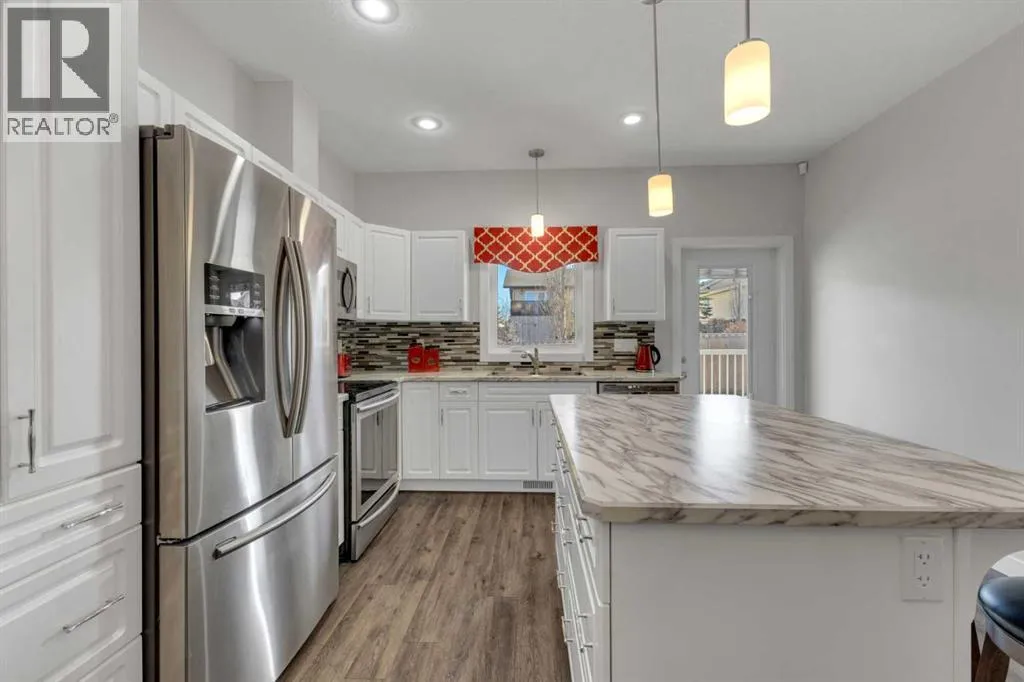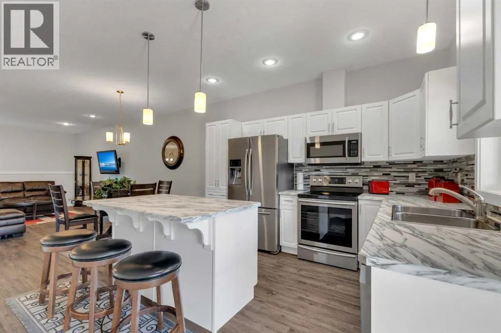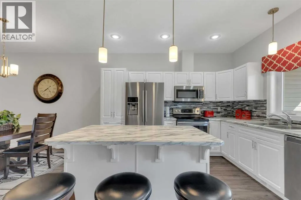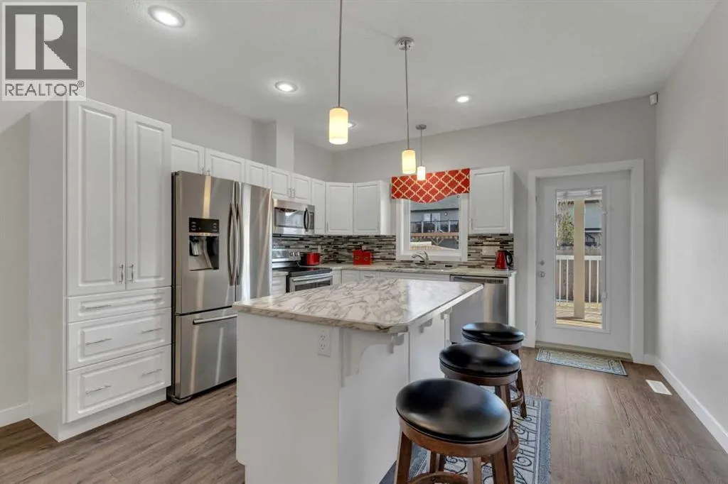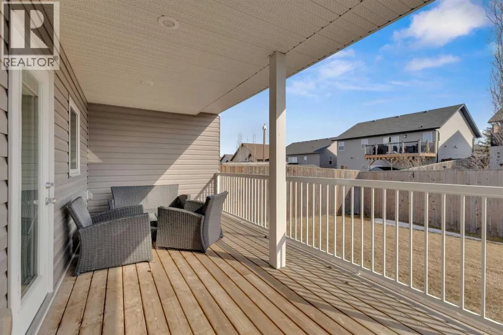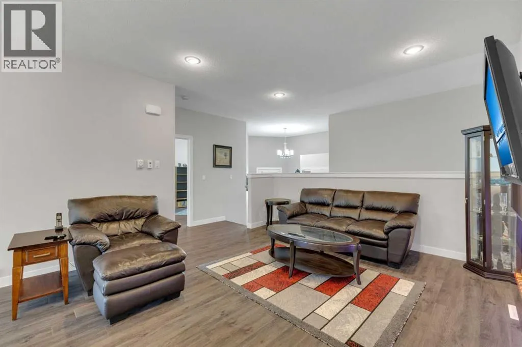 Welcome to this exceptional executive-style half duplex in the sought-after Hazelwood Estates neighbourhood of Innisfail â where quality construction, a fully finished layout, and an unbeatable location come together to offer truly turn-key living. With immediate possession available, this is the one you have been waiting for.From the moment you arrive, this beautifully maintained 2017-built bi-level impresses with strong curb appeal, a covered front porch, and a heated and insulated double attached garage. Step inside to discover a bright, open-concept main floor finished with durable vinyl plank flooring throughout. The kitchen is a standout, featuring stainless steel appliances and a layout designed for both everyday living and entertaining. Main floor laundry and closet organizers throughout add the practical touches that make daily life easy.The main floor offers two bedrooms and two full bathrooms, while the electric fireplace adds warmth and ambience to the living area. Step out through garden doors onto the covered deck overlooking a fully fenced backyard â a private outdoor retreat perfect for relaxing or entertaining.The fully developed basement is an exceptional space, offering two additional bedrooms, a full bathroom, a generous family room, and large storage and utility rooms. Whether you need room for a growing family, overnight guests, or a dedicated hobby space, this lower level delivers.Central air conditioning keeps the home comfortable all summer long, and the heated and insulated garage is a true Alberta luxury â your vehicles and workspace will thank you all winter.The location is second to none. A park sits directly across the street, Doddâs Lake is just steps away, and walking and biking trails wind throughout the neighbourhood. Golf enthusiasts will love the quick drive to the Innisfail Golf Club, and the ski hill is just minutes from your front door. Schools, shopping, and all essential services are close at hand.No projects. No waitin g. Just move in and enjoy everything this outstanding home and community have to offer. (id:27476)