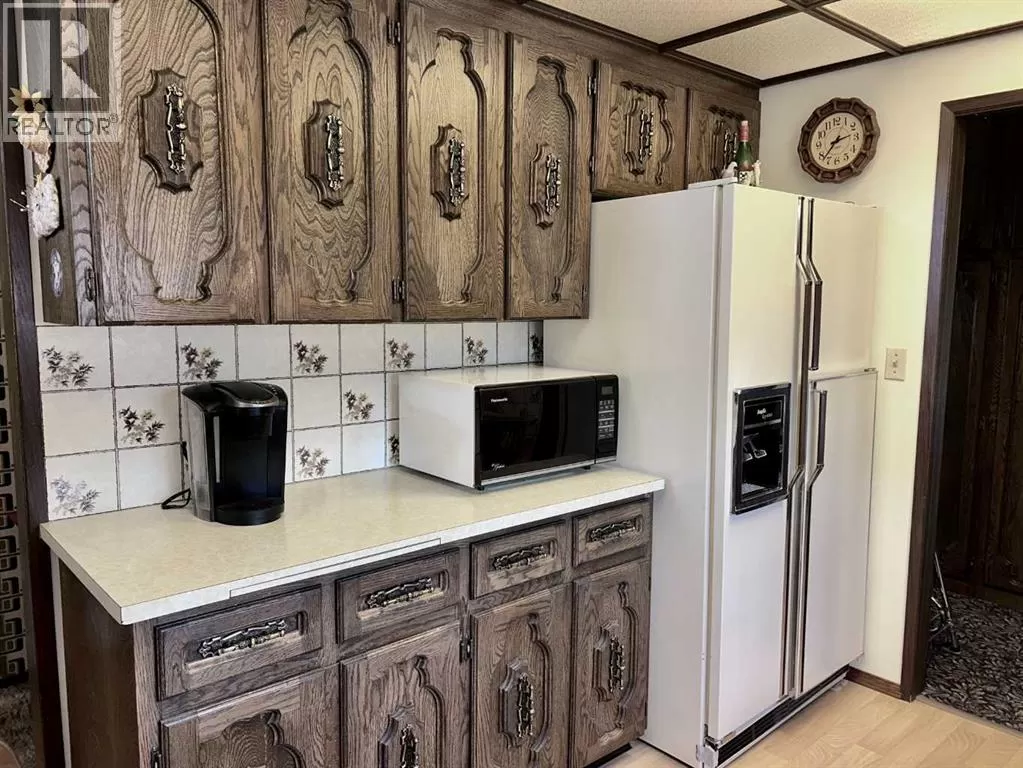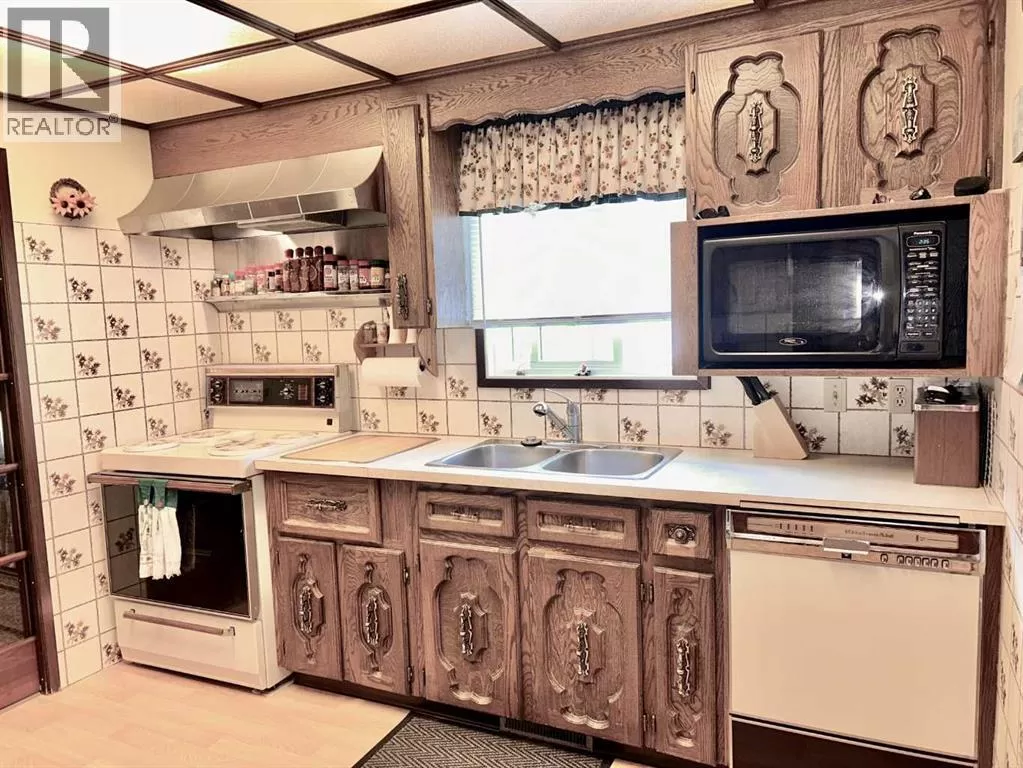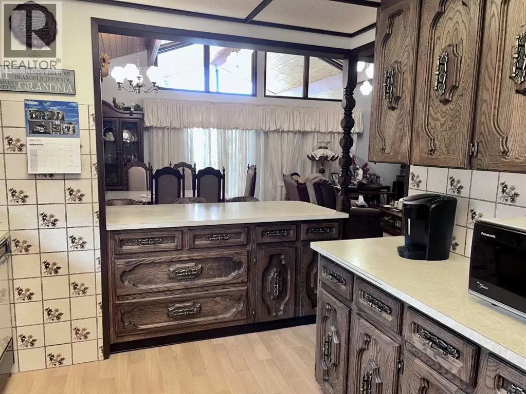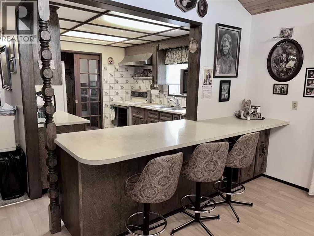 Beautiful Family Home with Walk-Out Basement, Heated Pool & Exceptional Storage. This Spacious and well-maintained home, which was built in 1962, has had an addition and many renovations over the years, is located on the edge of the village of Innisfree. The main floor features a large dining/family room with a wall-to-wall wood-burning fireplace, complete with a natural gas ignition system and built-in fan for heat distribution. Two sliding patio doors lead to a covered balcony (approx. 430 sq. ft.), perfect for indoor-outdoor living - Coffee on the deck has new meaning with this beautiful outdoor space. The large kitchen features a commercial range hood, pantry with deep shelves and storage and a breakfast bar for informal meals. The home offers 3 bedrooms up, plus an additional flex space ideal for an office or media room. The fully finished walk-out basement includes a large family area, a second full kitchen, bar area, and additional flex/office space that could be converted to a rental suite. Additional features include: Two high-efficiency furnaces, a 50-gallon (189L) gas hot water tank, Central air conditioning, humidifier, and vacuum system; a Cold room (approx. 40 sq. ft.) with insulation and full shelving and a spacious laundry/freezer room with hanging space. Outdoor amenities include an 18â x 36â heated in-ground pool with 8-ft deep end, two storage sheds, three attached exterior storage spaces (approx. 300 sq. ft. total), and a 6-ft cedar fenced yard with two gated entrances. The oversized heated garage includes floor-to-ceiling shelving and a built-in workbench. Mature trees and shrubs provide excellent privacy. Ideal for families, multi-generational living, or buyers seeking suite potential. A must see property! The Village of Innisfree offers a 24 hour convenience store with gas station, banking, postal service, skating rink, Curling rink, library, a Kindergarten-grade 12 school and a short commute to major centers via the twinned Hiway 16 including Vegreville, Vermilion and Edmonton. (id:27476)
