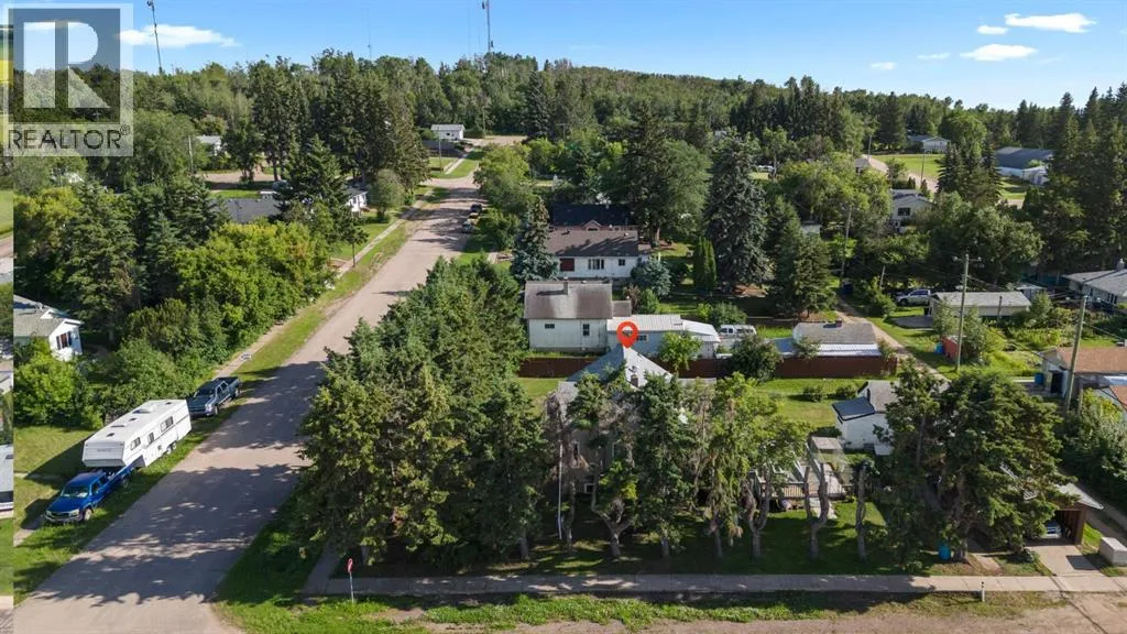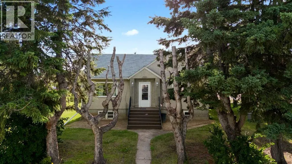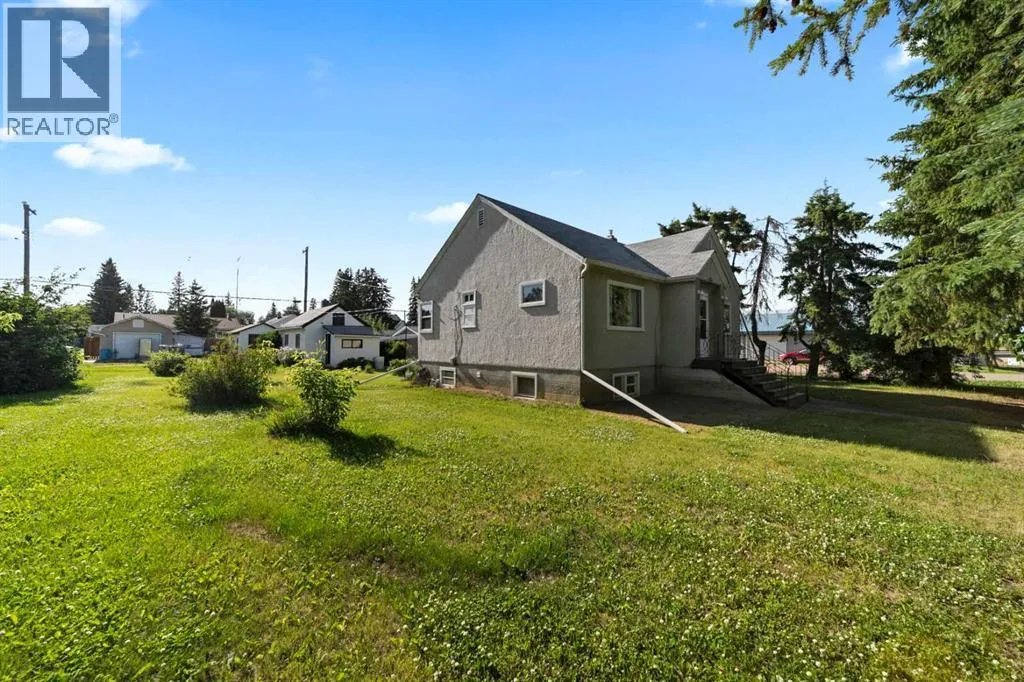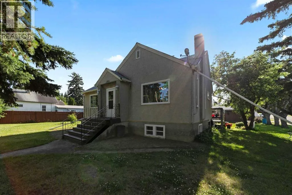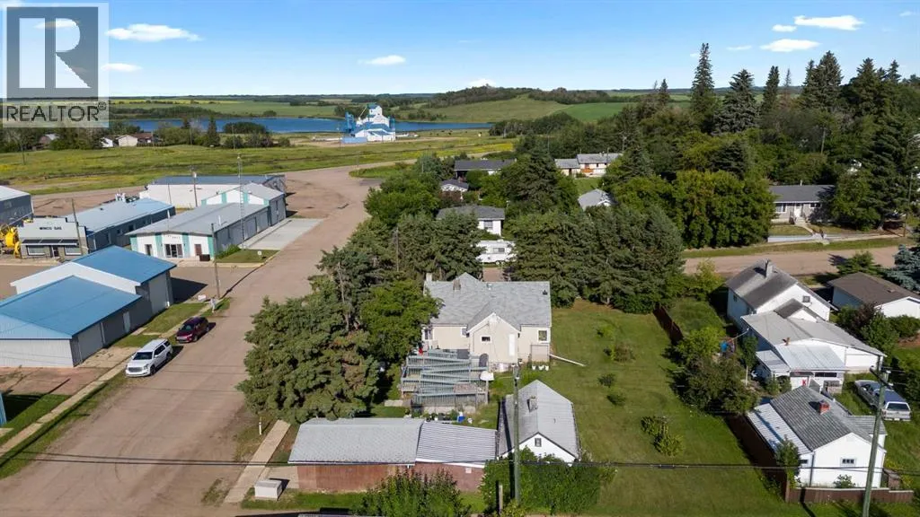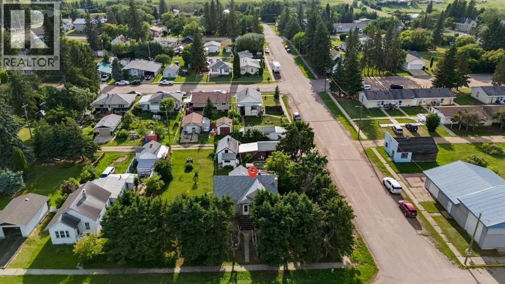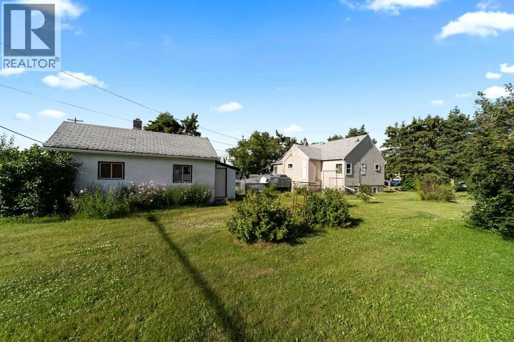 Charming bungalow with character and updates in the heart of Innisfree! This unique home stands out with its custom-stamped stucco exterior, arched architectural details, and a rounded feature wall at the front entrance that adds distinctive flair. Inside, you'll find hardwood flooring, a spacious living room with elegant French doors leading to the eat-in kitchen, and thoughtful design throughout. The main floor features 2 comfortable bedrooms, a full bathroom with brand new walk-in shower, and convenient main floor laundry. Downstairs, the basement offers 2 additional bedrooms, a roughed-in bathroom (ready for your finishing touches), a second laundry area, and plenty of storage or flex space. Major updates include furnace and hot water tank (2023), vinyl windows (2022), 100 amp electrical service, and water filtration for fresh water throughout. PLUS a huge convenience is that this property is on City of Edmonton water! The exterior offers even more: fruit trees, a powered shed, a fenced dog run, and a detached single garage. Plus, enjoy your own backyard âcottageâ â ideal as a studio, guest space, or creative retreat. Located in the friendly village of Innisfree, with quick access to Highway 16, this home offers charm, function, and tons of potential. A must-see for anyone seeking character and comfort in a peaceful rural setting! (id:27476)