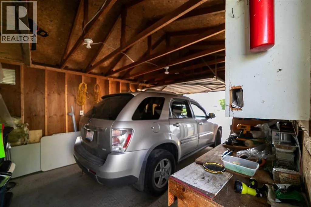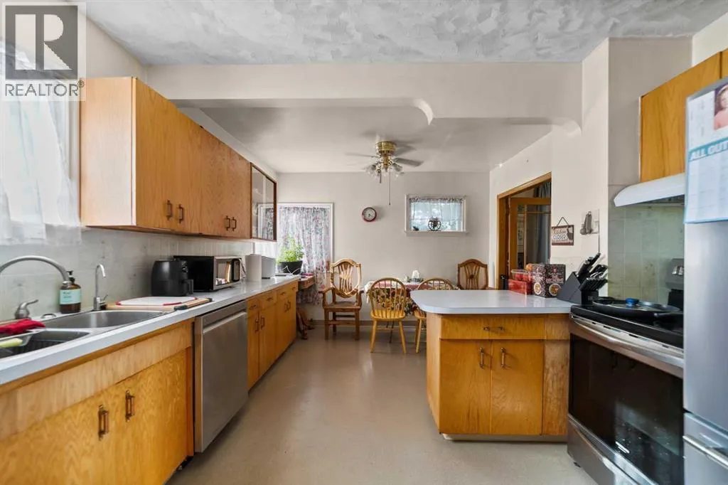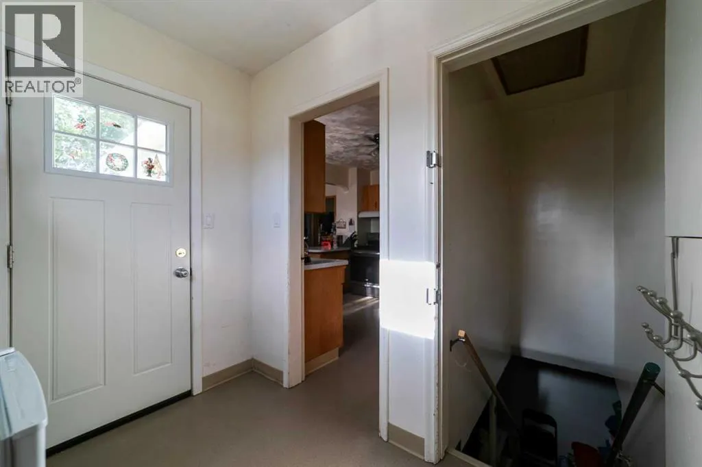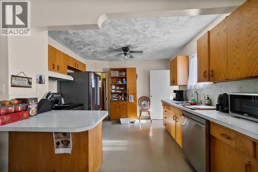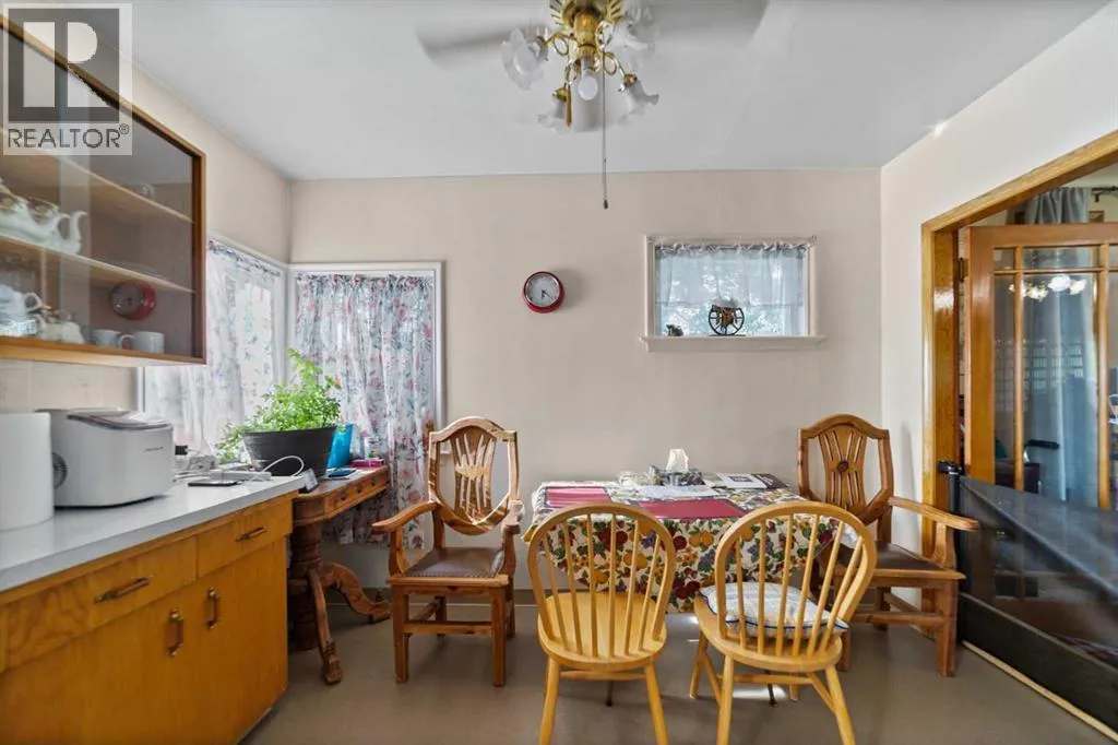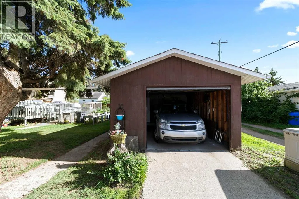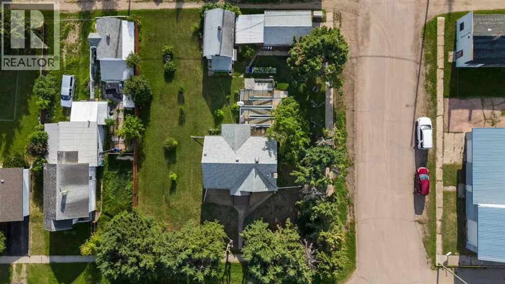 Charming bungalow with character and updates in the heart of Innisfree! This unique home stands out with its custom-stamped stucco exterior, arched architectural details, and a rounded feature wall at the front entrance that adds distinctive flair. Inside, you'll find hardwood flooring, a spacious living room with elegant French doors leading to the eat-in kitchen, and thoughtful design throughout. The main floor features 2 comfortable bedrooms, a full bathroom with brand new walk-in shower, and convenient main floor laundry. Downstairs, the basement offers 2 additional bedrooms, a roughed-in bathroom (ready for your finishing touches), a second laundry area, and plenty of storage or flex space. Major updates include furnace and hot water tank (2023), vinyl windows (2022), 100 amp electrical service, and water filtration for fresh water throughout. PLUS a huge convenience is that this property is on City of Edmonton water! The exterior offers even more: fruit trees, a powered shed, a fenced dog run, and a detached single garage. Plus, enjoy your own backyard âcottageâ â ideal as a studio, guest space, or creative retreat. Located in the friendly village of Innisfree, with quick access to Highway 16, this home offers charm, function, and tons of potential. A must-see for anyone seeking character and comfort in a peaceful rural setting! (id:27476)