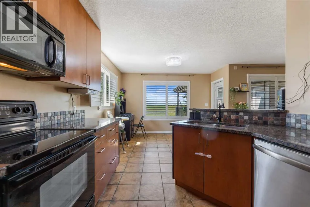 Welcome to Peaceful Country Living ;Discover the perfect blend of tranquility, comfort, and value in this fully finished walkout bungalow, offering over 2,600 sq. ft. of beautifully designed living space. Whether youâre empty nesters seeking serenity or a growing family in need of room to flourish, this home has it all.Step inside to a spacious foyer that opens into a bright great room with a cozy gas fireplace and west-facing windows framing breathtaking, unobstructed views. The open-concept dining room and kitchen feature granite countertops and provide seamless access to the garageâideal for unloading groceries with ease.The primary bedroom is generously sized, complete with a four-piece ensuite featuring a soaker tub, dual walk-in closets, and direct French door access to the deck. Two additional bedrooms and another four-piece bath complete the main level.Downstairs, the fully finished walkout basement boasts in-floor heating, large windows, a spacious games room, a bright family room, a four-piece bath, and a private bedroom with its own walk-in closet. Roof was replaced in 2023.Enjoy countless extras, including central air-conditioning, hot tub, gazebo, shed, and deck access from both the dining room and primary suite. Enjoy summer in your backyard & the Stars at night time only see while living in the country side.Located in the welcoming community of Irricana, youâll love the peaceful drive home and the miles of open countryside at your doorstep. (id:27476)