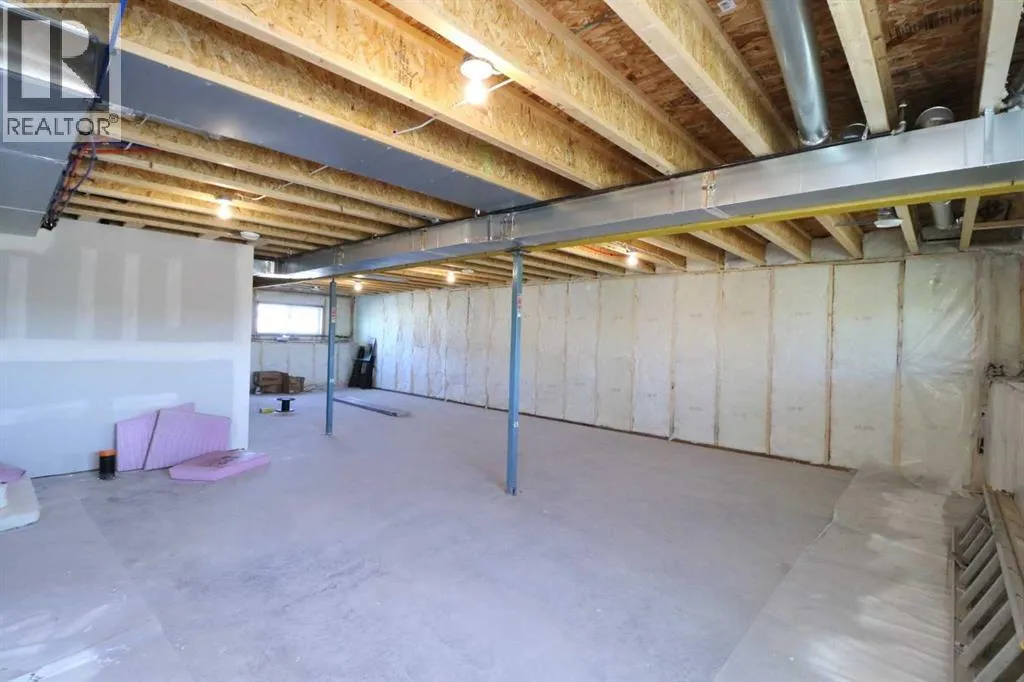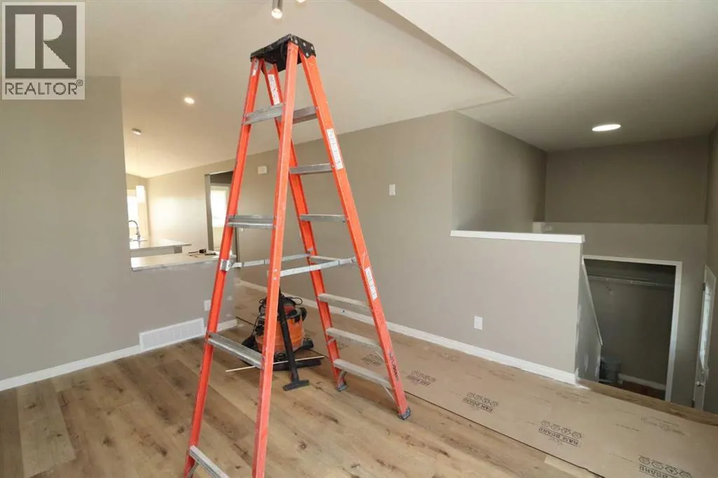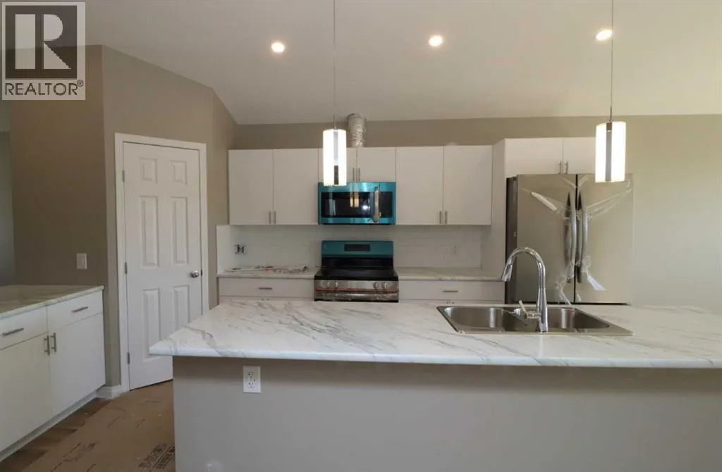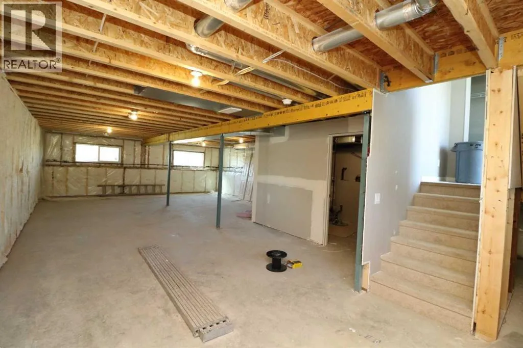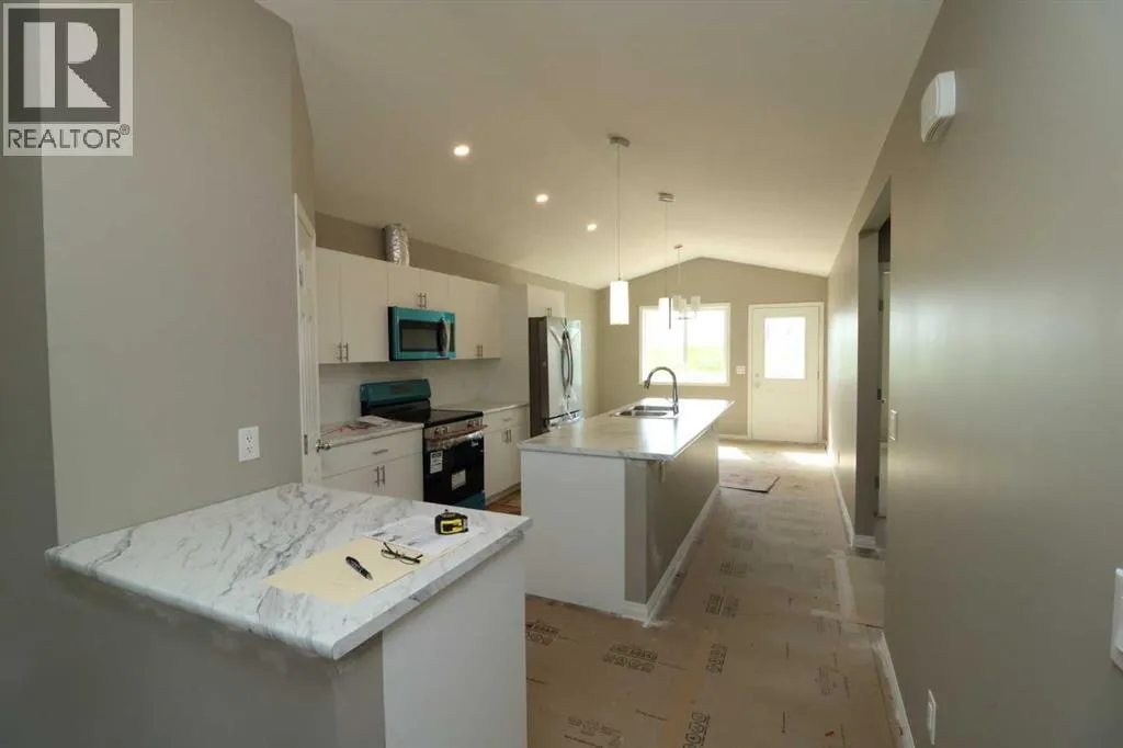 Brand New 1/2 Duplex. Small town living at a very affordable price. This 2 bedroom home has a modern finish, open concept and room to expand. With 1 pce . bathroom upstairs and potential for another on the lower level, the First time buyer or Investor, could make this into a larger cozy living space. There is also a poured concrete pad out back, so the potential to build a garage is already started. This quiet location also boasts a neighborhood Park and Recreation site, pretty much next door. Quick possession possible. (id:27476)