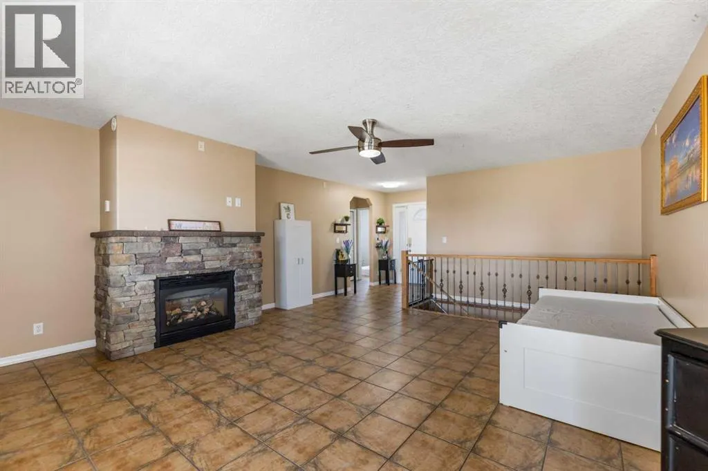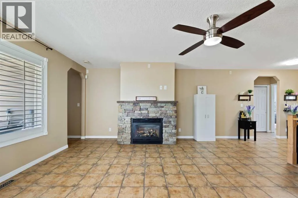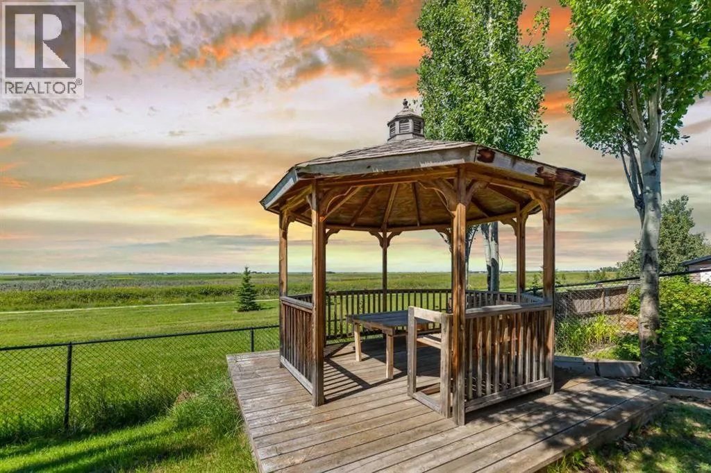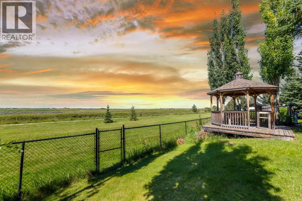Peaceful Country Living at Its Finest in Irricana:Welcome to a home where wide-open skies, quiet evenings, and modern comfort come together beautifully. This fully finished walkout bungalow offers over 2,600 sq. ft. of refined living space, delivering the perfect balance of warmth, function, and rural charm.From the moment you step inside, youâre greeted by a spacious foyer that flows effortlessly into a sun-filled great room. Expansive west-facing windows frame breathtaking, unobstructed countryside views, while a cozy gas fireplace creates the perfect gathering space for family and friends.The open-concept dining area and kitchen are thoughtfully designed for both everyday living and entertaining. Featuring granite countertops, abundant cabinetry, and seamless access to the garage, this space makes busy mornings and grocery days feel effortless.Your primary retreat is a true sanctuaryâgenerously sized and filled with natural light. The elegant four-piece ensuite includes a relaxing soaker tub, and the dual walk-in closets provide exceptional storage. French doors lead directly to the deck, where you can enjoy morning coffee with sunrise views or unwind as the sun sets across the prairie.Two additional bedrooms and a full four-piece bathroom complete the main level, offering flexibility for family, guests, or a home office.The fully finished walkout basement expands your living space with comfort and versatility. Enjoy in-floor heating, oversized windows that flood the lower level with natural light, a spacious games area, inviting family room, an additional four-piece bath, and a private bedroom with its own walk-in closetâideal for guests, teens, or multi-generational living. Added peace of mind comes with a new roof installed in 2023.Step outside and experience the true magic of country living. The backyard is designed for relaxation and enjoyment, featuring a hot tub, gazebo, shed, and multiple deck access points from both the dining room and prim ary suite. Summer evenings are made for entertaining, and clear country nights offer star-filled skies you simply canât find in the city.Located in the welcoming community of Irricana, this home offers the serenity of rural life while maintaining convenient access to nearby amenities. Enjoy peaceful drives home, friendly neighbors, and miles of open countryside right at your doorstep. (id:27476)