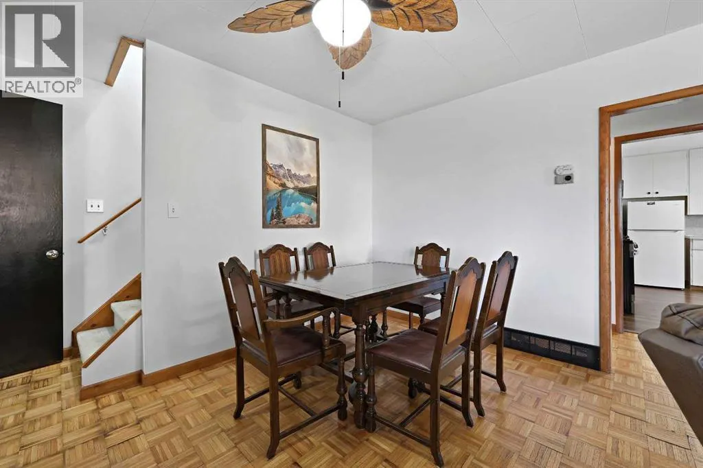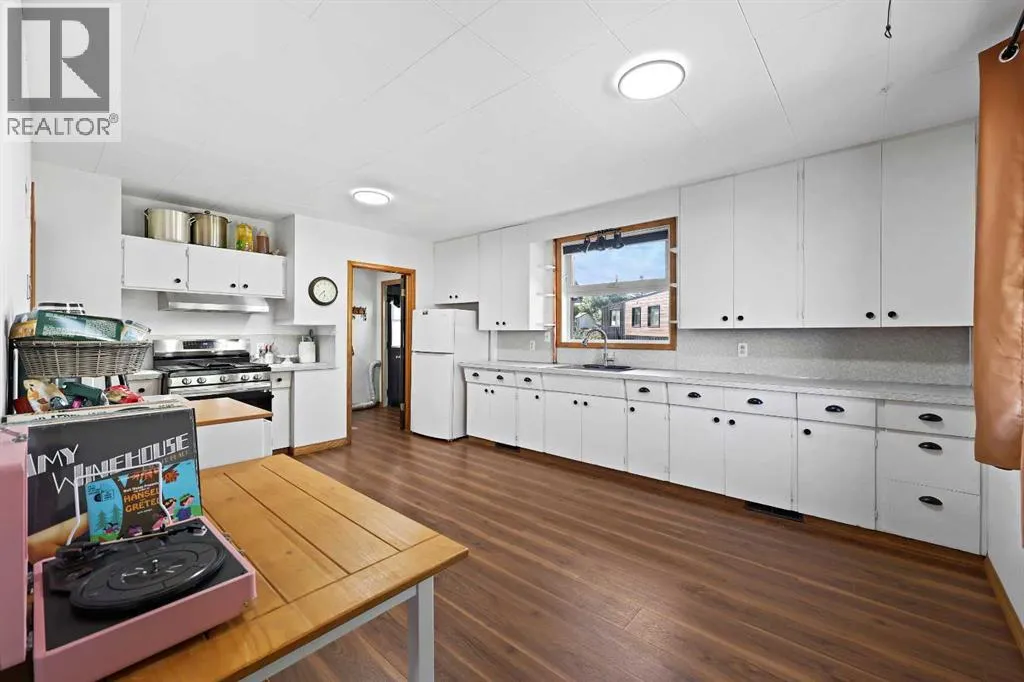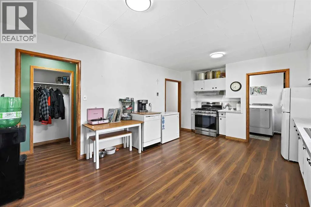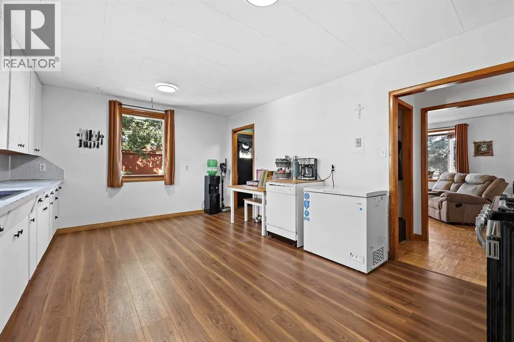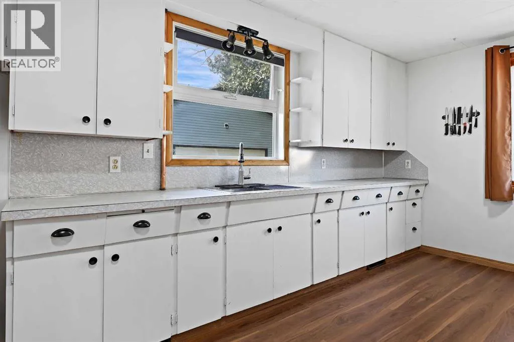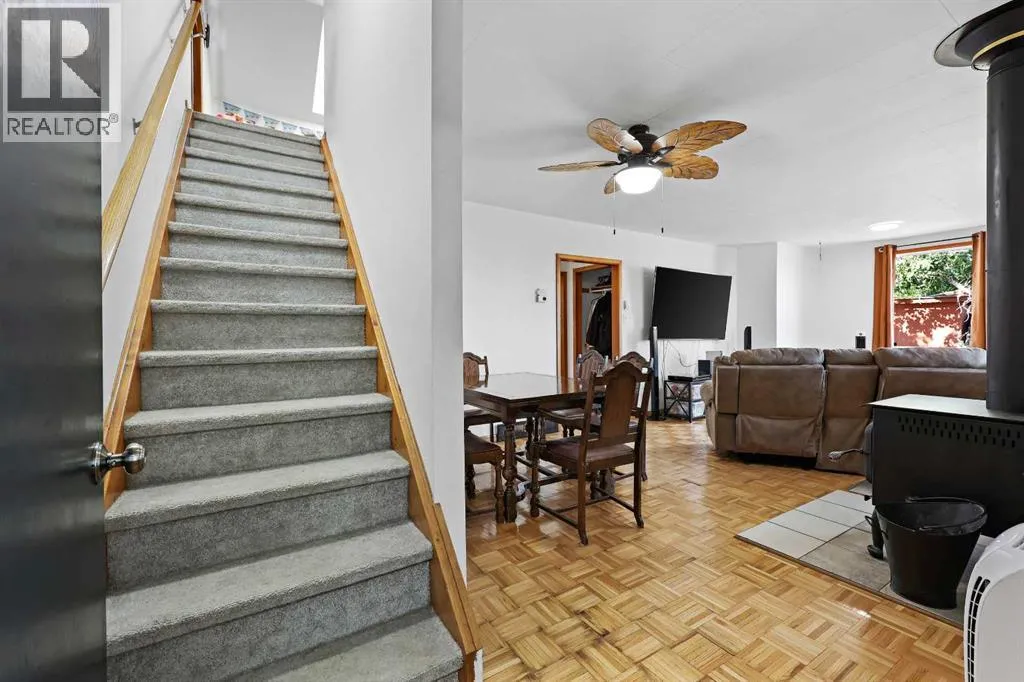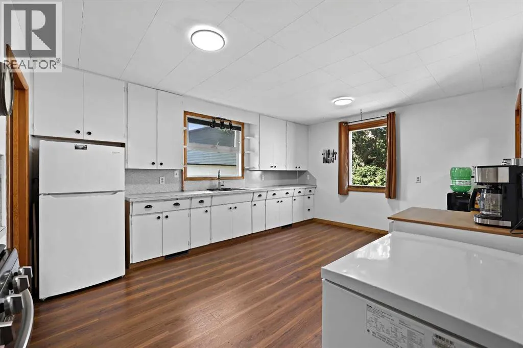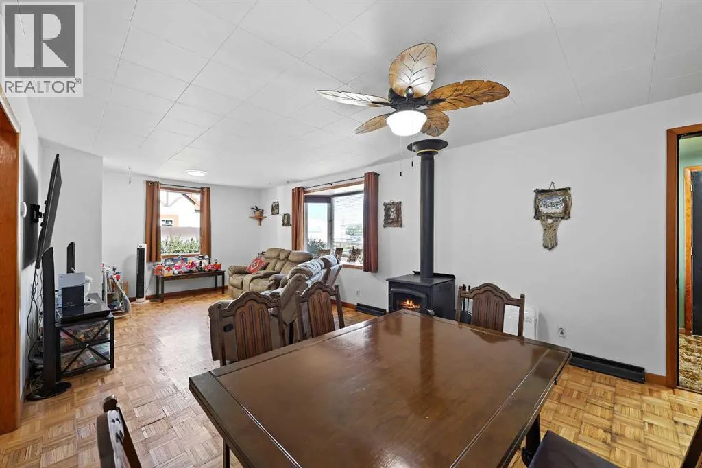 Welcome to this warm and inviting 4-bedroom, 1-bath country-style home nestled in the heart of Irricanaâjust 30 minutes from Calgary! Situated on a massive corner lot the size of four standard lots, this property offers an abundance of space with 1837 sqft of developed living space, privacy, and natural beauty with mature trees and fruit shrubs throughout. Inside, youâll find a bright and spacious layout with two bedrooms and a full 4-piece bath on the main floor, and two additional bedrooms plus a den upstairs perfect for a home office or playroom. The home features a large kitchen with ample cabinet space, a designated dining area, and three separate entrance points, making it functional and family-friendly. A cozy wood-burning fireplace anchors the living area, creating a perfect spot to gather and unwind. Youâll love the abundance of storage throughout the home, including cold storage or a hobby room in the basement. Step outside to your private backyard oasisâideal for family gatherings, gardening, or simply enjoying peaceful evenings around the fire, soaking in the quiet serenity of small-town living. A huge detached garage with a hoist offers incredible potential for a mechanic, hobbyist, or small business owner. Located in a quiet and friendly neighbourhood, with local amenities nearby and additional services just 10 minutes away in Beiseker, this property is perfect for families or investors looking to subdivide the oversized lot. This home has been thoughtfully updated over the years and is ready for its next chapterâdon't miss out on this unique opportunity! A must-see for those craving space, charm, and small-town peace. (id:27476)
