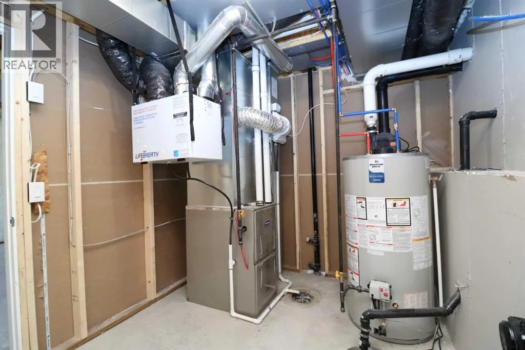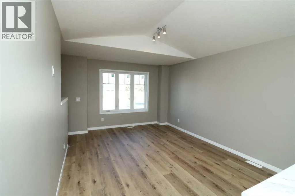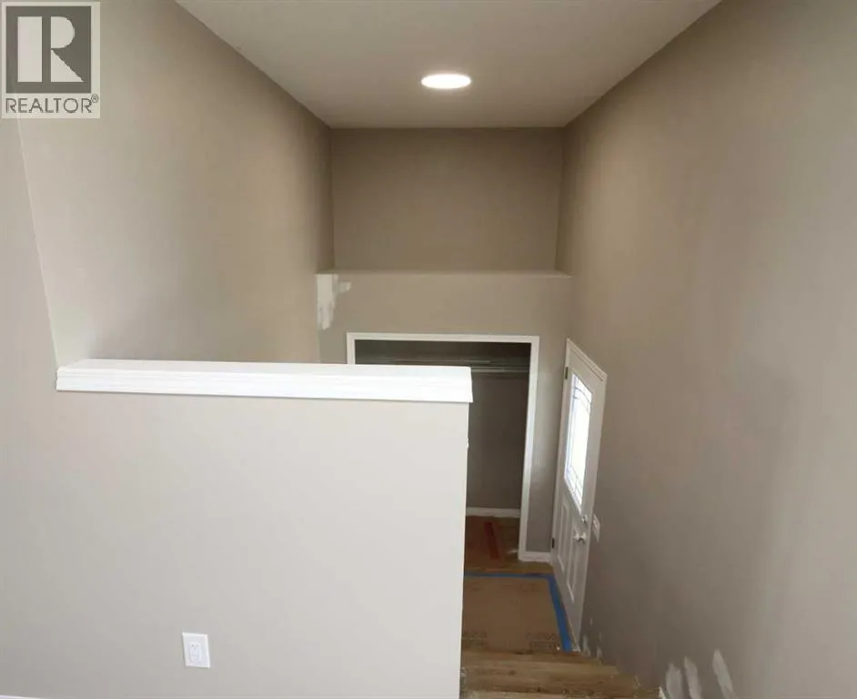 Brand New 1/2 Duplex. Small town living at a very affordable price. This 2 bedroom home has a modern finish, open concept and room to expand. With 1- 4 pce . bathroom upstairs and potential for another on the lower level. Main floor laundry area. The First time buyer or Investor, could make this into a larger cozy living space, by developing the lower level (Nice big windows) There is also a poured concrete pad out back, so the potential to build a garage is already started. This quiet location also boasts a neighborhood Park and Recreation site, pretty much next door. Quick possession possible. (id:27476)