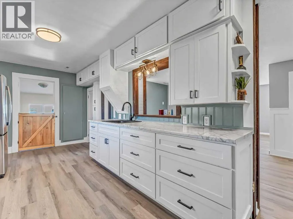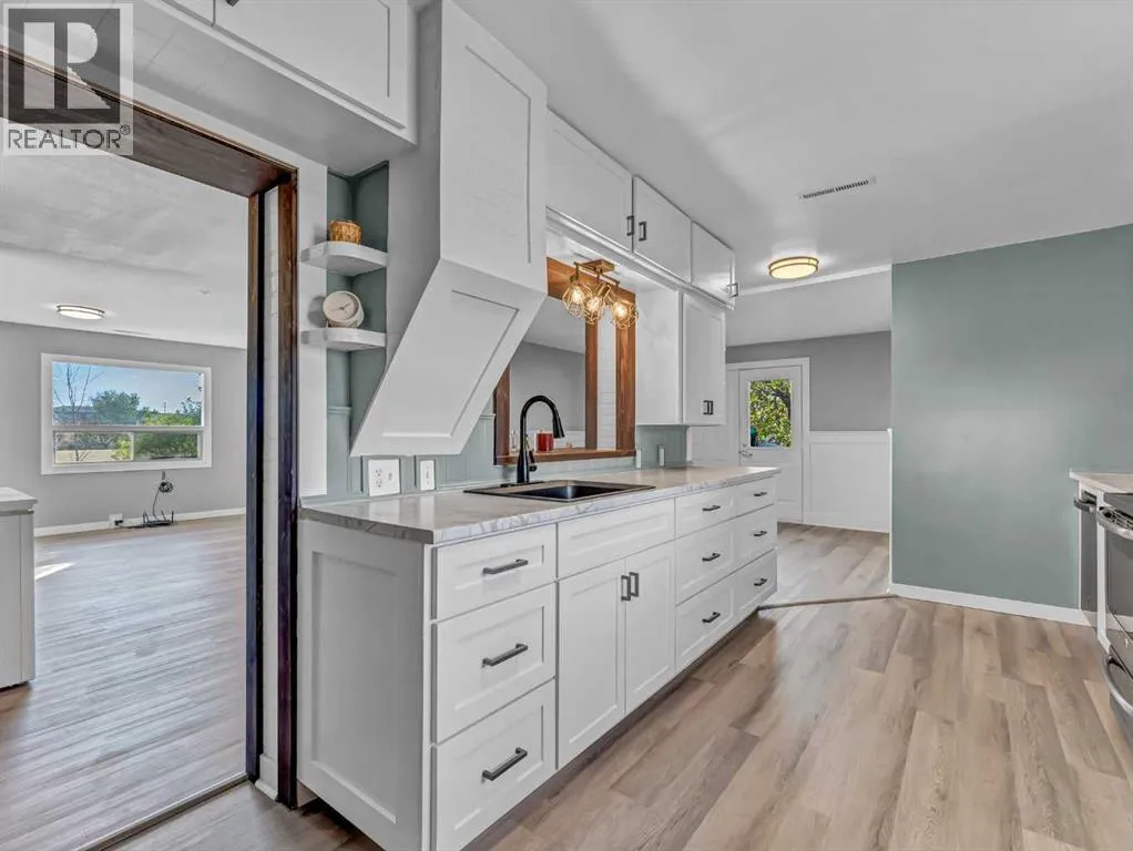 Room to grow on this HUGE DOUBLE LOT ! This Classic 1.5 Storey home has had many upgrades over the last 5 years, including brand new shingles , new kitchen cabinets , new flooring , and an updated bathroom too ! The main floor living space is very bright and open with a combined Living room / Dining space, and a Spacious kitchen at the back. There is a full bathroom, the furnace room, and one bedroom on the main floor as well. The second floor is home to 2 more bedrooms. The basement is mostly undeveloped but has huge potential for further development and/or updating , with an existing bathroom , bedroom , and a large space that could become a family room or additional storage. Outside there are 2 SINGLE GARAGES and a storage shed too. Situated on 2 lots , there is potential for another home or a big shop here. The peaceful hamlet of Irvine boasts an excellent Elementary School and full service Bar ! Just 15-20 minutes from Medicine Hat . (id:27476)