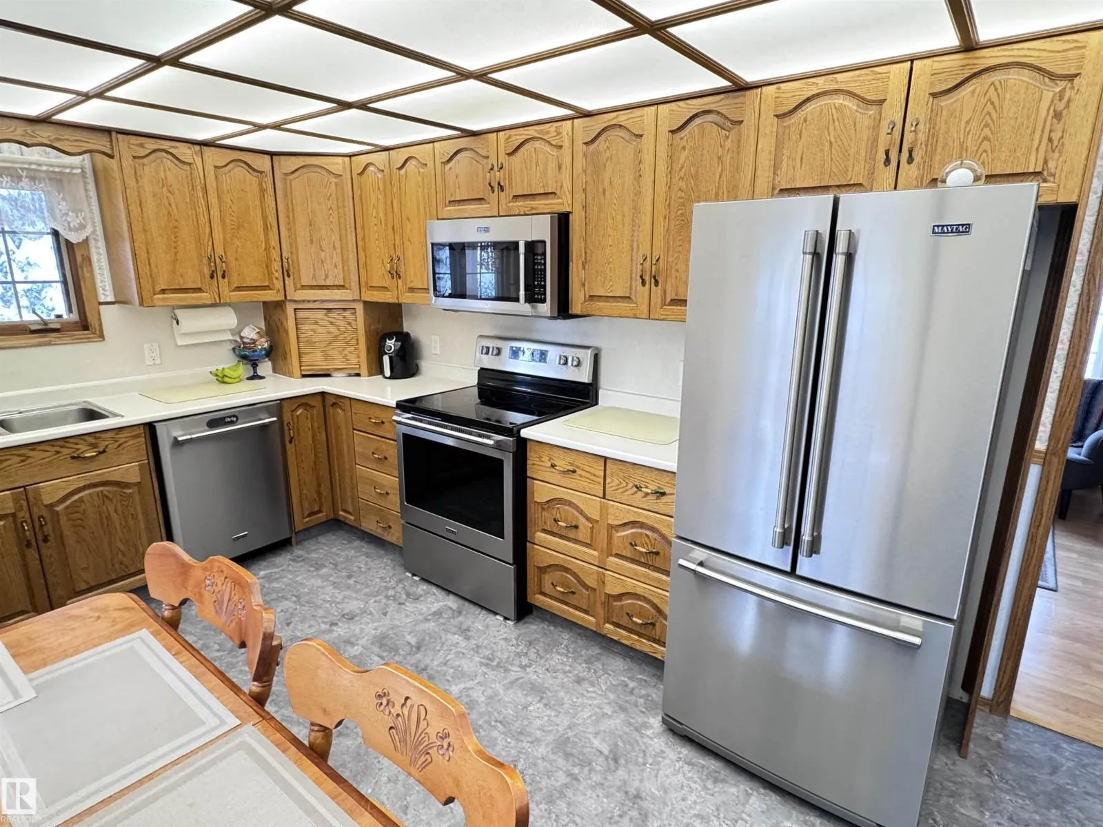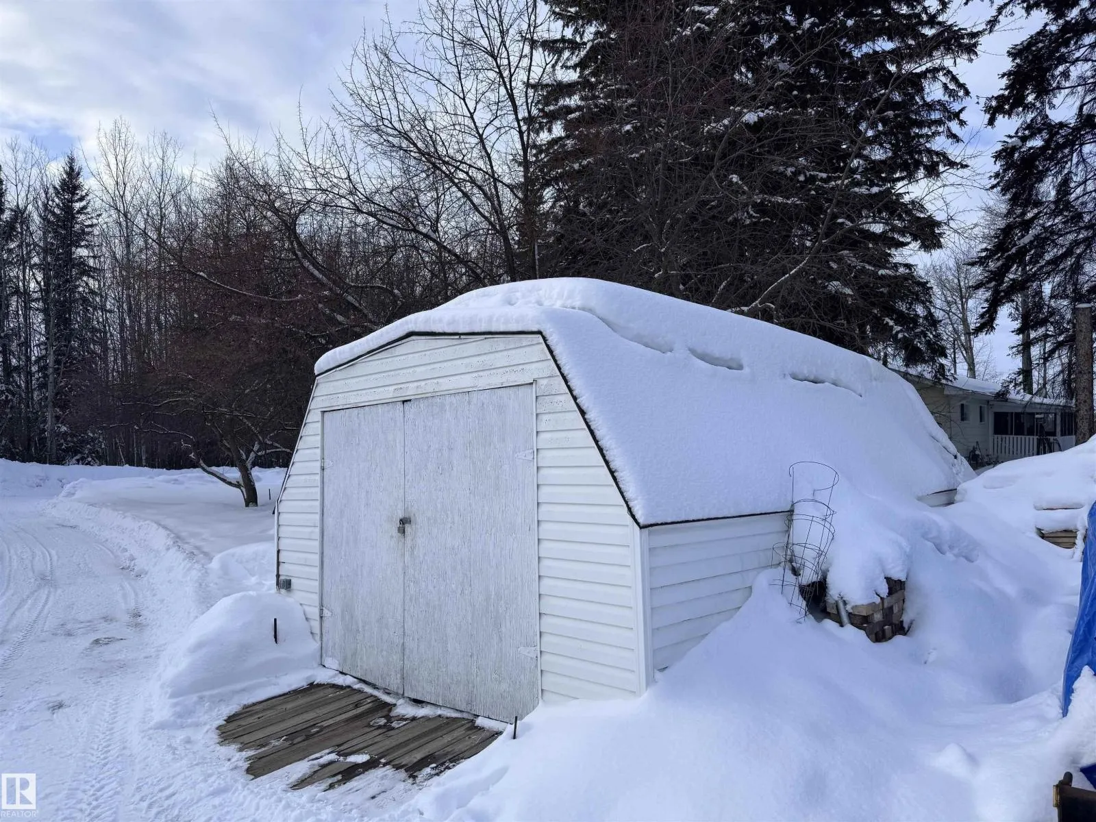 Beautifully maintained 3-bedroom, 1-bath, 1132 sq ft modular home on three mature, landscaped lots in the quiet Hamlet of Jarvie. Enjoy a bright, spacious kitchen with raised-panel oak cabinetry, pull-out pantry, display cabinet, sunshine ceiling and Maytag stainless appliances. Features luxury vinyl plank and laminate flooring, plus a newly renovated 4-pc bath. Outdoors offers garden space, fruit trees, raised stone flower bed and no west-side neighbour. Property includes a 24x26 insulated double garage, central A/C, metal roofs on home and garage, newer shed shingles, two storage sheds, China cabinet, workbenches and two garage remotes. Freezer in garage stays. Just a short walk to the Pembina River. Total lot size approx. 150' x 120'. Only 20 min to Westlock and 80 min to Edmonton. (id:27476)