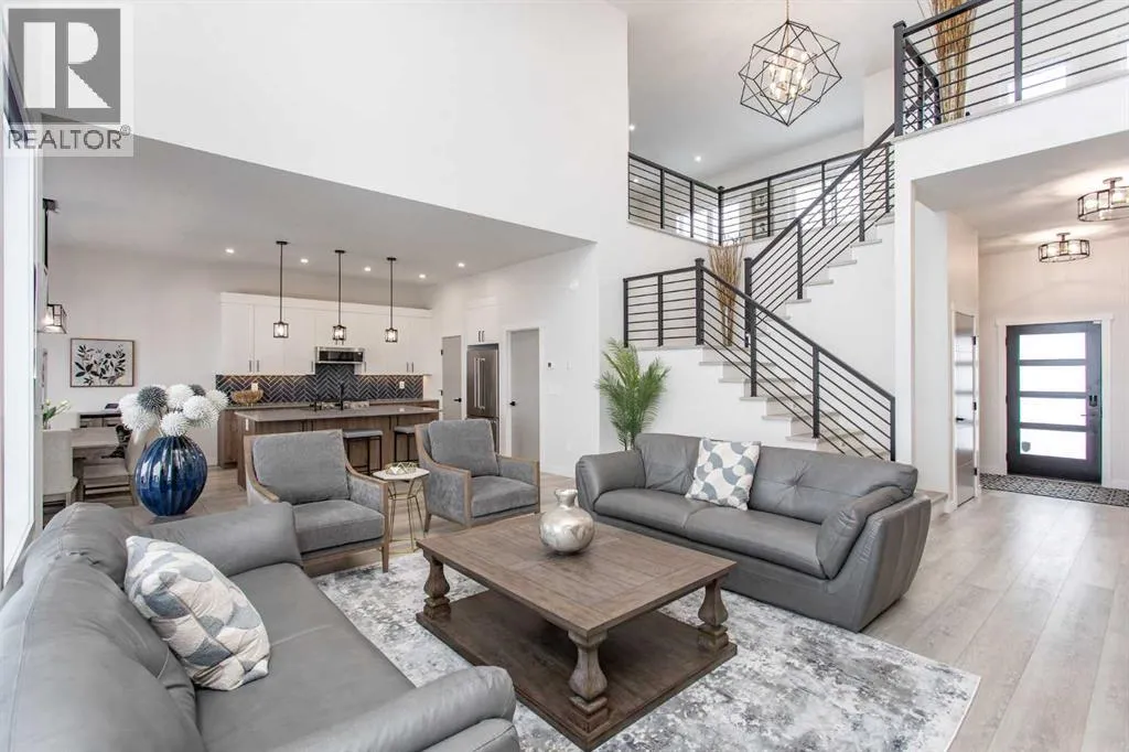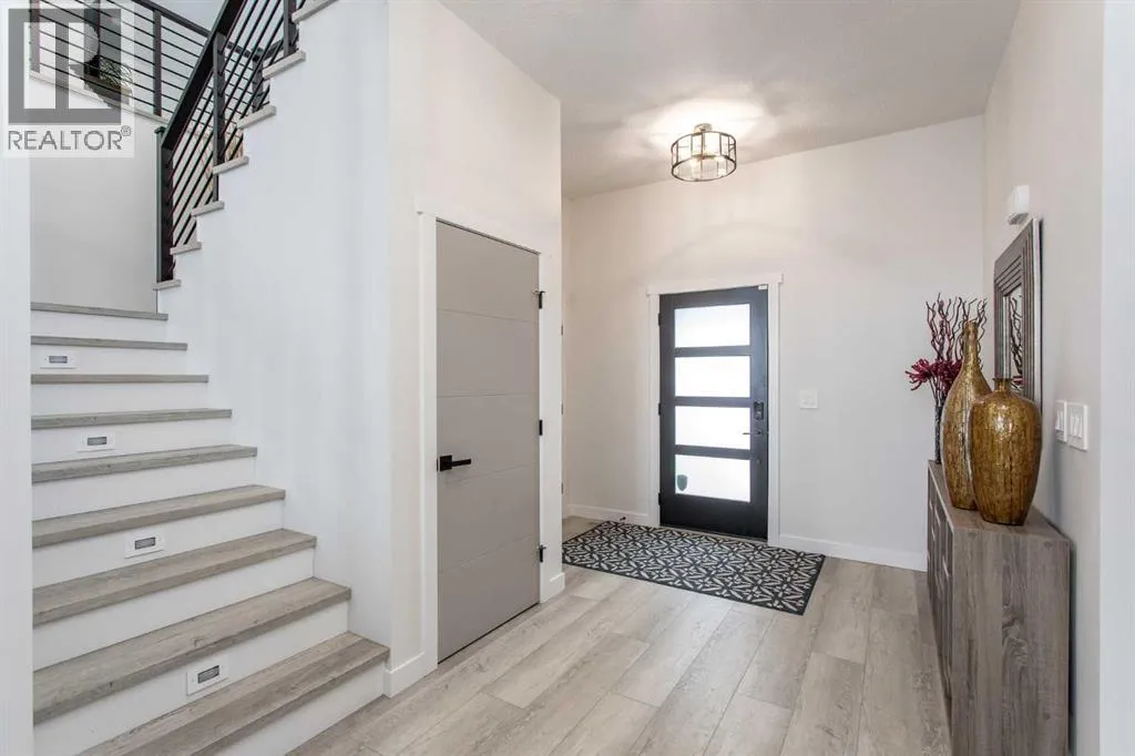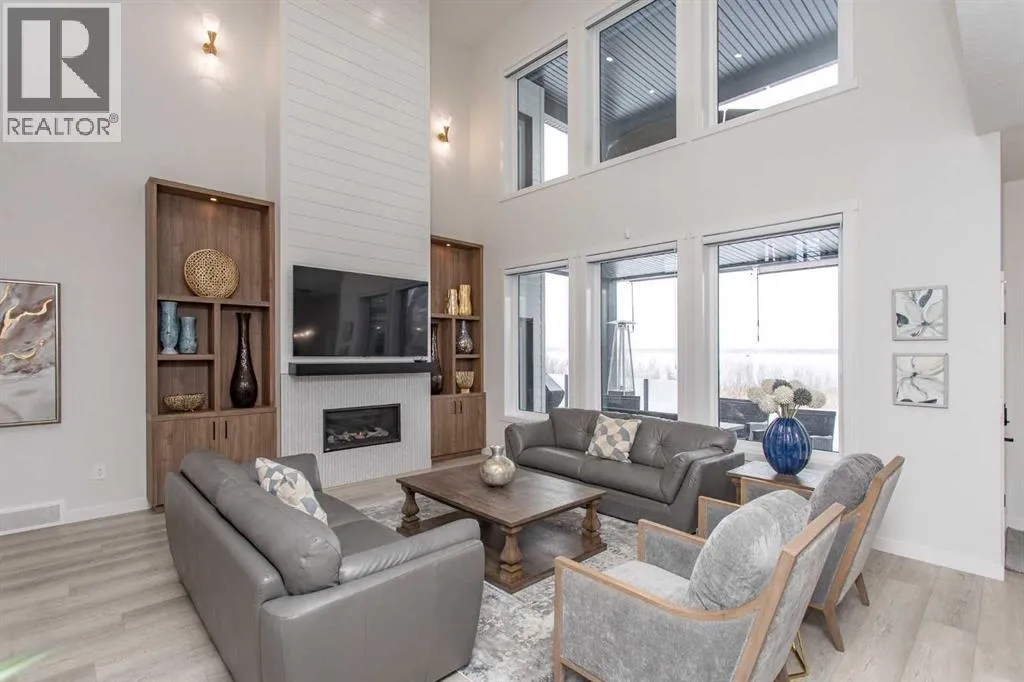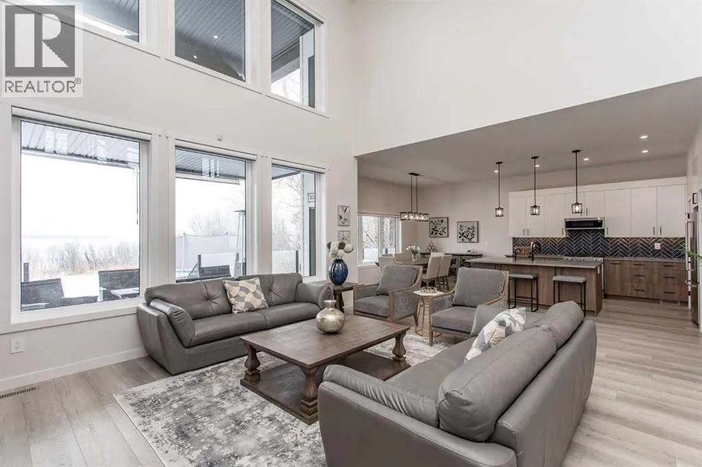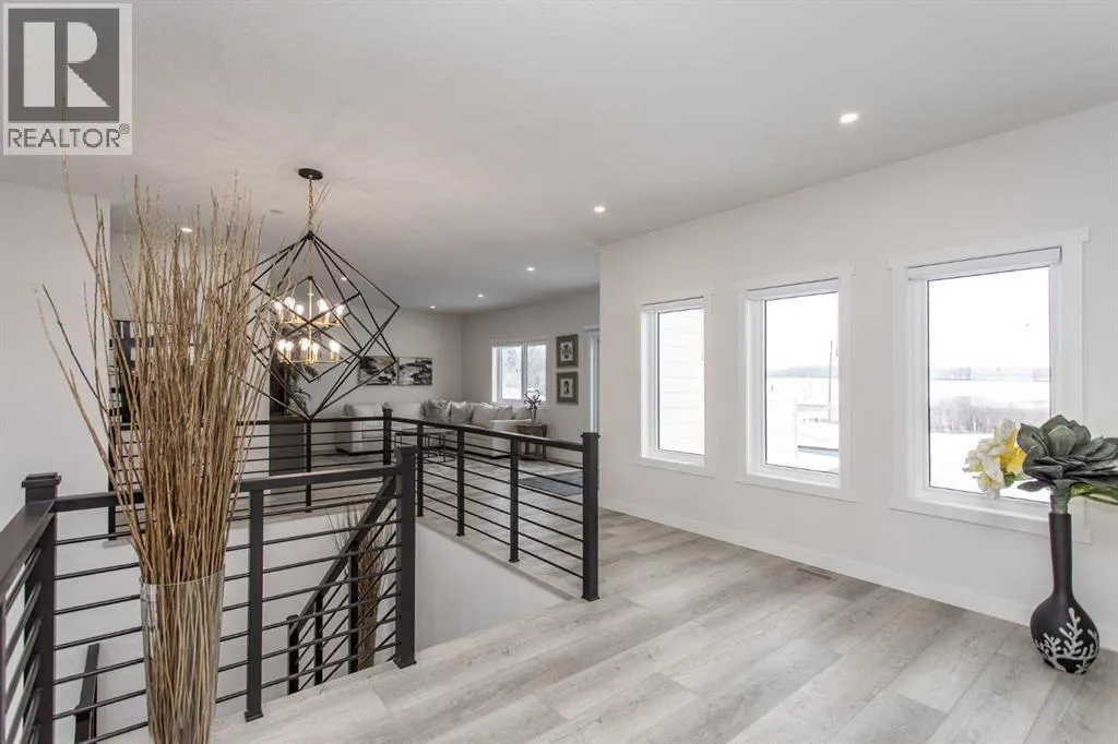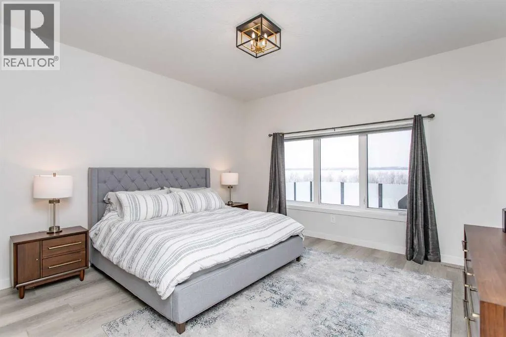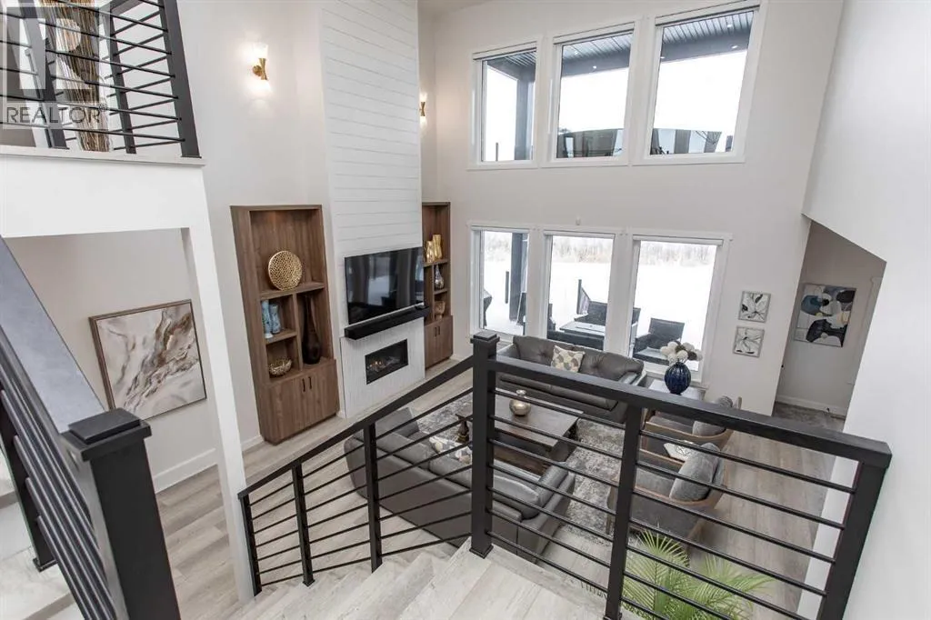 This beautiful LAKEFRONT HOME will leave you breathless! A STUNNING TWO STORY with meticulous details and modern design. Plenty of space for the entire family with 4 bedrooms and 3.5 bathrooms. Just seconds from the town of Sylvan Lake on the sunny-side shores of the sought after summer village of Jarvis Bay. Twin Rose Estates is a new development offering a tranquil setting of sandy shoreline and relaxing sunsets. This beautiful custom build rests beside a natural reserve for added peace and privacy. The crisp white hardy board brings the curb appeal to new heights, along with the extensive landscaping. The double attached garage is fully finished, heated and offers plenty of indoor parking. The grand entrance gives your guests their first glimpse of the gorgeous views. Luxury vinyl plank flooring leads you throughout the entire home. A wall of windows offers an airy feel and loads of natural light. This open floor plan lends itself to entertaining with elegance and functionality. The living room showcases a gorgeous gas fireplace flanked by beautiful built-in shelving. The modern kitchen features two tone custom cabinetry draped in exquisite quartz countertops. The stainless steel appliances include a gas stove and beverage fridge. Dining will be a delight surrounded with the serene setting. Step thru the garden door to gain access to the expansive lower deck, bordered with seamless glass railings. This area is perfect for gathering, partially covered seating with cozy overhead heaters, along with an inviting sunken hot tub! The wide staircase welcomes you down to the large backyard and sandy lakefront. Your grass will stay green and healthy with the help of the underground sprinkler system, fed endlessly by your personal well. A short stroll leads you to the shared dock and your BOAT SLIP! This main floor also features the spacious primary suite, your personal retreat, with private entry from the deck. The spa-like ensuite boasts a gorgeous glass shower, double v anities, generous walk-in closet and easy access to the large laundry room. The staircase to the second level makes a statement and is highlighted with a fantastic light fixture. This spacious second floor features a cozy family room with access to the upper front patio, a perfect location for your morning coffee with amazing views. A second primary bedroom boasts a 4-piece ensuite, walk-in closet and access to the upper deck. Two generous bedrooms come complete with a Jack-n-Jill bathroom and walk-in closets. The west bedroom also has access to the back patio. Additional upgrades include Reverse Osmosis System, an on-demand boiler, security system, and custom electric window treatments. Lakefront Living is a life style like no other. Treat yourself and tour this pristine property today! (id:27476)