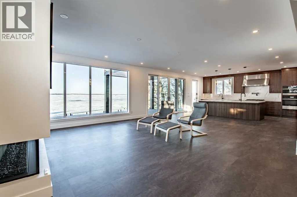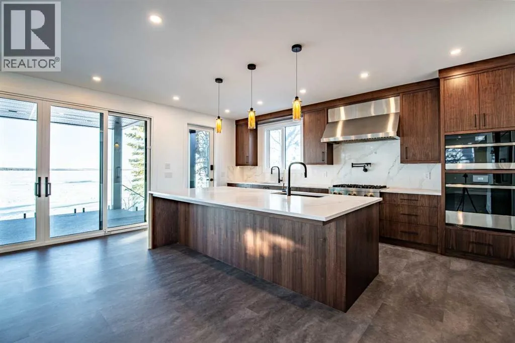 Welcome to 158 Jarvis Bay Drive, an extraordinary brand-new luxury waterfront residence offering the ultimate in lakefront living, just moments by foot or boat from the heart of vibrant Sylvan Lake. Perfectly positioned on a west-facing, water-level lot, this property delivers golden sunset views, a sandy beach shoreline, and effortless access to the waterâideal for your private dock and boat lifts. Spanning an impressive 5,359 sq. ft. of fully developed living space, this home has been meticulously designed for refined daily living and unforgettable large-scale entertaining. The exterior makes a bold architectural statement with Hardie flat panel siding, an exposed aggregate driveway, Gemstone smart lighting, and a walkout lakeside patio framed by professionally engineered retaining walls on both sides, ensuring privacy and long-term durability. A discreet attached storage shed keeps lake toys organized, while the outdoor bathroom and shower provide the perfect rinse-off after a day on the water.Enjoy seamless indoor-outdoor living across three expansive sundecks, all finished with clear fascia-mounted glass railings for uninterrupted lake views from every level. Inside, the home offers five generous bedrooms and six exquisitely finished bathrooms, each showcasing custom tile work, exclusive cabinetry, and striking quartz surfaces. The gourmet kitchen is a true culinary masterpieceâequipped with a six-burner gas range, built-in conventional and steam ovens, prep and wash sinks, two dishwashers, and a stunning waterfall island, all wrapped in handcrafted solid walnut cabinetry. A built-in coffee station elevates your mornings, while a double-door Sub-Zero refrigerator and stand-up pantry freezers ensure exceptional storage for entertaining. The top floor is crowned by a luxurious primary retreat with a spa-inspired ensuite, breathtaking lake views, and a private balcony. Two additional bedrooms each feature their own private ensuites, alongside an oversized theatre and games room and a dedicated laundry room. The walkout basement is an entertainerâs dreamâfeaturing a custom full-service bar, expansive TV lounge with space for a pool table, and a pass-through patio door to the lake. A custom serving window opens directly to the outdoor patio, creating the perfect flow for summer gatherings. Two additional bedrooms, a full bathroom, and a convenient washer/dryer complete this level. Finishing the home is a heated, epoxy-coated triple garage with extra-tall ceilings designed to accommodate a vehicle lift, plus Sunshine Doors for enhanced security of vehicles and watercraft year-round. This brand-new home is protected by Builder Warranty and Alberta New Home Warranty, offering complete peace of mind as you step into a lifestyle defined by luxury, comfort, and lakefront elegance. (id:27476)