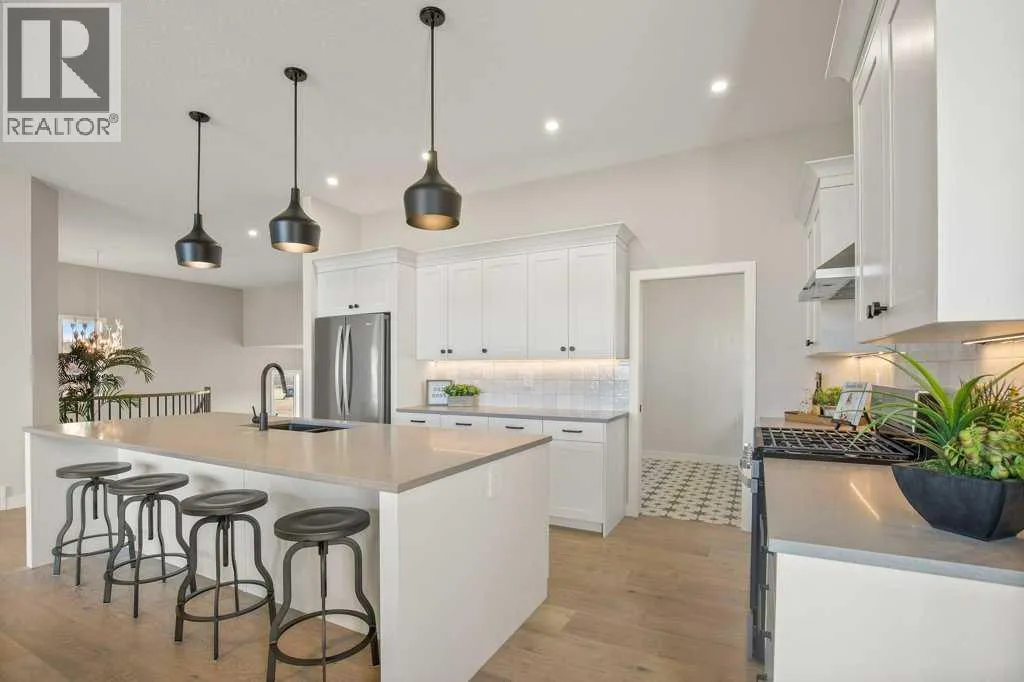 Lakefront is Calling! Welcome to this beautiful, brand new 1,767 ft ² (3,079 ft² fully developed) bi-level custom lakefront home nestled on a .25 Acre fully landscaped lot in the new exclusive Twin Rose neighborhood, in Jarvis Bay, on the sunny side of the shores of Sylvan Lake. Now is your opportunity to live on the lake!This charming community offers a natural setting with manicured walkways leading down to a beautiful private dock featuring your own boat slip. Imagine just a short walk to your boat for fishing, water sports, swimming, or just playing at your beautiful private beach.This home features a fantastic, functional floor plan with an abundance of upgrades throughout. The handsome hardy board exterior is adorned with timber frame beams and stone accents, providing that perfect lake feel. The unique triple car garage offers plenty of space for your cars and toys, featuring a 12 ft. ceiling allowing for a car lift or additional storage.Greet guests at your door beneath the covered veranda leading them to the spacious entry. The stylish, curved stairway precedes the airy, open upper floor plan. You will be captivated by the main living area, with a vaulted ceiling and stunning view through the wall of sliding glass doors. The kitchen features modern cabinetry with many enhancements, an expansive island complete with quartz countertops, and top-of-the-line appliances. Enter through your garage and enjoy easy access through the butlerâs pantry/laundry room/coffee center. The great room provides a cozy space for relaxing or entertaining in front of the beautiful gas fireplace, while taking in the views of Sylvan Lake. The dining room anchors the space with ample seating for get-togethers with family and friends. Dine inside or step out onto the expansive 450 ft² deck with glass railings and soak up the warmth of the west-facing sunshine. Sip a glass of wine while appreciating the famous Sylvan sunsets. At the end of the day, escape to the spacious main floor master suite. Boasting a walk-through closet and a luxurious 5-piece ensuite with his and hers vanities and sinks next to the gorgeous glass-enclosed shower. The curved staircase leads you down to the lower level. The large family room offers a fabulous space for hanging out with friends or cuddling up for movie nights. Entertain with ease at your wet bar, which compliments an eye-catching sit-up island and wine cellar. Enjoy the additional laundry appliances on this level for the convenience of your company or family members. In addition, there are two bedrooms both featuring their own 4-piece ensuite! The fully landscaped lot features an underground sprinkler system, allowing you to enjoy your lake property with less upkeep. Time is tickingâ¦take a look while Twin Rose lots are still available. Other lots with varying price points available. (id:27476)