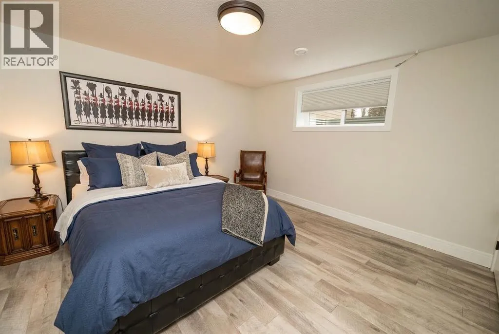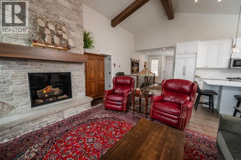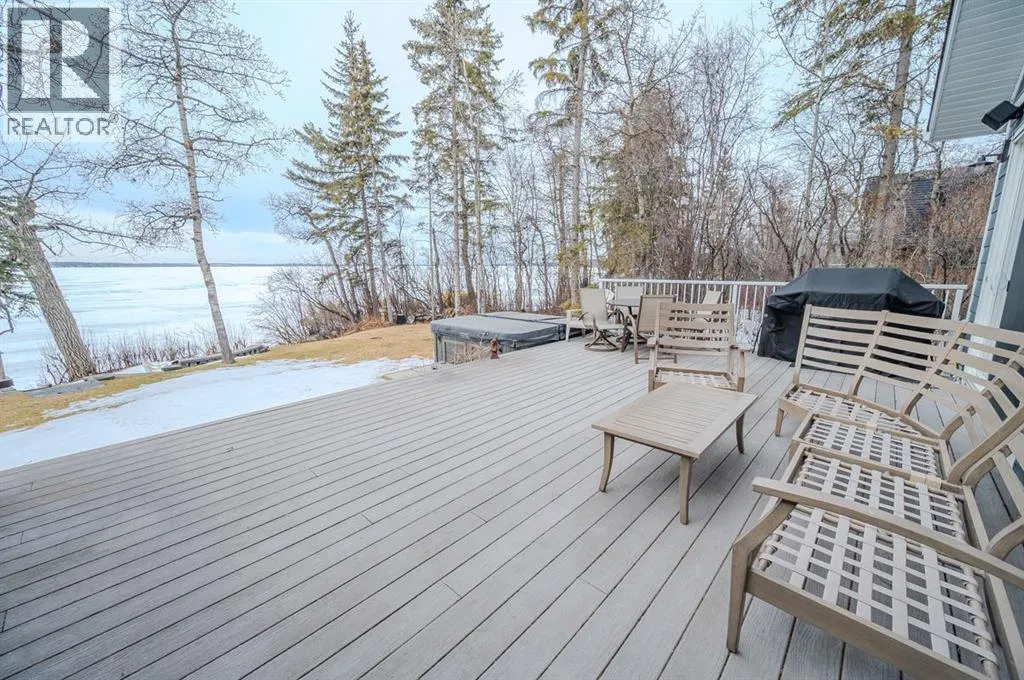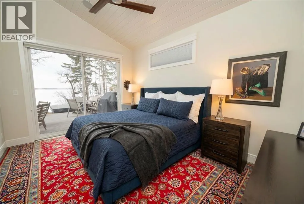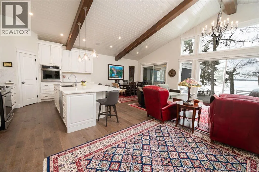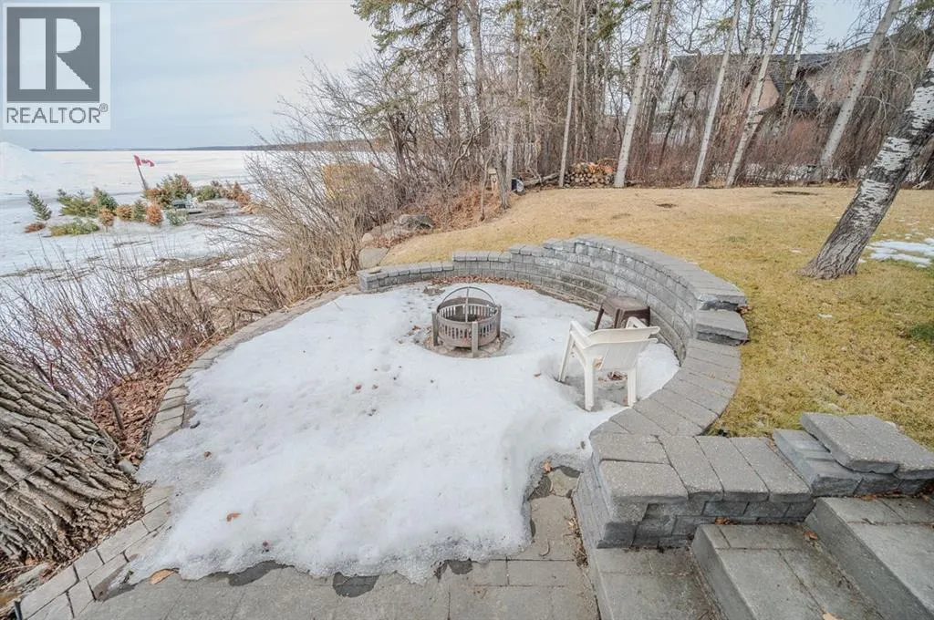 10/10 LAKEFRONT ON SYLVAN LAKE! Stunning from tip to tail, this custom-built Larkaun bungalow is sure to impress the most discerning buyer. Beautiful street appeal welcomes you to the property, with oversized double attached garage with an overhead door that can fit your boat! The composite siding and stone accents add character, as a covered front veranda welcomes you into the property. As you enter the large main foyer, you will find yourself in awe as you look through the main living area to unencumbered views of the lake via the west-facing wall of windows! Vaulted viewings with ship-lap and custom wood beam finishing adds to that cottage feel, as does the floor to ceiling custom gas fireplace with stone masonry accented by a centre room chandelier. The well appointed kitchen features a huge centre island, custom appliances and corner pantry.off the spacious dining room you can enjoy the evening sunsets or drinks with friends in a private enclosed patio with overhead heater. The primary bedroom also offers patio doors overlooking the lake - you will feel immersed in nature as you look out into the private treed yard, surrounded by natural foliage and tucked away from the outside world! The primary ensuite offers a large walk-in steam shower plus double vanity. The main level is completed with a large laundry room, and an additional bedroom with attached full bath. The basement will surprise you, with a massive rec room, 3 more oversized bedrooms with ample storage space, and an additional full bathroom. The lakefront yard is completed with a composite deck, included hot tub, stone fireplace sitting area and a lakefront deck with views overlooking the lake! Locate in the Summer Village of Jarvis Bay - a highly sought after community with west-facing views over Sylvan Lake, offering stunning sunsets, convenient lake access and private beachfront while located only a few minutes drive to the town and all amenities. An unique opportunity seldom available, this one d eserves consideration from anyone looking for that refined lake lifestyle. (id:27476)