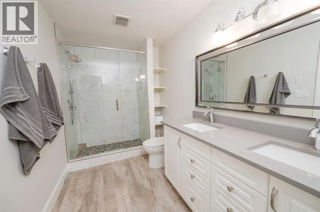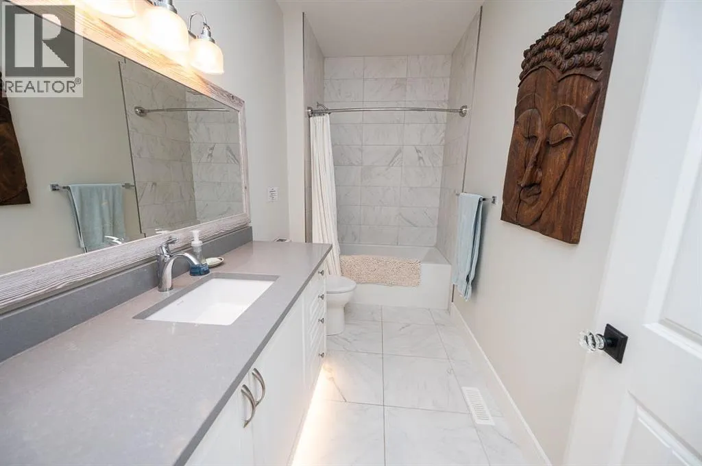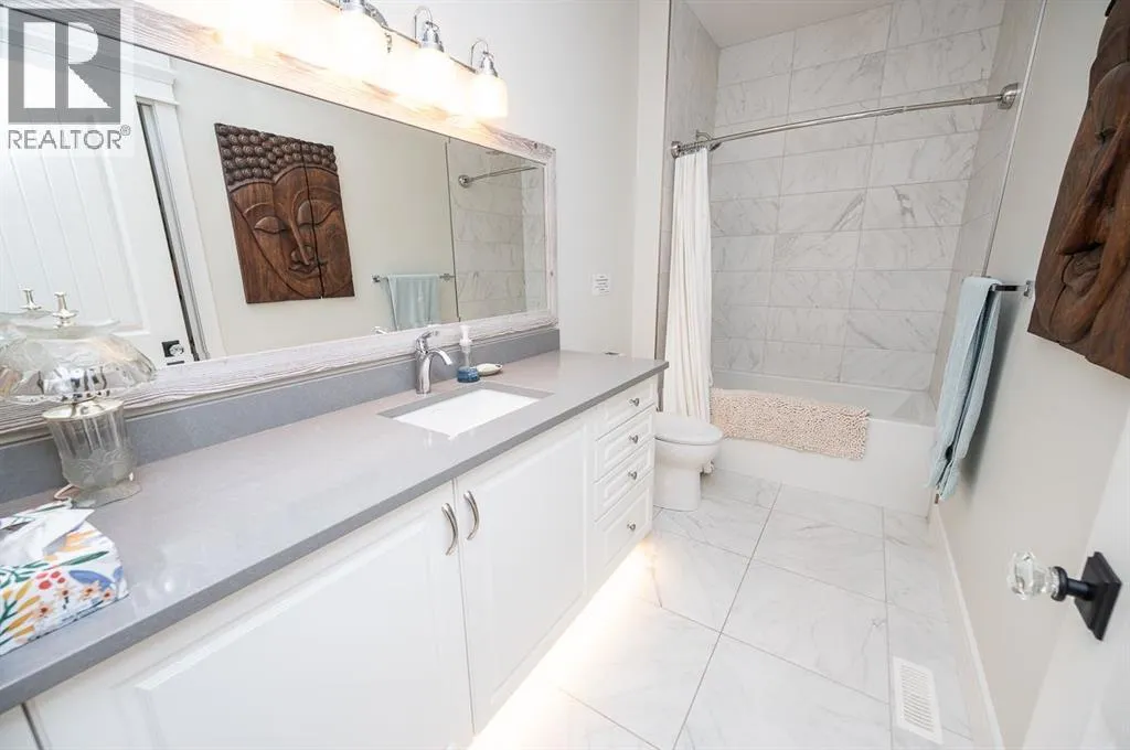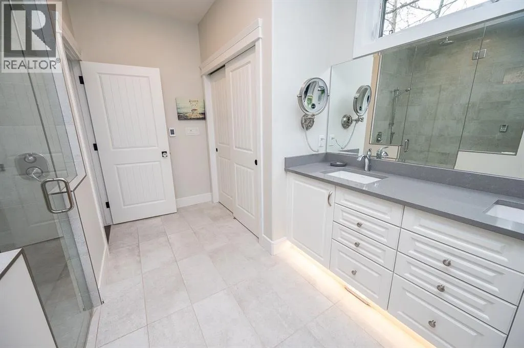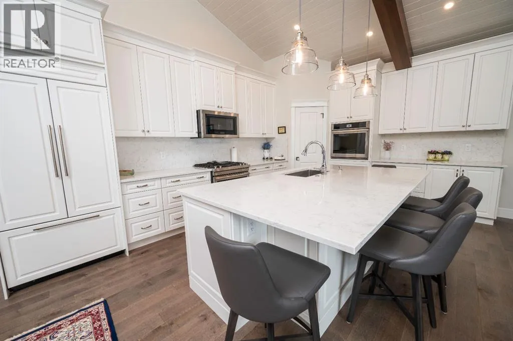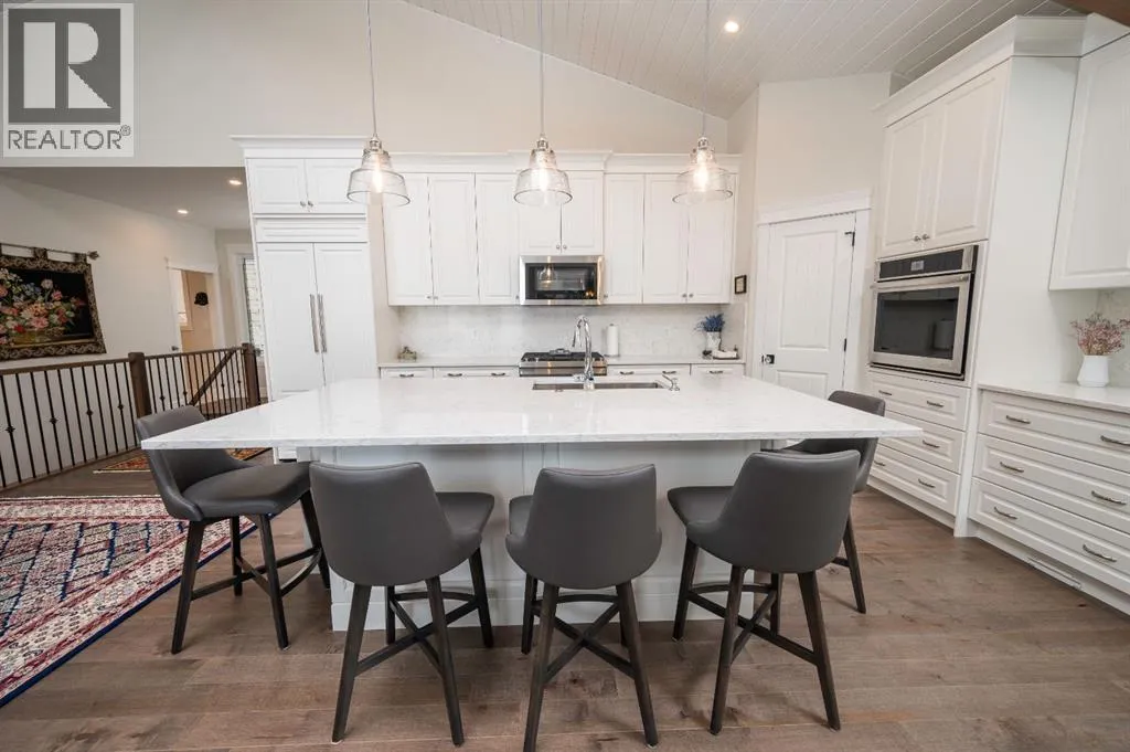 10/10 LAKEFRONT ON SYLVAN LAKE! Stunning from tip to tail, this custom-built Larkaun bungalow is sure to impress the most discerning buyer. Beautiful street appeal welcomes you to the property, with oversized double attached garage with an overhead door that can fit your boat! The composite siding and stone accents add character, as a covered front veranda welcomes you into the property. As you enter the large main foyer, you will find yourself in awe as you look through the main living area to unencumbered views of the lake via the west-facing wall of windows! Vaulted viewings with ship-lap and custom wood beam finishing adds to that cottage feel, as does the floor to ceiling custom gas fireplace with stone masonry accented by a centre room chandelier. The well appointed kitchen features a huge centre island, custom appliances and corner pantry.off the spacious dining room you can enjoy the evening sunsets or drinks with friends in a private enclosed patio with overhead heater. The primary bedroom also offers patio doors overlooking the lake - you will feel immersed in nature as you look out into the private treed yard, surrounded by natural foliage and tucked away from the outside world! The primary ensuite offers a large walk-in steam shower plus double vanity. The main level is completed with a large laundry room, and an additional bedroom with attached full bath. The basement will surprise you, with a massive rec room, 3 more oversized bedrooms with ample storage space, and an additional full bathroom. The lakefront yard is completed with a composite deck, included hot tub, stone fireplace sitting area and a lakefront deck with views overlooking the lake! Locate in the Summer Village of Jarvis Bay - a highly sought after community with west-facing views over Sylvan Lake, offering stunning sunsets, convenient lake access and private beachfront while located only a few minutes drive to the town and all amenities. An unique opportunity seldom available, this one d eserves consideration from anyone looking for that refined lake lifestyle. (id:27476)
