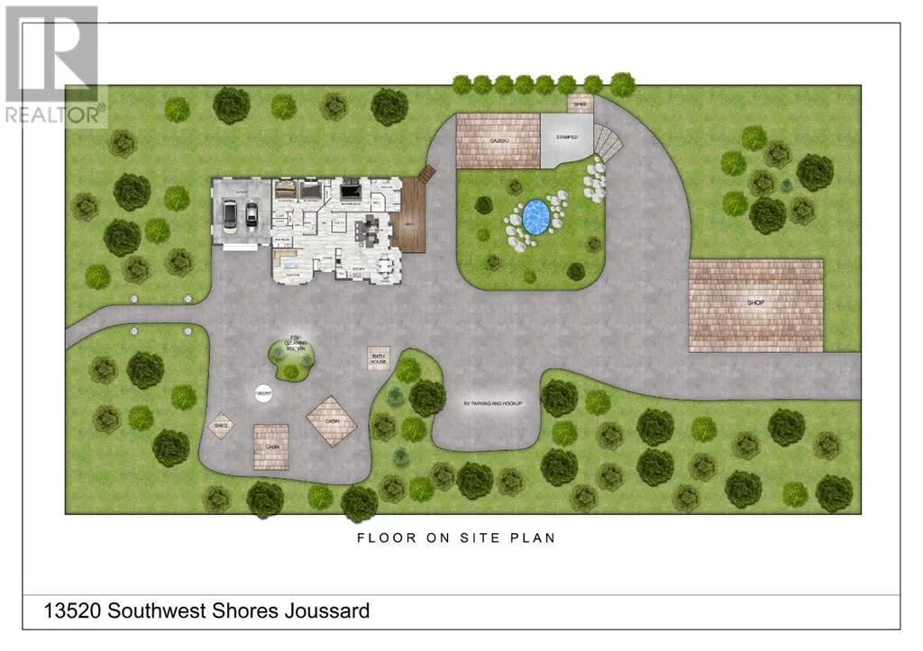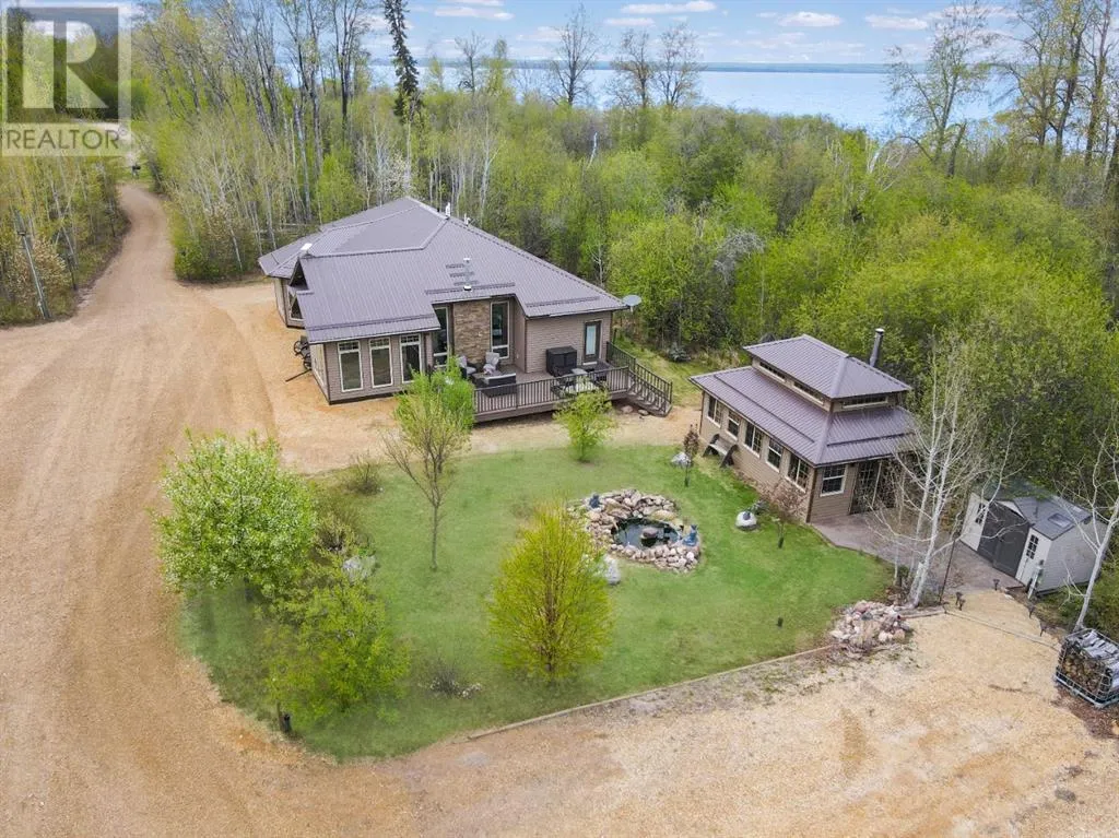 Escape to your private retreat on 3 acres of pristine lakeside property in Southwest Shores Estates, Joussard, AB. This stunning 3-bedroom, 2-bathroom air-conditioned home boasts floor-to-ceiling windows throughout the open-concept kitchen, dining, and living areas, flooding the space with natural light. The south-facing sunroom/family room offers a cozy spot to relax while taking in the serene surroundings. The custom kitchen features quartz countertops, a central island with stools, and high-end cabinetry & black stainless steel appliances, perfect for entertaining. Step outside onto the east-facing deck with maintenance-free composite decking, ideal for morning coffee with a view.The property includes a 16â x 24â custom wood-heated gazebo on a stamped concrete pad, perfect for year-round enjoyment. For the hobbyist or tradesperson, the 40â x 64â heated shop is a dream come true, complete with infrared overhead heat, a hoist, a 3-piece washroom, washer/dryer setup, metal-clad walls and ceiling, 220-amp plug-ins, and two oversized garage doors (12â and 10â high).Additional amenities include two guest cabins (one with a 2-piece washroom, both with kitchen facilities), an enclosed 3-piece outdoor bathroom with running water, and four full-service RV parking spots.Nestled among trees for ultimate privacy, Southwest Shores Estates offers a private playground, beach access, and the option to place a boat lift, keeping your watercraft ready for adventure all summer long. Whether you're seeking a peaceful getaway and/or an entertainerâs paradise, this property has it all. Donât miss your chance to own a slice of lakeside luxury! Click Video Link to see more. (id:27476)