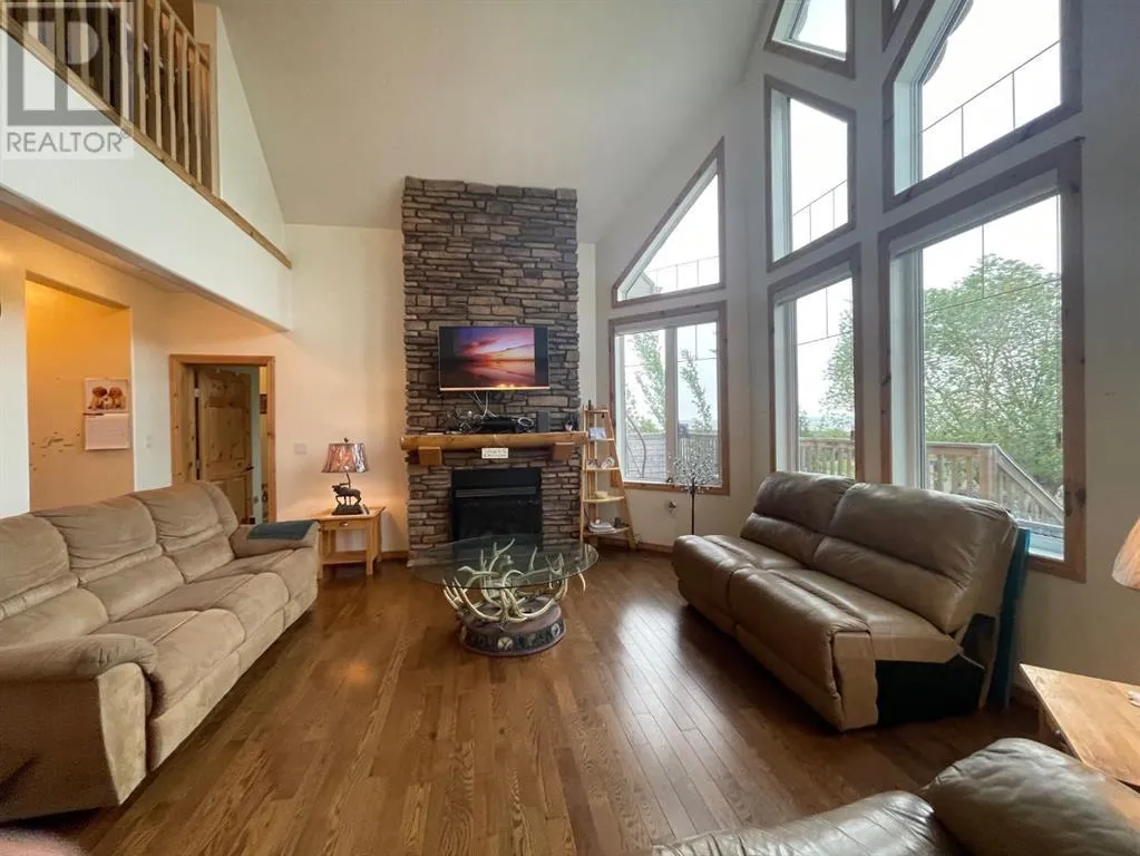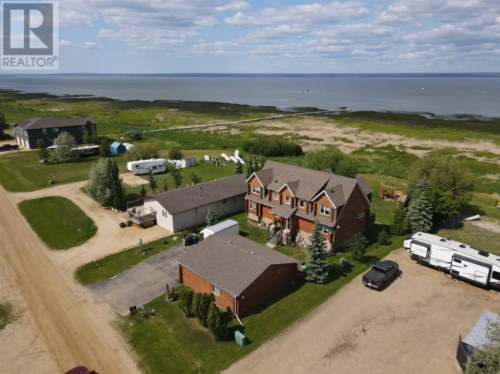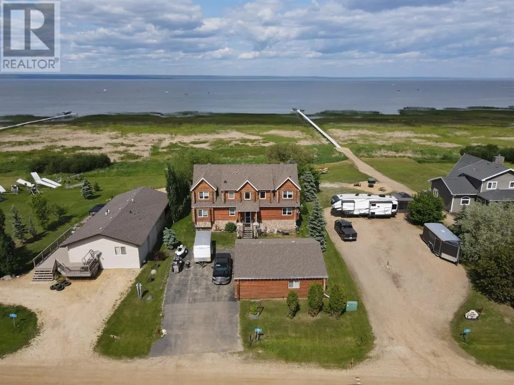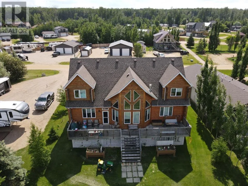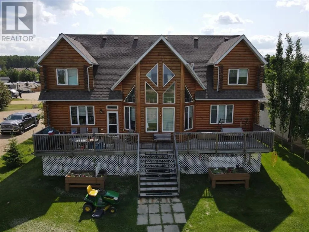Nestled on the serene South Shores of Lesser Slave Lake, this exquisite Lakefront Log Home offers 2,990 square feet of luxurious living space with breathtaking views. Featuring 5 bedrooms and 4 bathrooms, this home is designed for both comfort and elegance. This stunning main-floor primary retreat features his and her closets flanking the entrance to the luxurious 5-piece ensuite. Enjoy breathtaking, unobstructed views of the lakeâa perfect blend of elegance and natural beauty. The vaulted living room ceiling enhances the open-concept space, while expansive windows showcase stunning lake vistas. The gourmet kitchen boasts maple cabinets, stone countertops, and high-end Heartland Appliances: (antique-style stove and fridge). A butlerâs pantry off the kitchen includes full laundry facilities, a sink, ample storage, and a full-size window for natural light. Rich hardwood floors flow through the living areas, complemented by a striking stone fireplace facade. The fireplace has two faces, one for the bedroom and one that is the centerpeice for the living area. The fully developed basement offers versatility with a wet bar (complete with cabinets and sink) and space for a pool table, a home theatre, and more, along with a large 3-piece bathroom. Step outside to the 50-foot main-level deck, perfect for soaking in the panoramic lake views. A detached heated garage with a 3-piece washroom. A built-in fire pit and pergola with swinging chairs create an idyllic outdoor retreat, where you can experience lakeside luxury in this crafted log home, where every detail is designed for relaxation and entertaining. (id:27476)