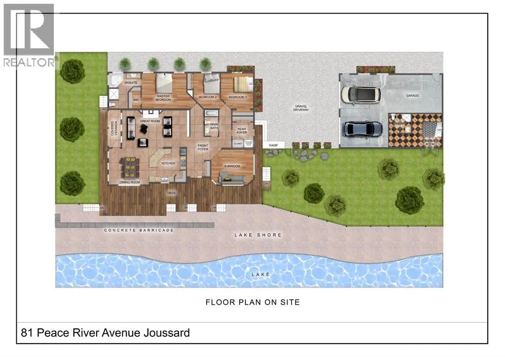 A cottage in Joussard, Alberta, inviting you to enjoy a year-round lakefront lifestyle. This 2009-built home is perfectly designed for lakeside living, offering both comfort and incredible functionality. The main house features three bedrooms and two bathrooms, but the standout feature is the expansive, heated 28' x 40' garage. This incredible space includes a versatile bonus bedroom and bathroom, accessible through French doors to its own fenced, private yard with direct access to the lakeâideal for guests, extended family, or a home business. With room for a pontoon boat or RV, the garage is a dream come true for outdoor enthusiasts. A multi-level, wrap-around deck with glass panels provides breathtaking views of the lake, with stairs leading down to a rocky/sandy beach. The yard is thoughtfully laid out with multiple fenced areas, including the one connected to the garage bedroom for ultimate privacy, and another east-facing fenced yard wrapping around to the front of the home. Enjoy the multiple raised south-facing gardens placed strategically around the driveway and front of the home.Inside, the home is oriented to maximize the stunning lake views. An east-facing entrance serves as a practical mudroom with a stacking washer/dryer, while the sunroom, living room, and open-concept kitchen/dining area all overlook the water. The living room is warmed by a gas fireplace and features custom bookshelves, creating a cozy atmosphere. The primary bedroom is , complete with a walk-in closet and an ensuite boasting a soaking tub and a stand-up shower. To book your personalized viewing call, email or text your Realtor today! (id:27476)