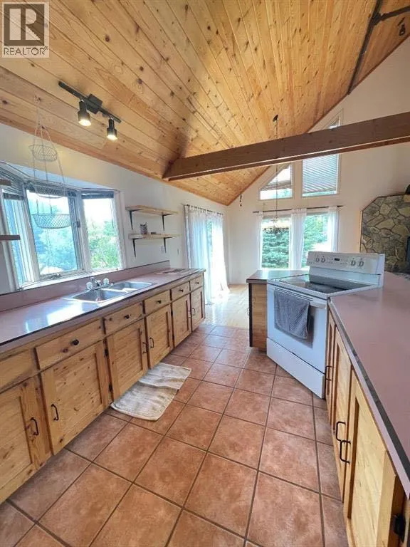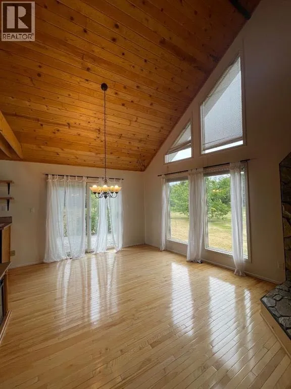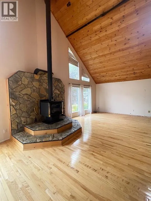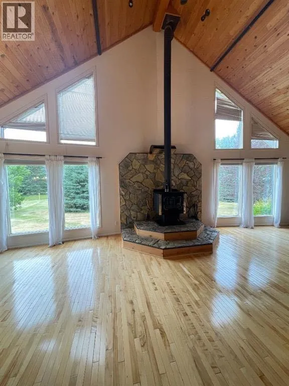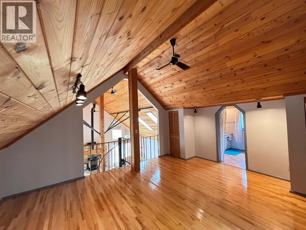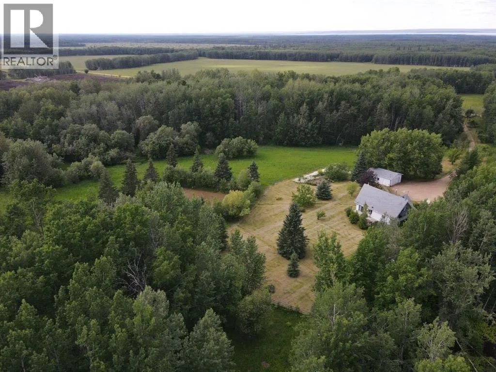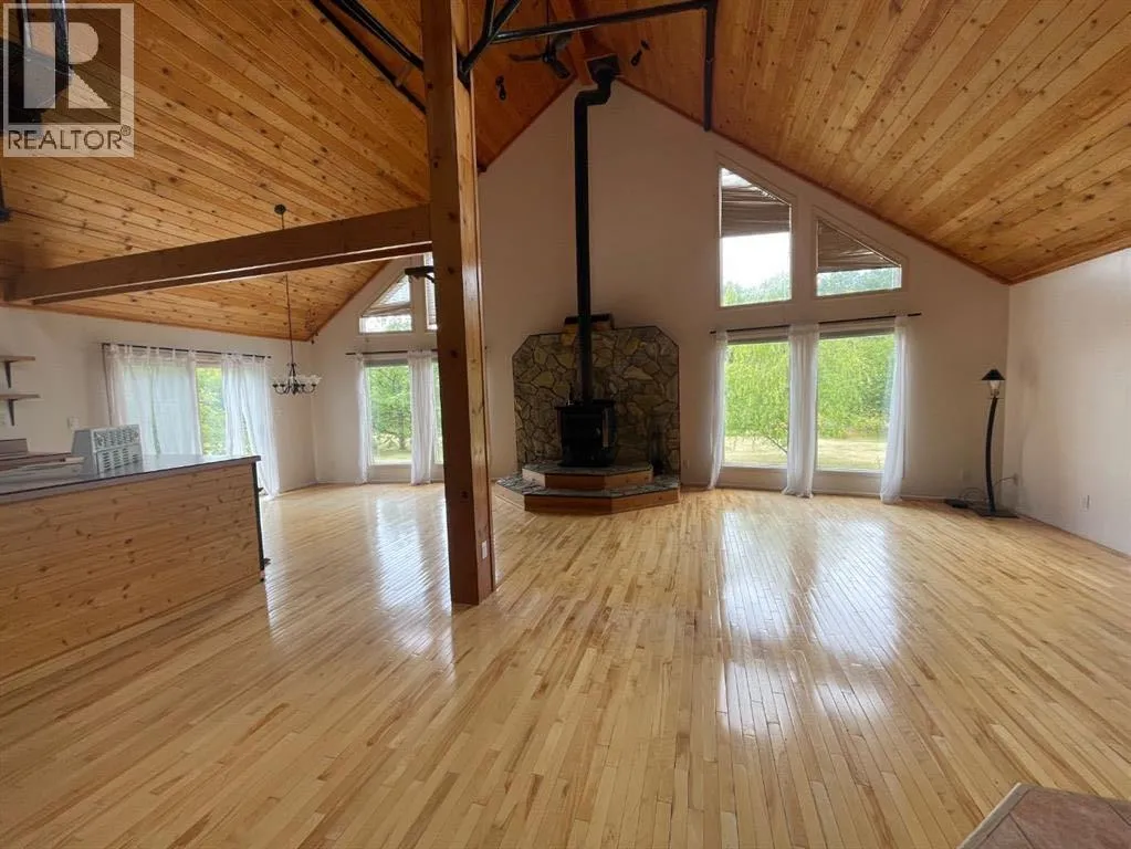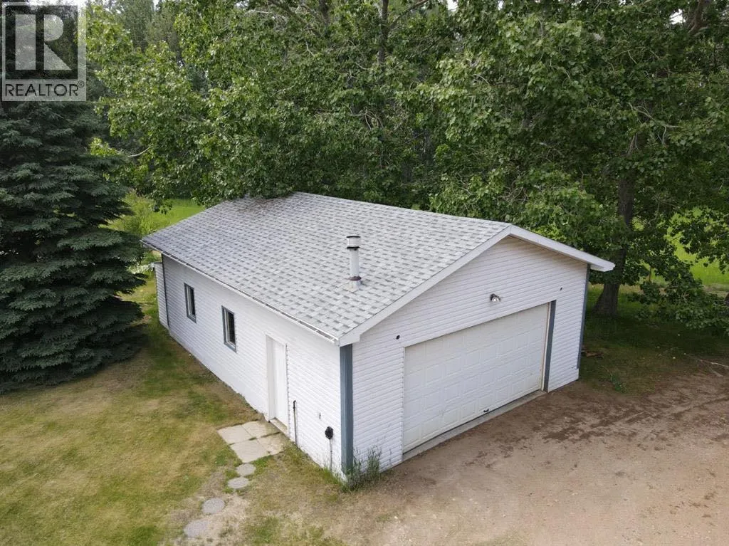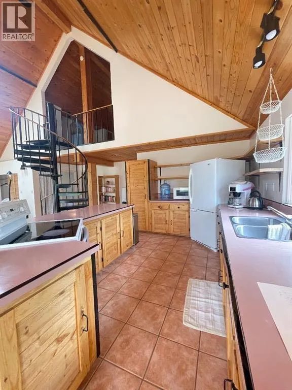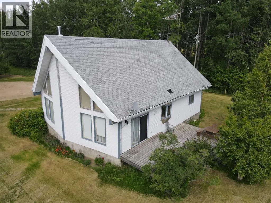 Tucked away in a natural setting, this A-frame home is the perfect blend of tranquility and possibility. The main level offers an open-concept layout where the bright living area, kitchen, and dining space flow seamlessly together, accompanied by two bedrooms and a spacious bathroom featuring a sleek black soaking tub set before a picture window. Ascend the spiral staircase to discover a private primary suite, complete with an ensuite bath and a balcony that overlooks the serene landscape below. An unfinished basement provides a blank canvasâready to become a family room, extra bedrooms, or a custom space tailored to your needs. Outside, a detached heated double garage offers ample storage or workshop potential, while the land itself is a true sanctuary. This lush, sheltered ecosystem nurtures native plants and trees, creating a natural windbreak and water source that nature enthusiasts will adore. Whether you seek a peaceful countryside home, a recreational getaway, or a hobby farm, this property delivers an extraordinary combination of comfort, space, and natural beauty. Call today to book your viewing: immediate possesssion available. (id:27476)