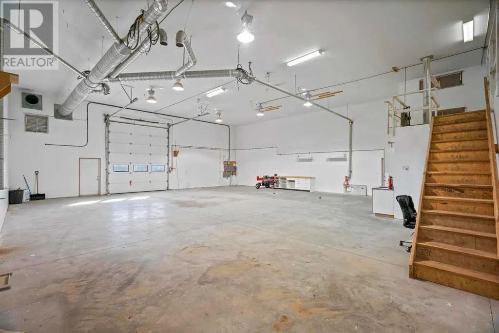 Introducing an opportunity to acquire a property in Killam that offers a well appointed shop, show room space, office, storage, and plenty of graveled yard space. The building is wood framed on a concrete foundation with maintenance free steel cladding on the walls and roof. New windows for the showroom are energy efficient and allow plenty of light into the space. The shop interior is fully finished, with in-floor heat, has a 17'-4" ceiling height, a 12'x14' overhead door, and 532 sq.ft. of mezzanine space. There is over 375 sq.ft. of freshly painted show room space, that could also be used for storage or additional offices. There is already a front office, upper office/board room, and a 12'-2 x 23'-5" main floor space off the shop that could be used for storage, a paint booth, or offices. This property is in an excellent location with full access and visibility to both Hi-ways 13 and 36. The building is ready for a new business or for personal use. (id:27476)