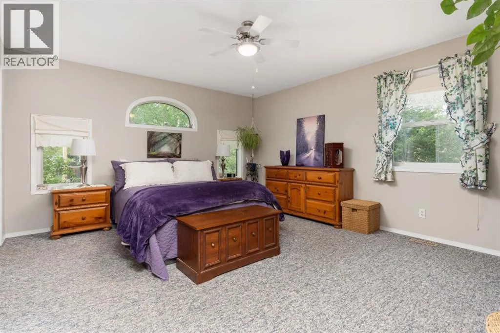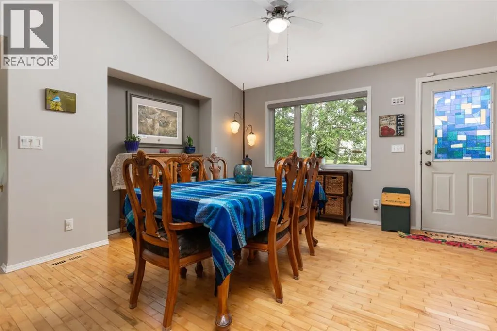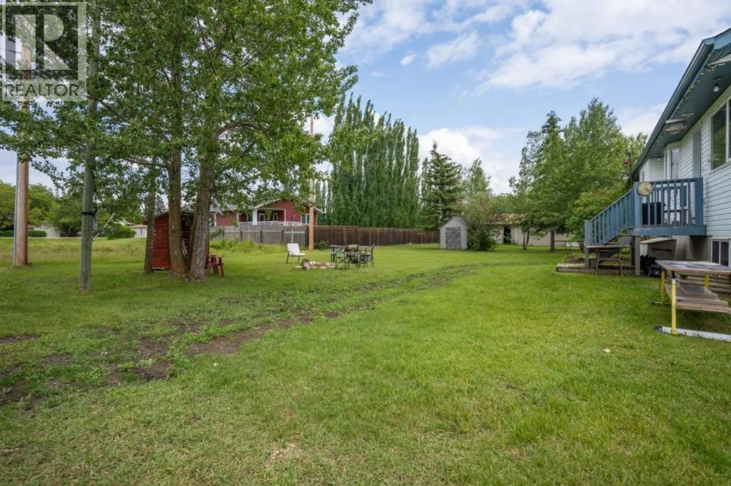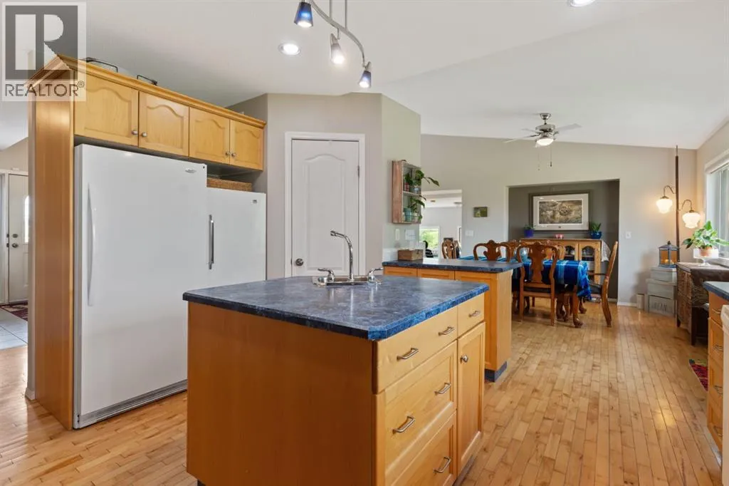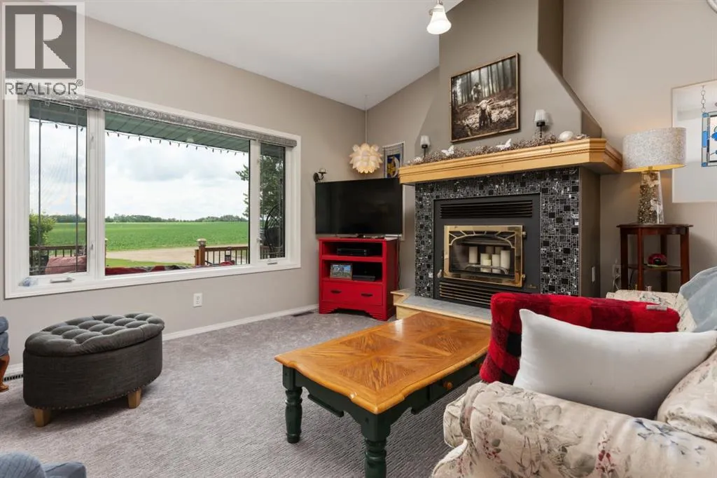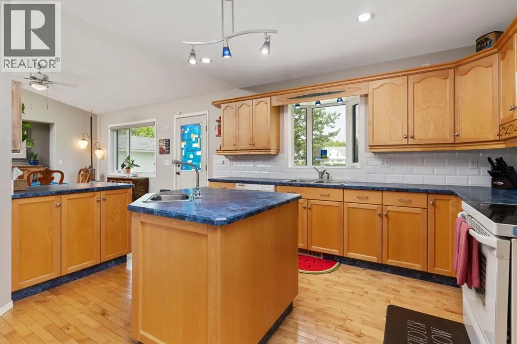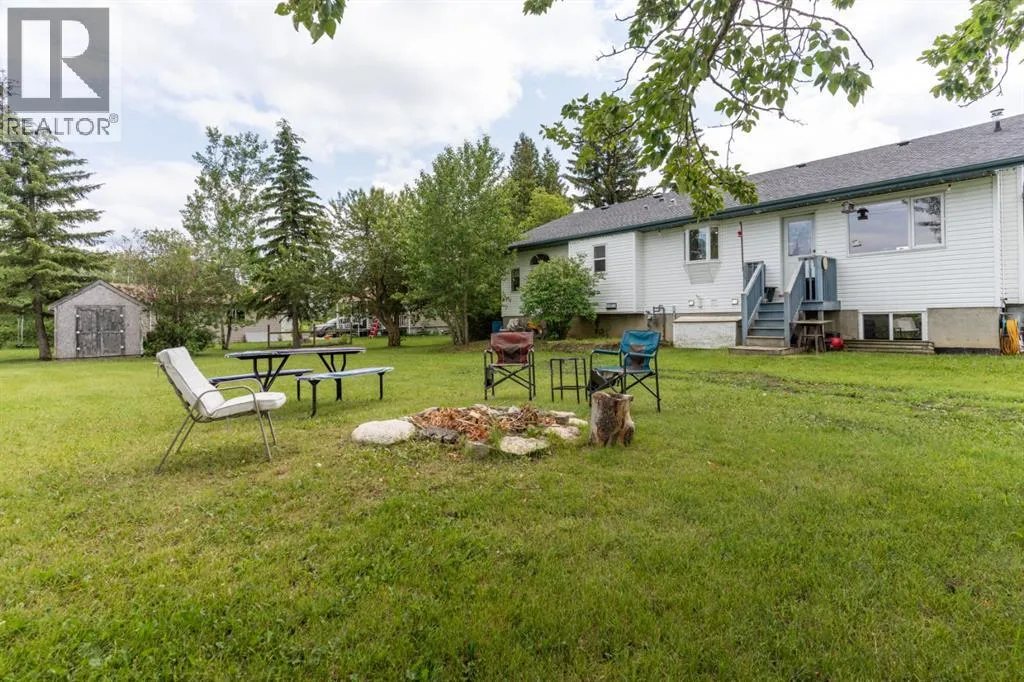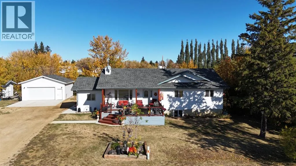 If you're dreaming of peaceful country living with all the comforts of town, this is the home for you. This spacious 6-bedroom, 4-bathroom bungalow offers 1,855 sq ft of living space on a rare triple lot in the welcoming community of Kingman.From the moment you step onto the charming front deck, youâll be captivated by the uninterrupted views of rolling farmers' fields, a picture-perfect scene you'll enjoy year-round from the deck, living room, dining room, and kitchen. Itâs a view that truly makes you forget you're in town.The home sits on a beautifully landscaped lot that feels like a little acreage, complete with a spacious front and back yard, a cozy fire pit area with wood shelter, and no backyard neighbors. Just privacy and serenity at its finest.Inside, you'll find room for the whole family with generous entryways at both the front and sideâideal for managing boots, coats, and busy mornings.The main living space is warm and inviting, featuring a large picture window, a cozy fireplace, and a dining area perfect for large family gatherings. The kitchen boasts ample cabinetry, counter space, a full-size fridge and freezer, and a brand-new backsplash. The kitchen window overlooks the backyard, perfect for keeping an eye on the kids or enjoying the view with your morning coffee.Down the hall, youâll find 3 main-floor bedrooms, including a primary suite with a beautifully renovated 3-piece ensuite featuring a luxurious walk-in shower & walk-in closet. An updated 4-piece bathroom completes the main level.The basement offers even more space to grow, with 3 additional bedrooms, a stunning bathroom with walk-in shower, a large rec room, laundry area, and abundant storage. The 24x24 detached garage is perfect for a workshop or secure vehicle storage. Move-in ready with room to grow, this home is a true gem in Kingman, home to the famous outdoor hockey rink and a close-knit community feel youâll love.This is a one-of-a-kind property with million-dollar views and small-town charm. Welcome home! (id:27476)