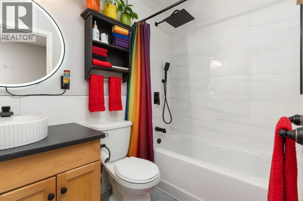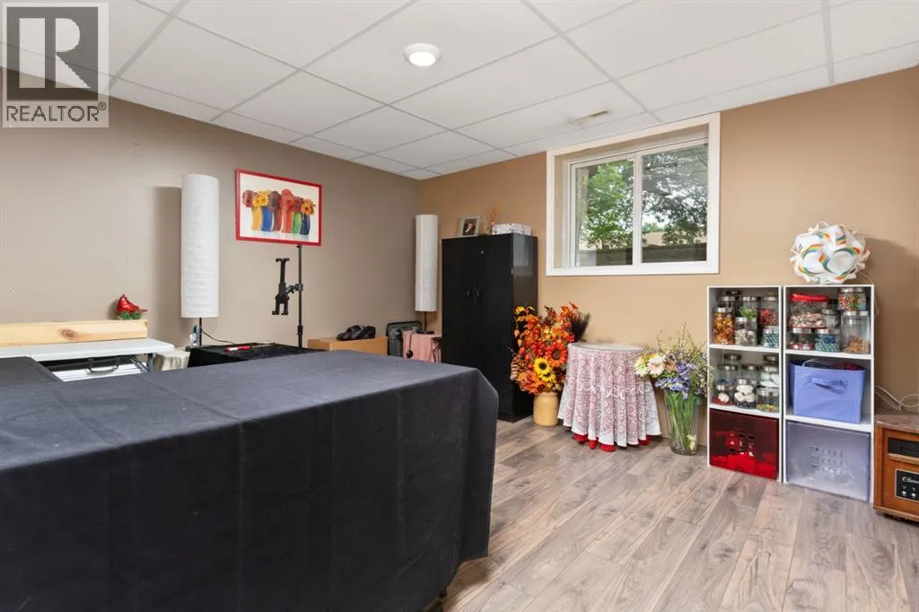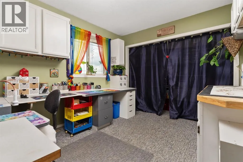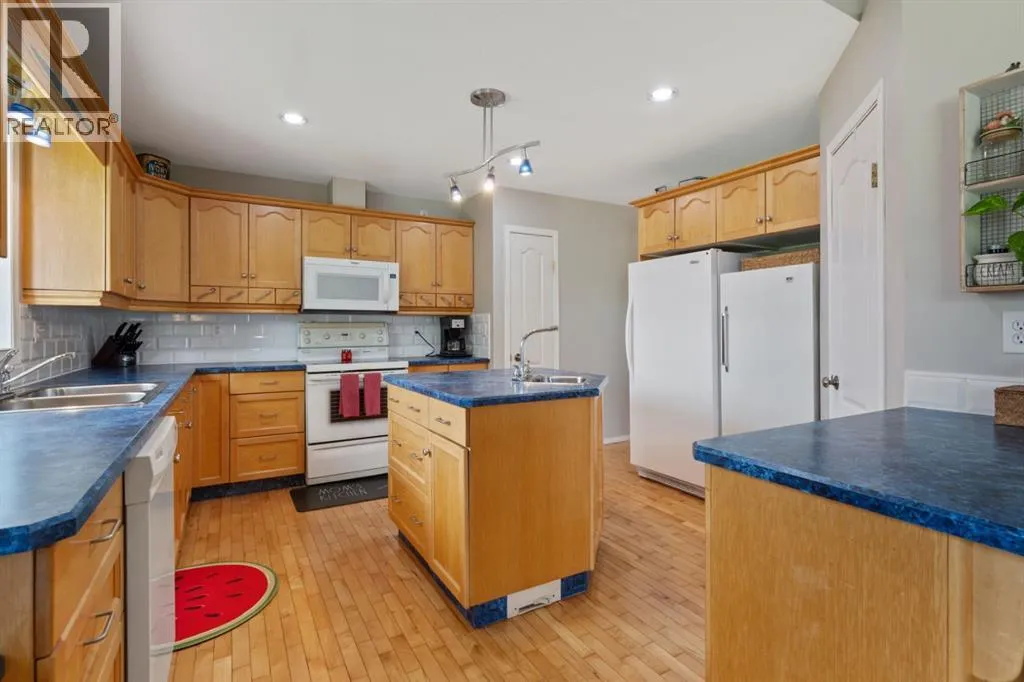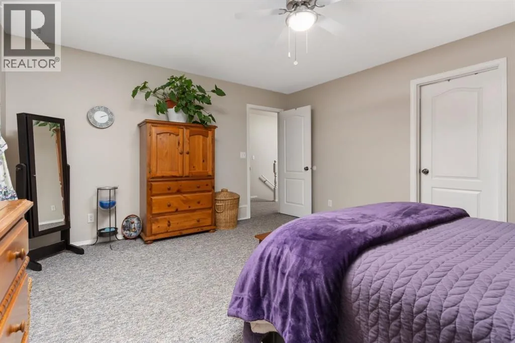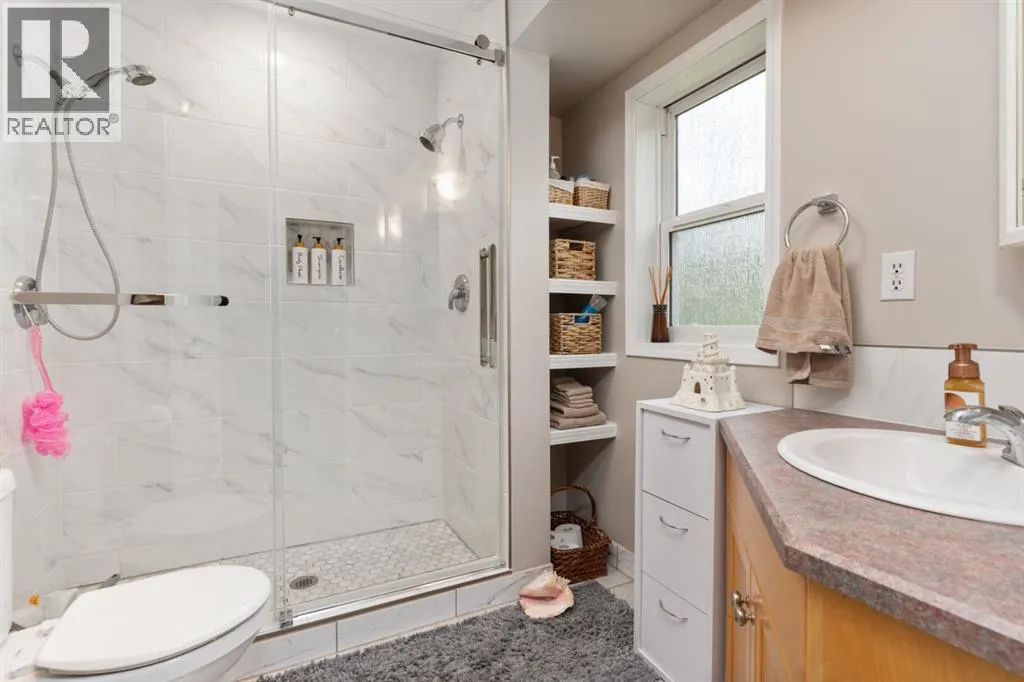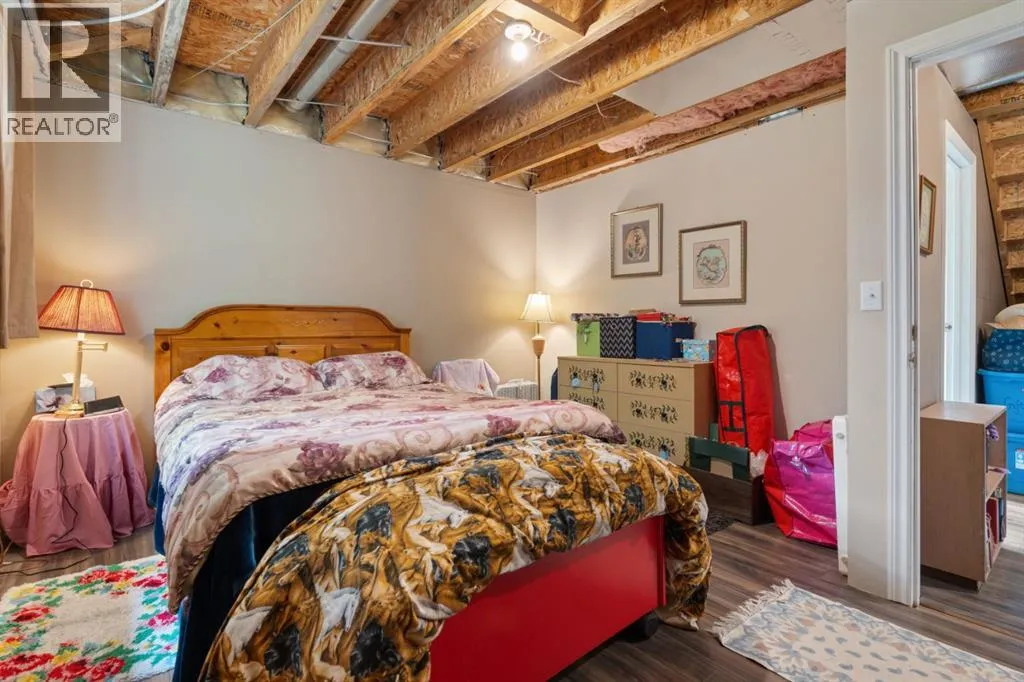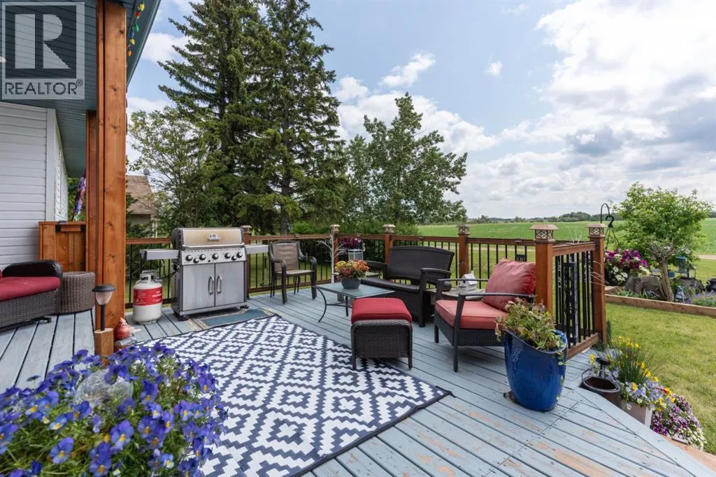 If you're dreaming of peaceful country living with all the comforts of town, this is the home for you. This spacious 6-bedroom, 4-bathroom bungalow offers 1,855 sq ft of living space on a rare triple lot in the welcoming community of Kingman.From the moment you step onto the charming front deck, youâll be captivated by the uninterrupted views of rolling farmers' fields, a picture-perfect scene you'll enjoy year-round from the deck, living room, dining room, and kitchen. Itâs a view that truly makes you forget you're in town.The home sits on a beautifully landscaped lot that feels like a little acreage, complete with a spacious front and back yard, a cozy fire pit area with wood shelter, and no backyard neighbors. Just privacy and serenity at its finest.Inside, you'll find room for the whole family with generous entryways at both the front and sideâideal for managing boots, coats, and busy mornings.The main living space is warm and inviting, featuring a large picture window, a cozy fireplace, and a dining area perfect for large family gatherings. The kitchen boasts ample cabinetry, counter space, a full-size fridge and freezer, and a brand-new backsplash. The kitchen window overlooks the backyard, perfect for keeping an eye on the kids or enjoying the view with your morning coffee.Down the hall, youâll find 3 main-floor bedrooms, including a primary suite with a beautifully renovated 3-piece ensuite featuring a luxurious walk-in shower & walk-in closet. An updated 4-piece bathroom completes the main level.The basement offers even more space to grow, with 3 additional bedrooms, a stunning bathroom with walk-in shower, a large rec room, laundry area, and abundant storage. The 24x24 detached garage is perfect for a workshop or secure vehicle storage. Move-in ready with room to grow, this home is a true gem in Kingman, home to the famous outdoor hockey rink and a close-knit community feel youâll love.This is a one-of-a-kind property with million-dollar views and small-town charm. Welcome home! (id:27476)